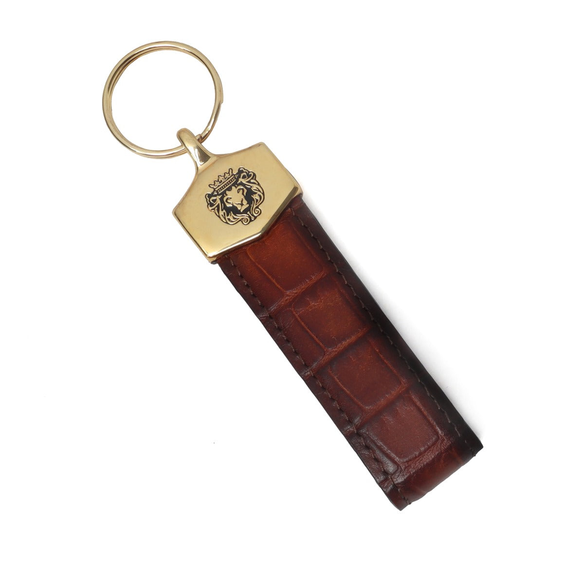 Brown Croco Textured Leather Elegant Brune & Bareskin Keychain