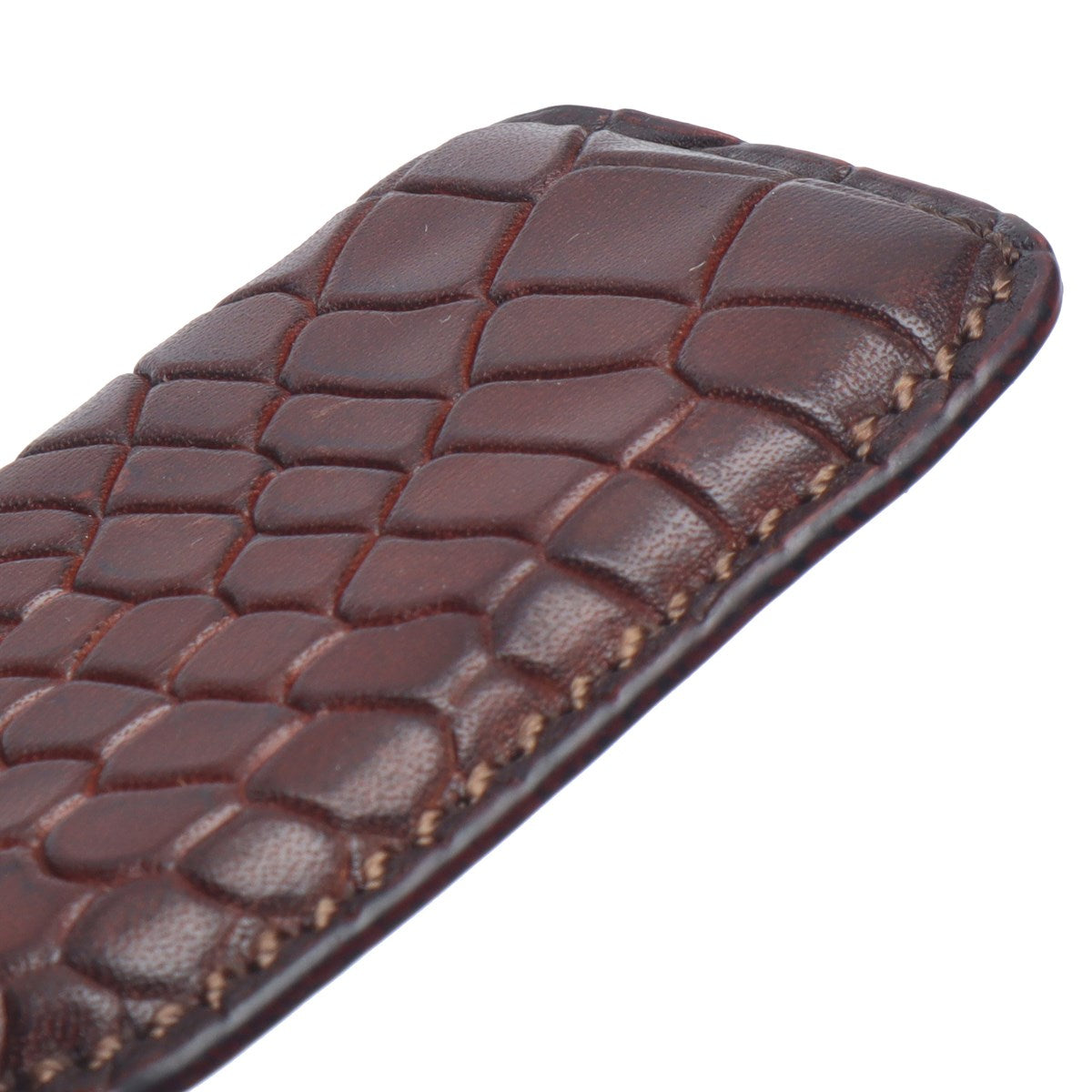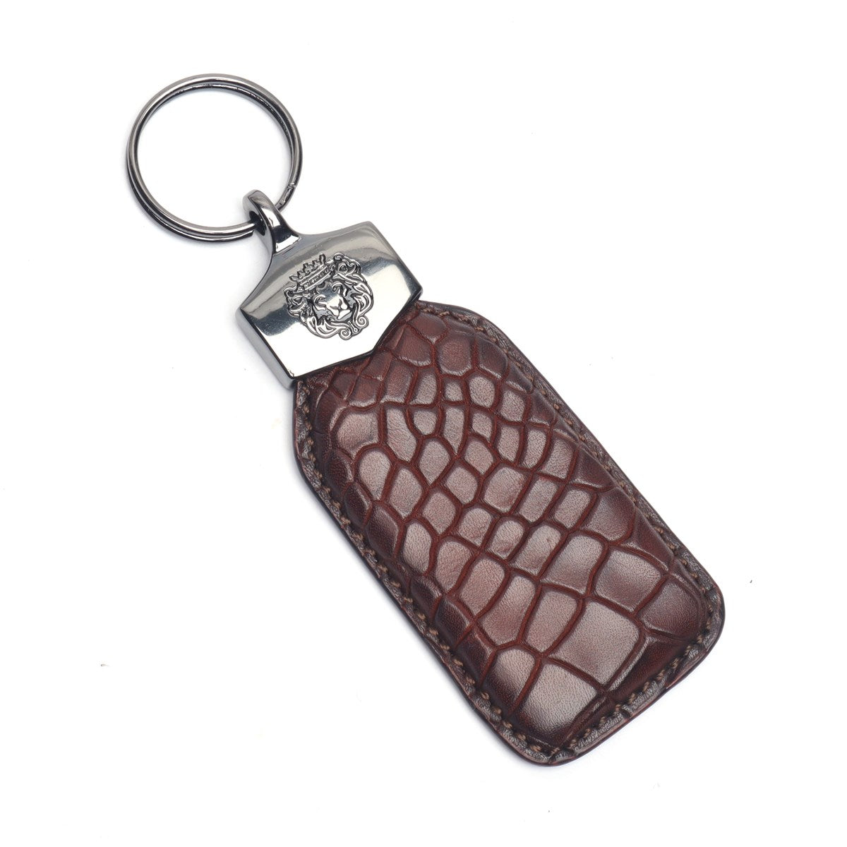 Dark Brown Keychain Deep Cut Scales Croco Textured Leather Brune & Bareskin