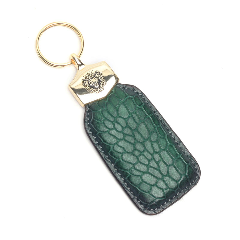 This deep cut smaller scales rectangular shape keychain is a must have travel accessory. The dark brown croco textured deep cut leather enhances its richness. The gunmetal finished fitting compliments its overall color. Brune & Bareskin signature lion logo on the center looks very chic. You can also get it customized especially for you with your name initials and favorite color.