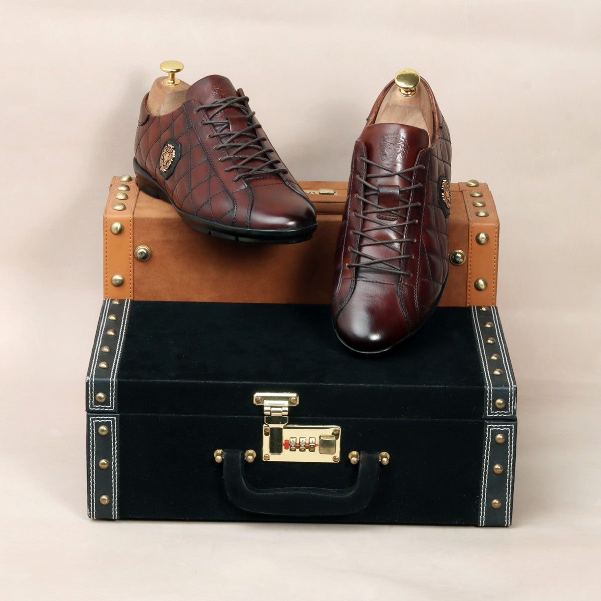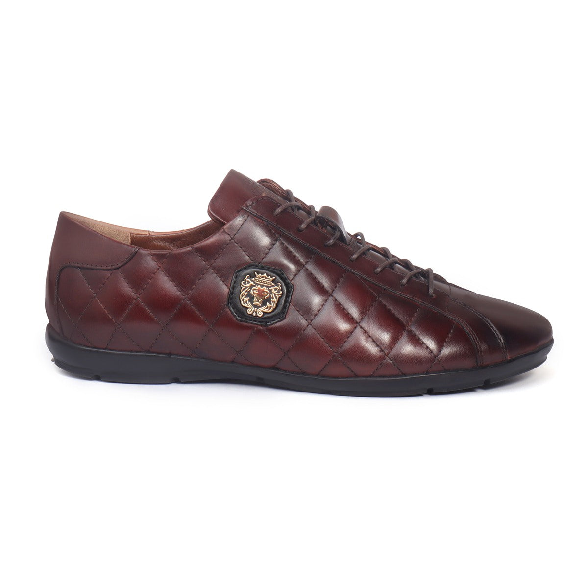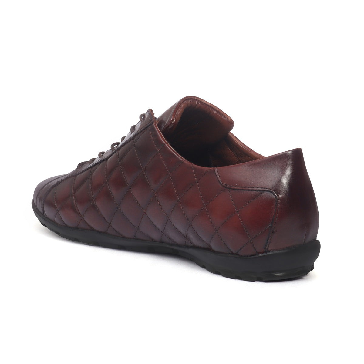 Dark Brown Leather Sneakers with Diamond Stitched Pattern