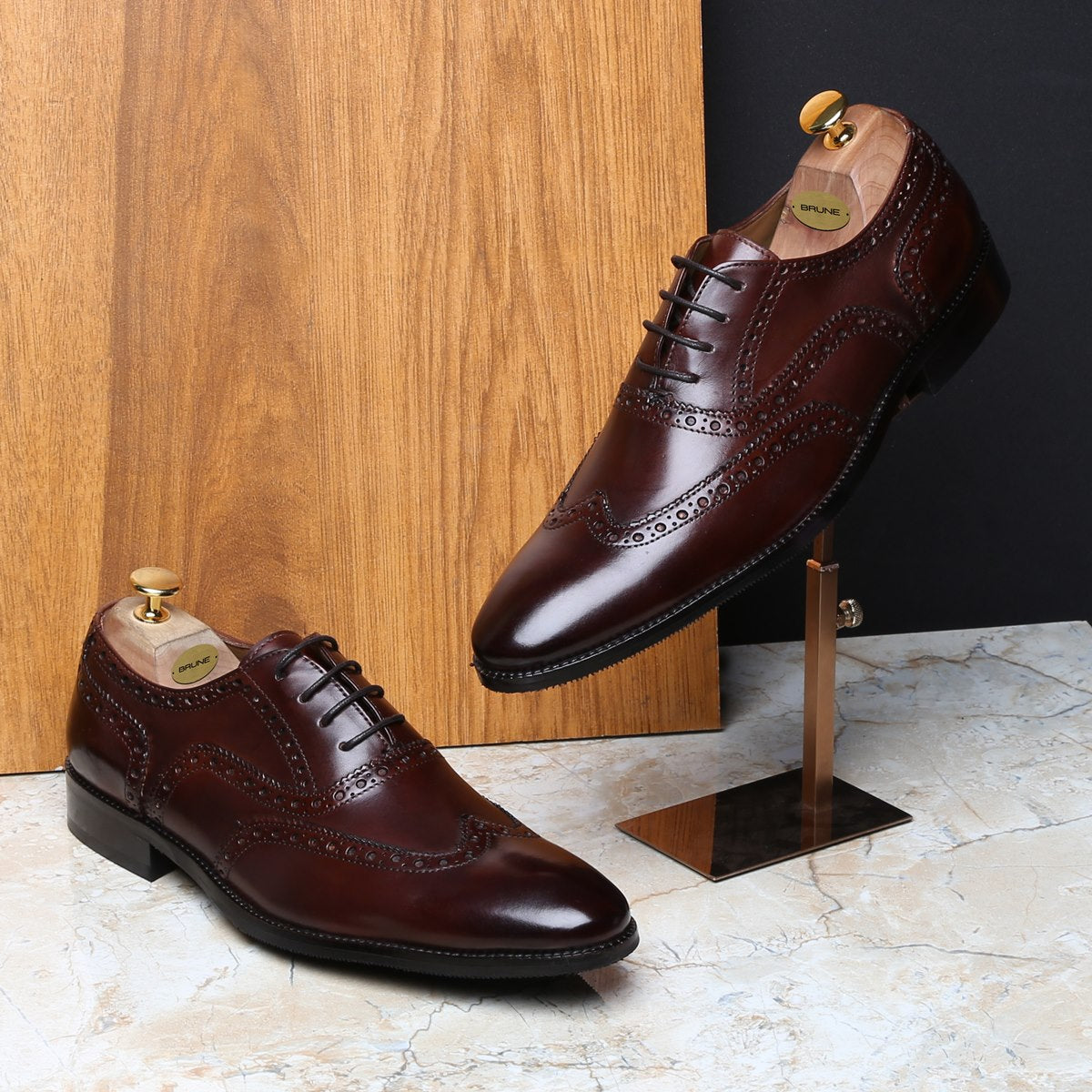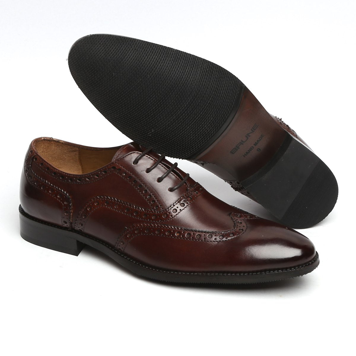 DARK BROWN FULL WINGTIP BROGUE LEATHER OXFORDS SHOE BY BRUNE & BARESKIN