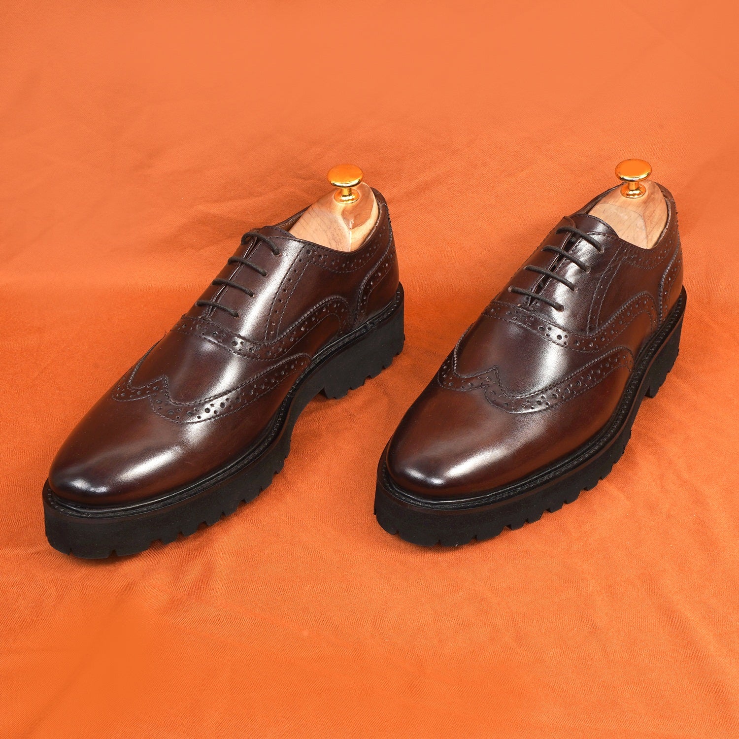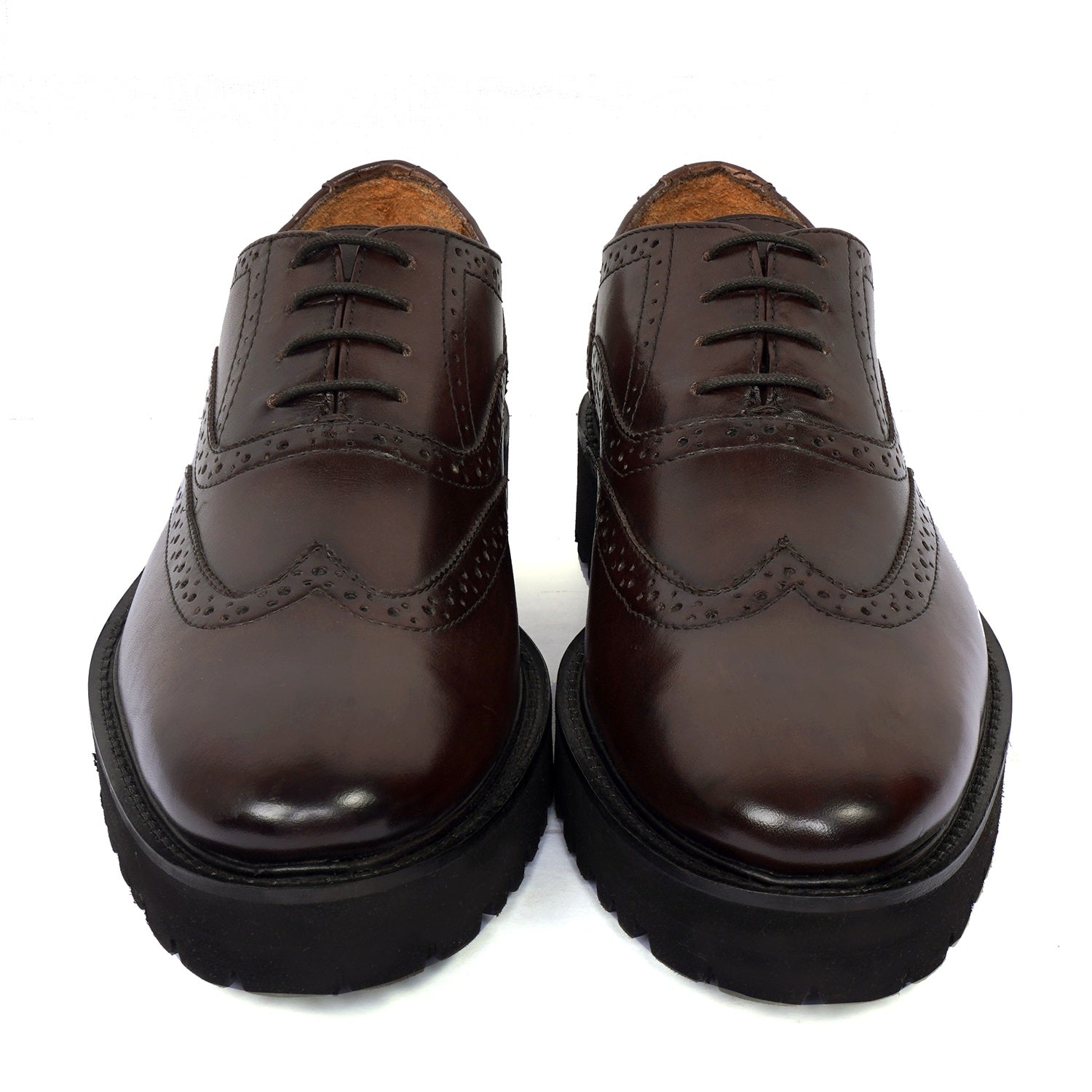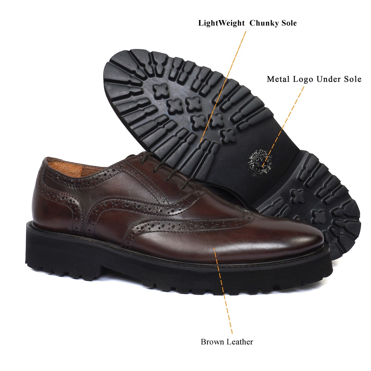 Brown Full Wingtip Brogue Oxfords Leather Lace-Up Chunky Sole Shoes