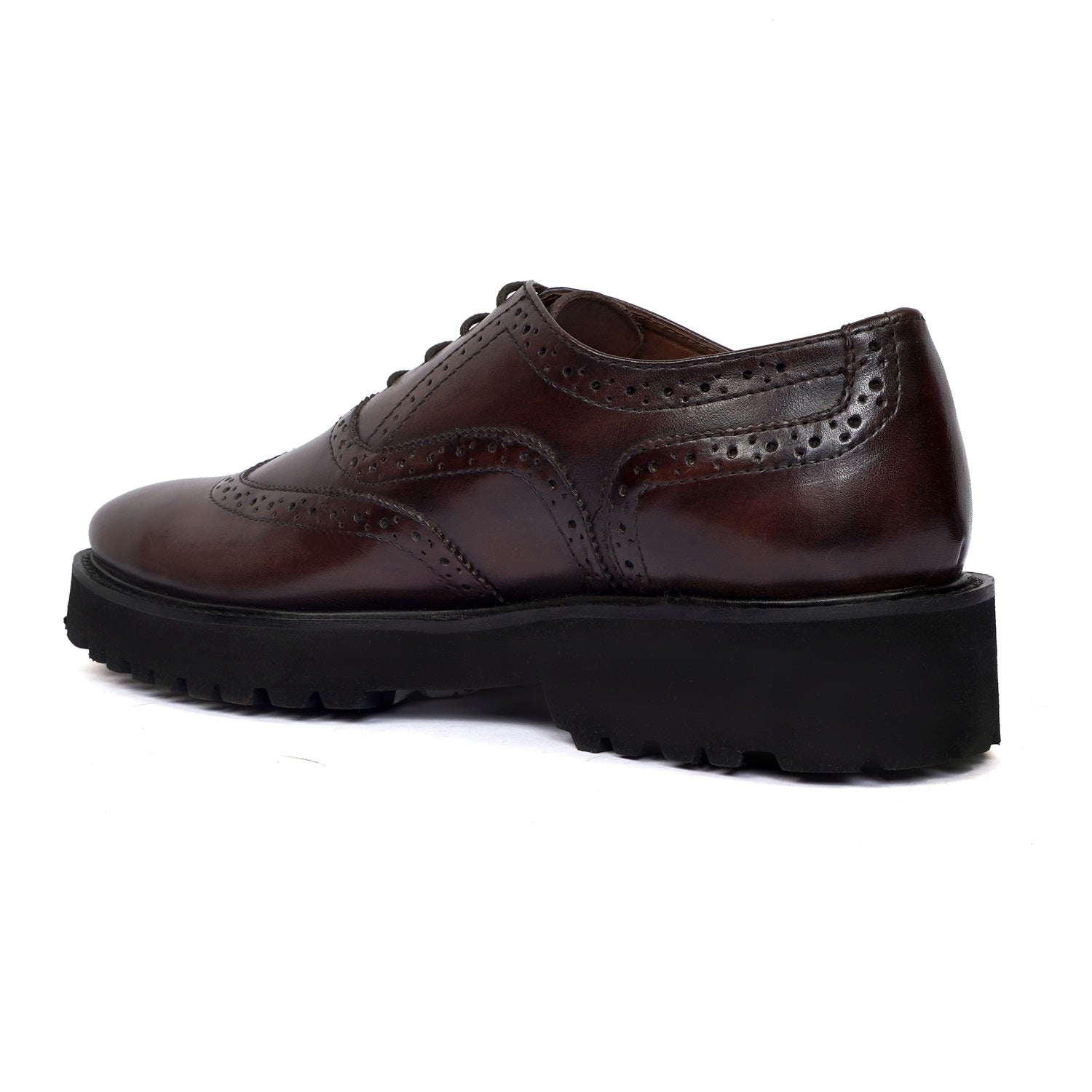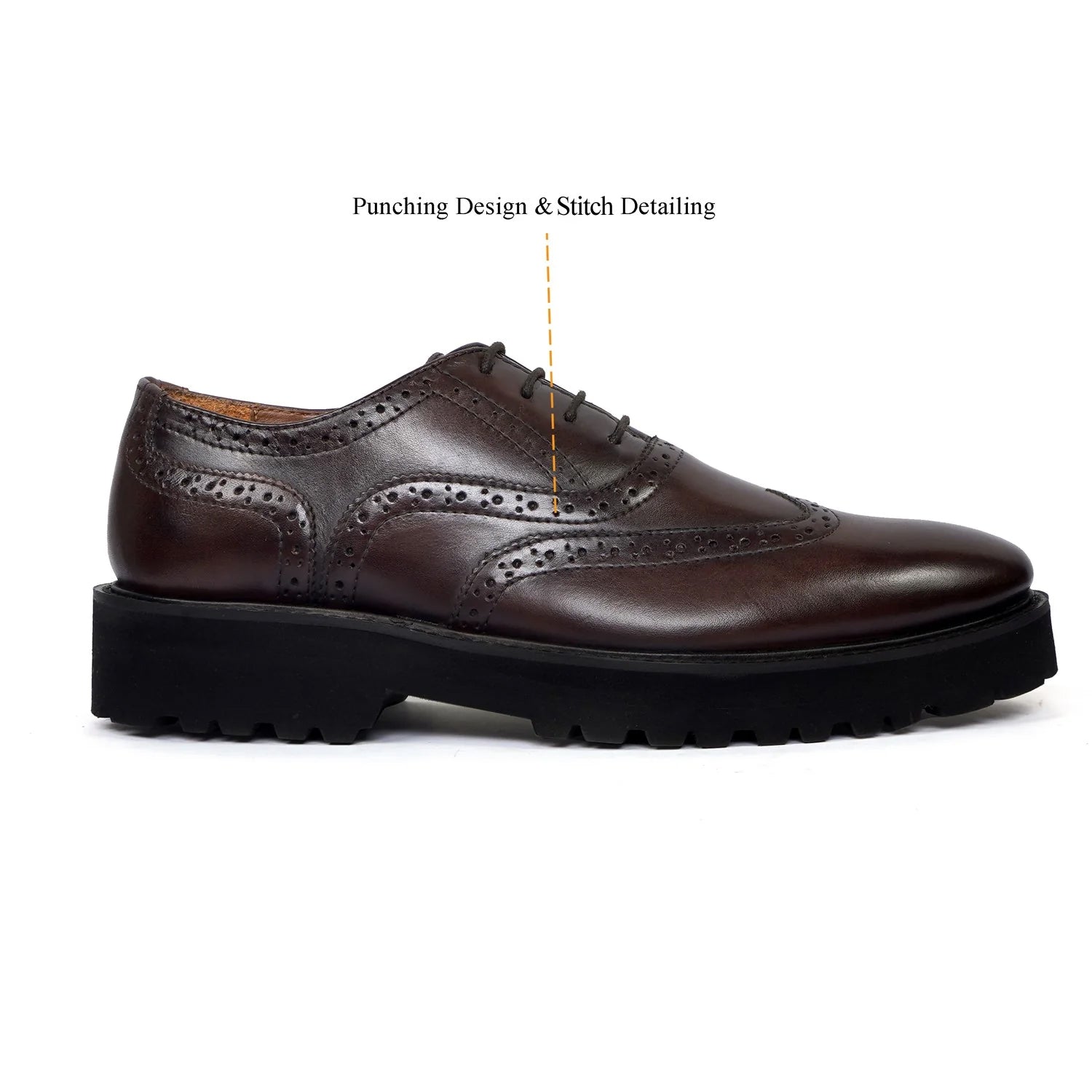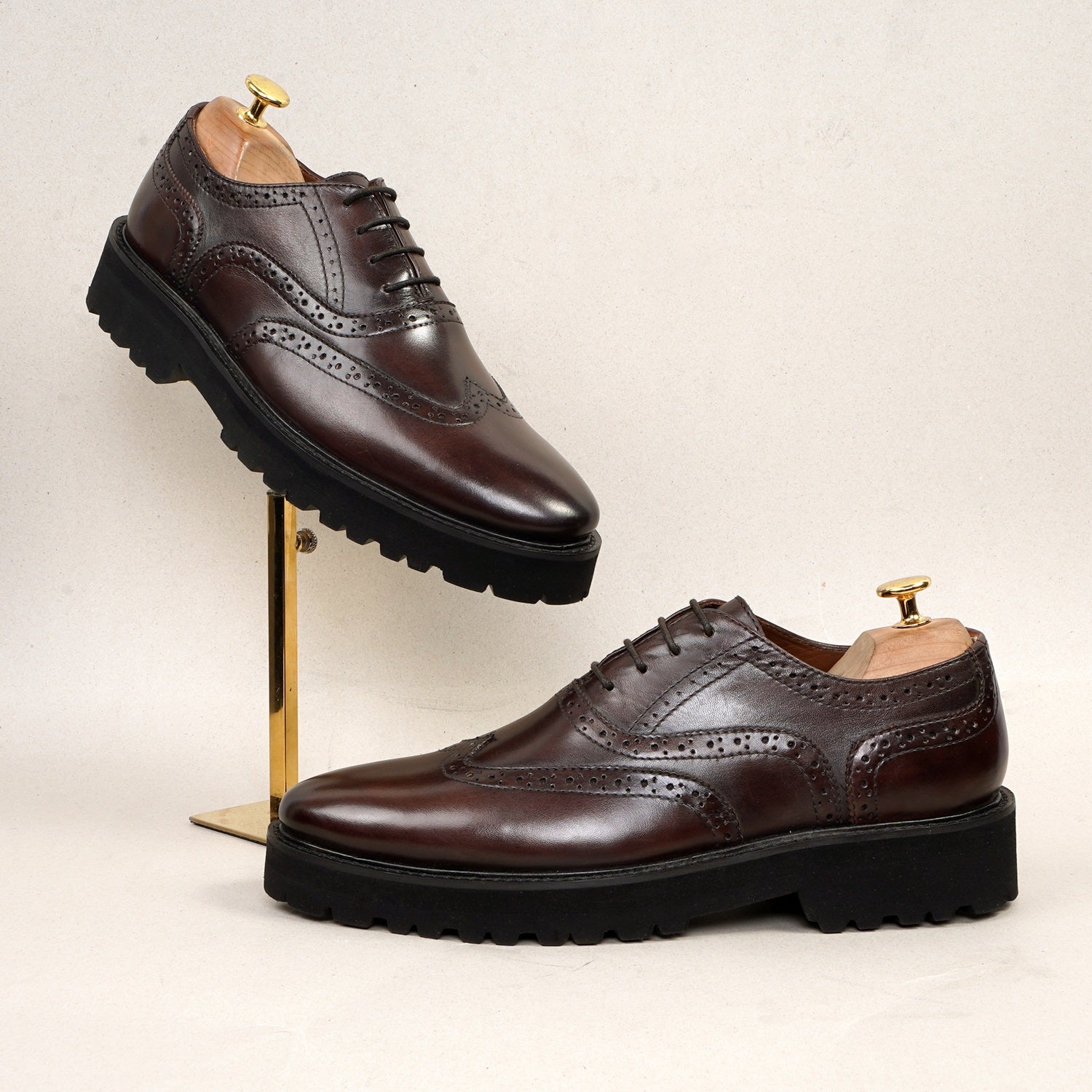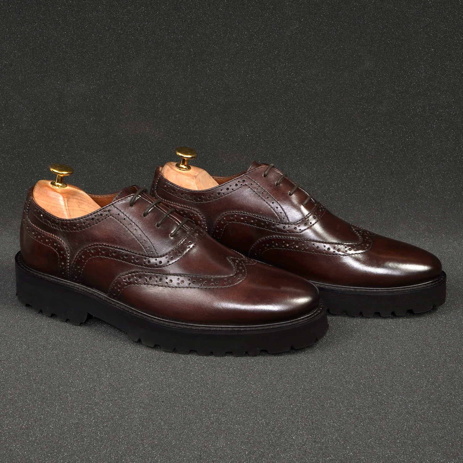 Brown Full Wingtip Brogue Oxfords Leather Lace-Up Chunky Sole Shoes
