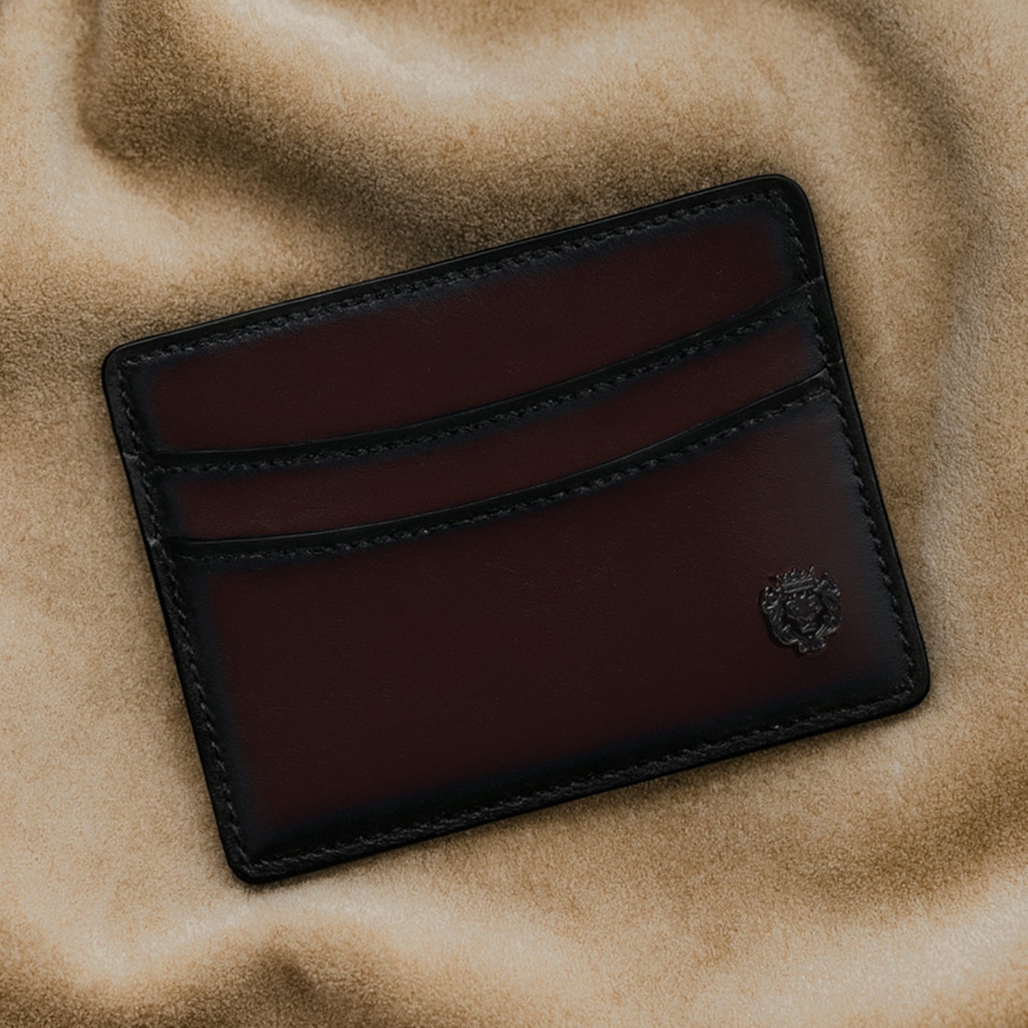 Dark Brown Hand Painted Leather with Gun Metal Lion Unisex Card Holder By Brune & Bareskin