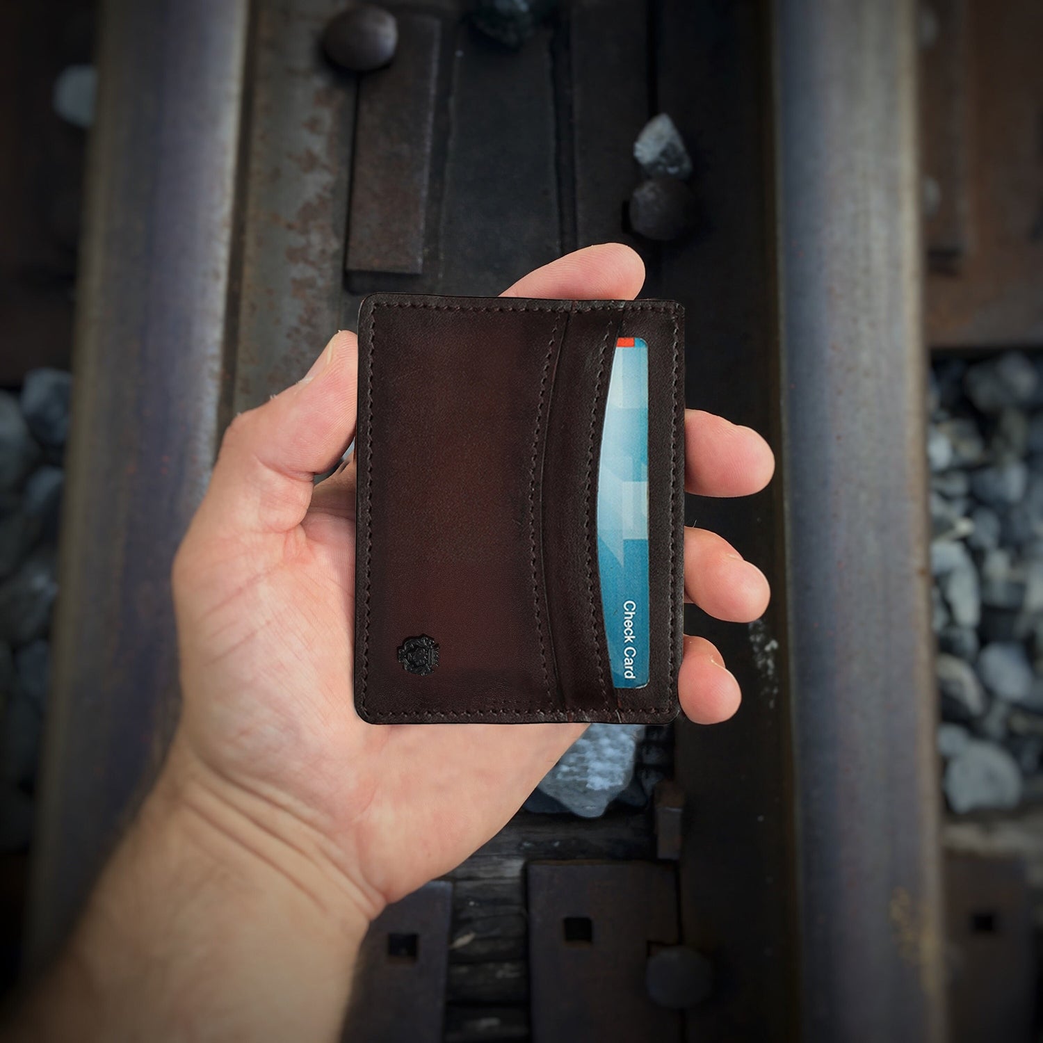 This Dark Brown Burnished Leather Card Holder by Brune & Bareskin has Genuine & Premium quality Leather, cards holder is designed to slip easily into any pocket, Perfectly handcrafted.