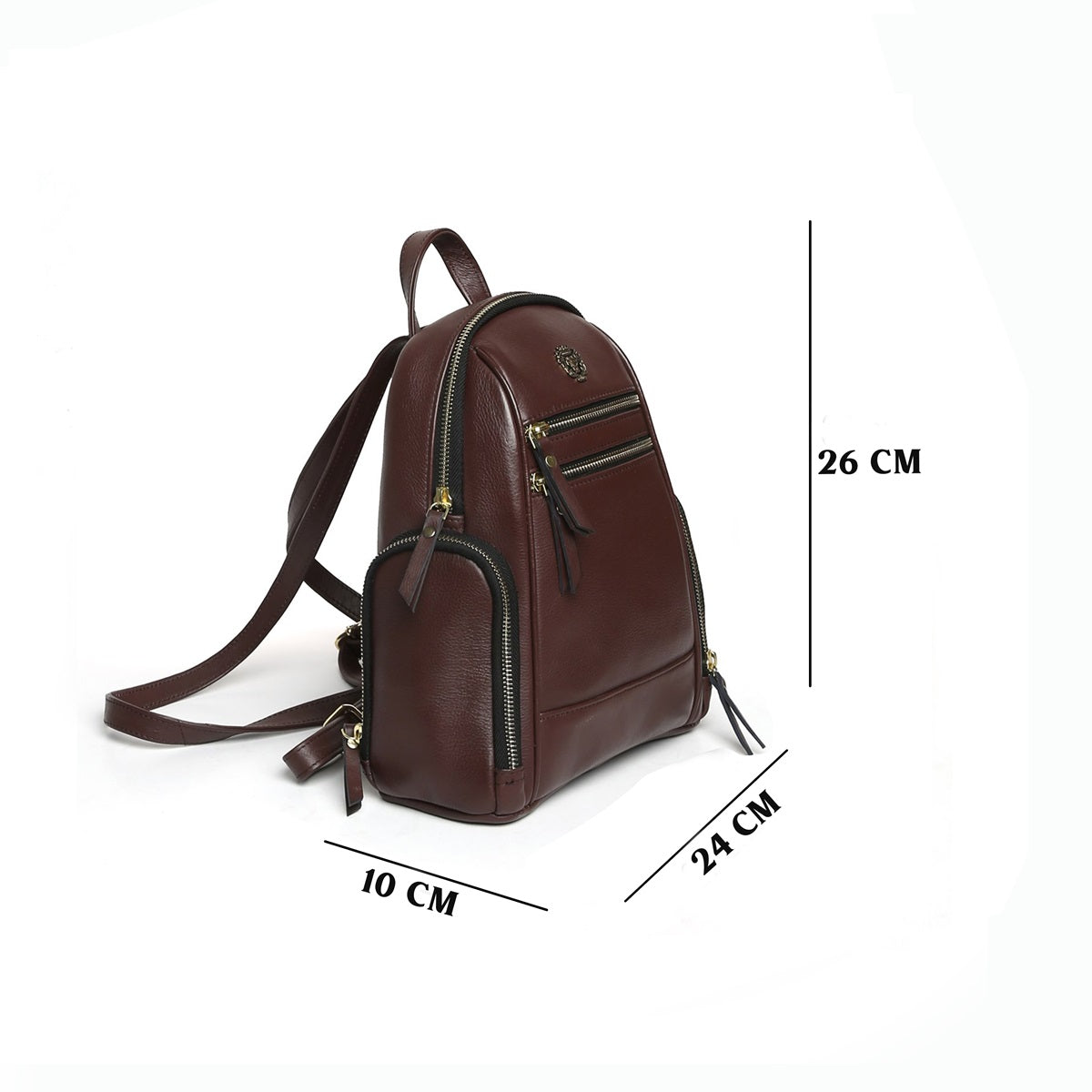 Dark Brown Leather Signature Metal Lion Women Backpack By Brune & Bareskin