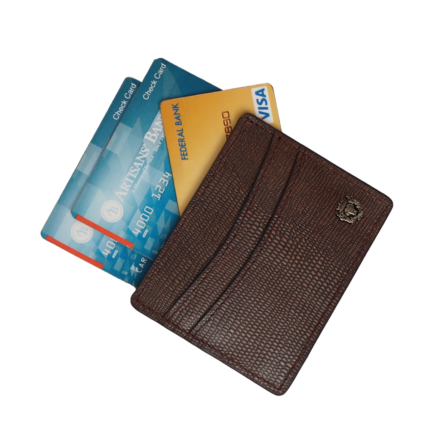 Buy simple & elegant Brown Pebbled Leather Card Holder by Brune & Bareskin. It has designed with Genuine & Premium quality Leather to slip easily into any pocket. Crafted with 3 pockets to carry cards safely & securely. Variety of colors are available in it. You can customise card holders in your choice of color & name Initials on it.