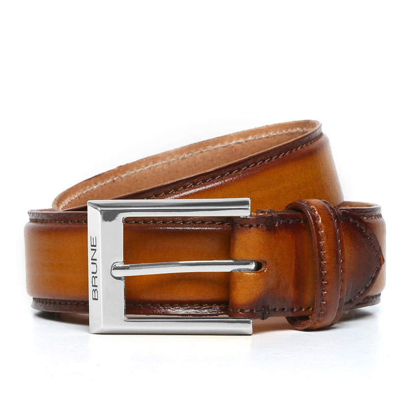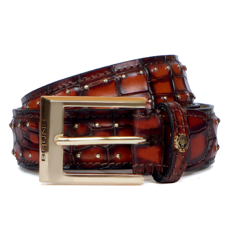 Be the fashion icon wherever you go. This brown patent leather formal belt for men ensures to keep your comfort and style high. Brune & Bareskin's introducing special Design the Micro Size Lion Logo to add an extra elegance For different products. The Stylish Mini lion logo and Golden finished buckle enhances its appearance further.
