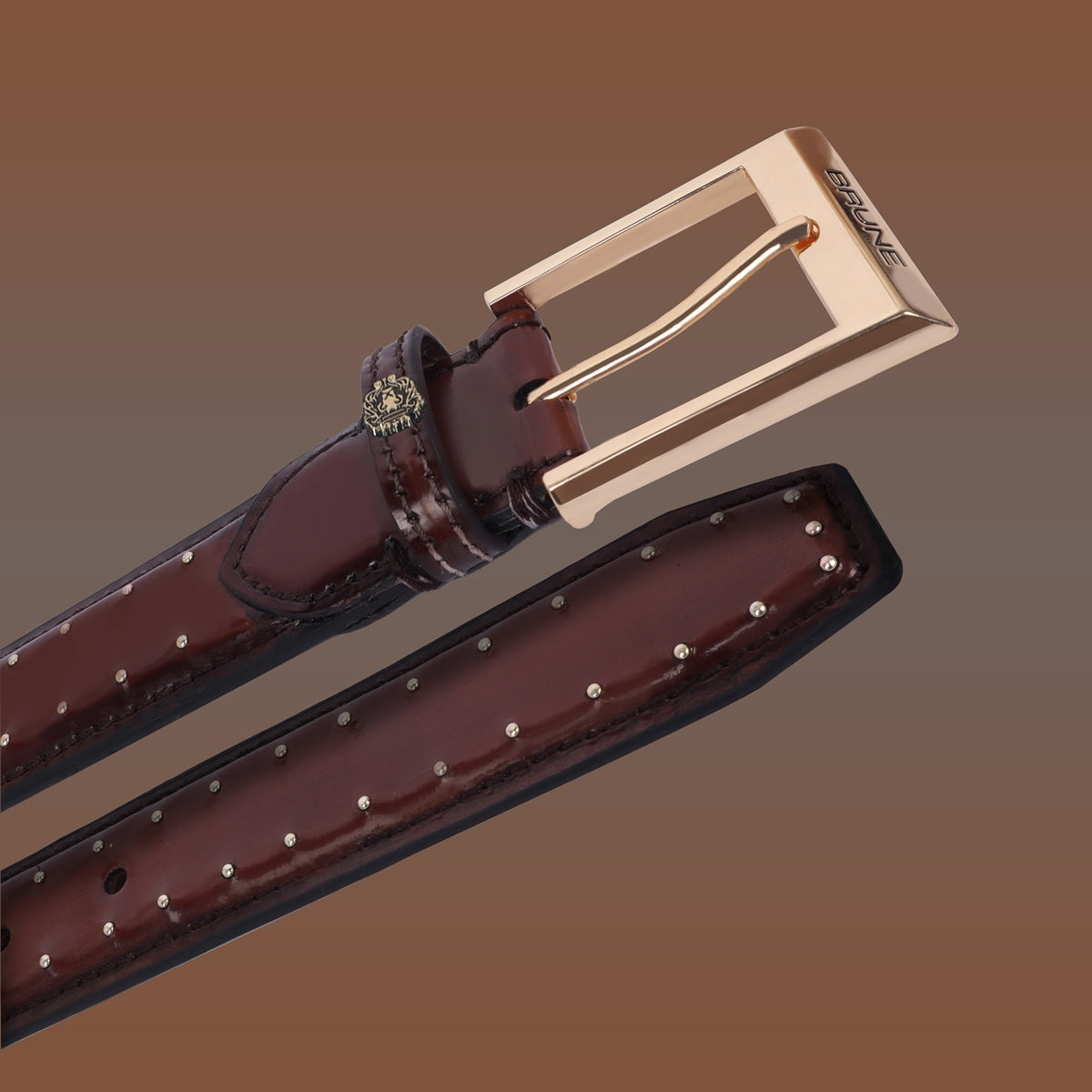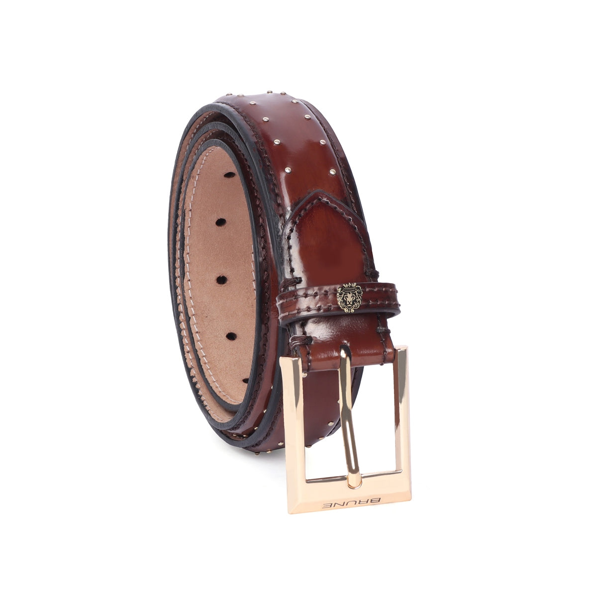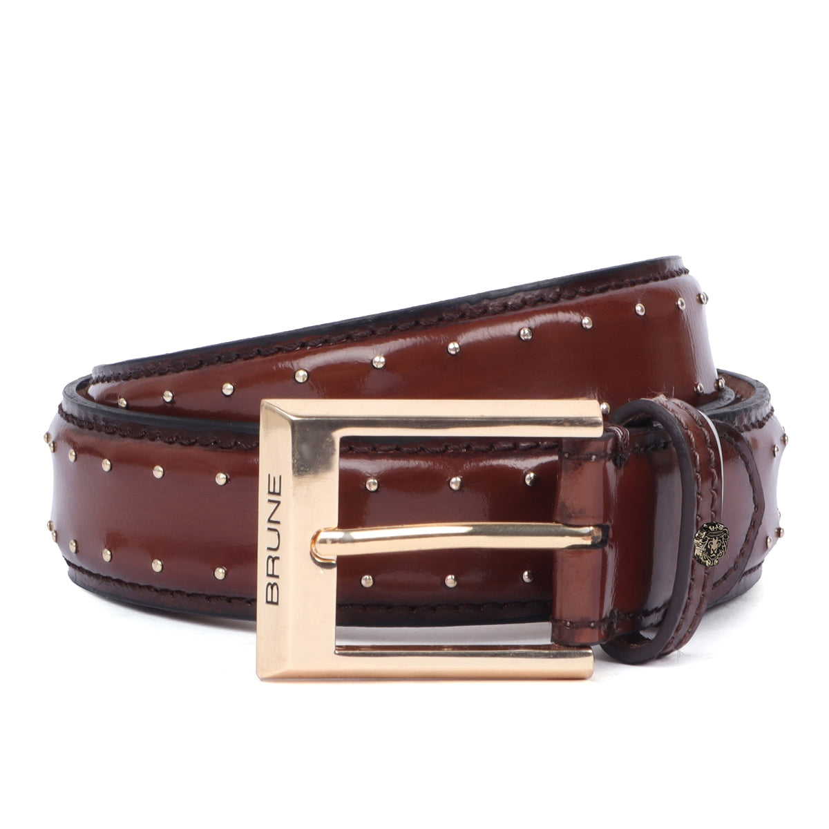 Brown Pint-Sized Stud Detailing Patent Leather Gold Finish Buckle Belts By Brune & Bareskin