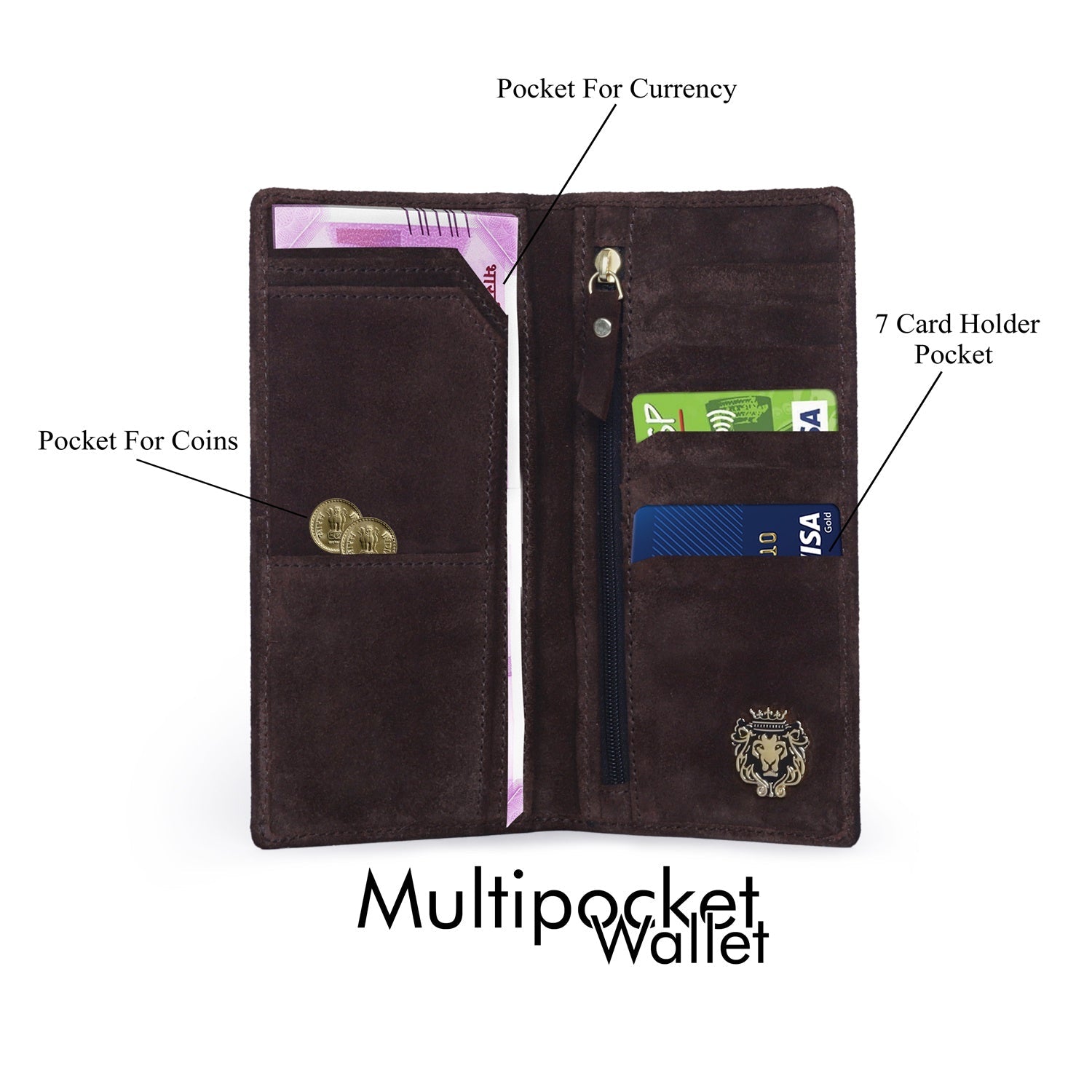 This bi-fold brown suede leather long wallet with concealed zip pocket looks very elegant. The BRUNE & BARESKIN signature metal Lion brand logo on the front enhances the style quotient. Bi-fold opening wallet features two main pockets along with small secure pocket on both sides. It has the total of 7 Card, 2 Long, 3 id card pockets, which makes it a perfect buy for today's generation. It has the smooth magnetic strap to keep it close and secure enough. It provides the style and storage with Patina regime leather shades. You can get it made in your favorite color shade with the name initials embossed.