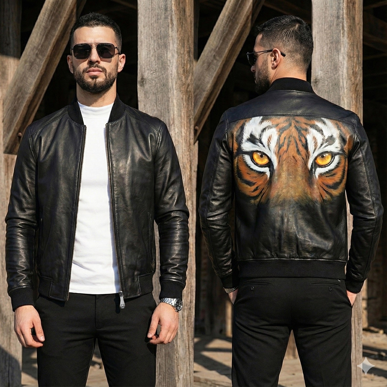 This biker jacket is a must-have for the persons who love to ride. It provides a very bold feel to the wearer. It has woolen ribs on the sleeves end and the waist end of the jacket. It also has a ribbed collar to enhance the comfiness. Finished with black knitted ribs at the waist, cuff and on Collar, this jacket makes a style statement wherever you go. We are introducing a great opportunity for our customers to write their names, initials & embroidery on the products. The Initials can be done with the coloring technique. This Jacket is specially customized with the Handmade Painted Lion logo on the backside of the jacket with high-quality leather paint that will not peel off. There is a large range of colors to choose from but black is the most popular one. Brune & Bareskin represent our core commitment to creating handsome style in fashion, besides ensuring premium quality & standard.
