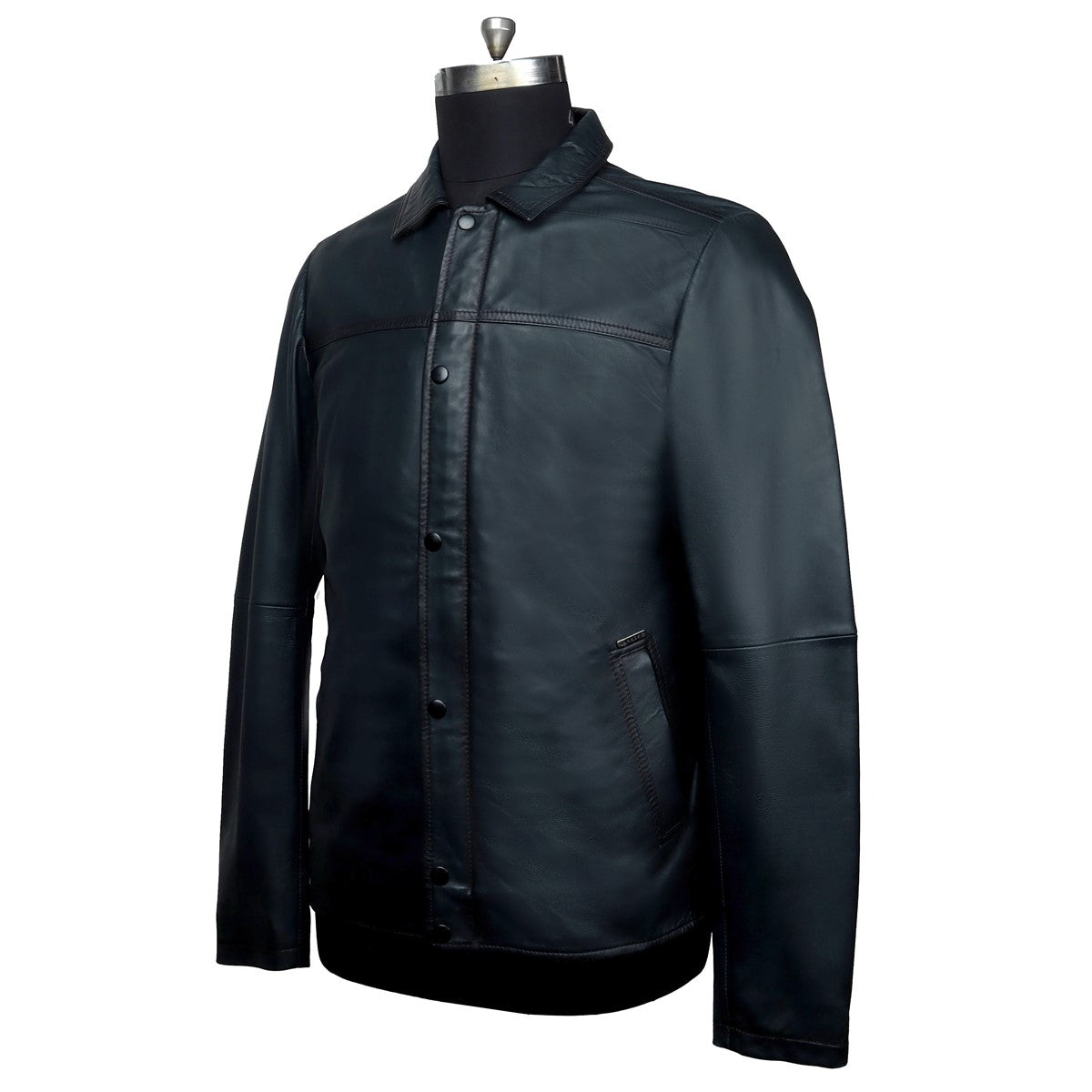 Men'S Shirt Style Collar Smoky Blue Leather Jacket