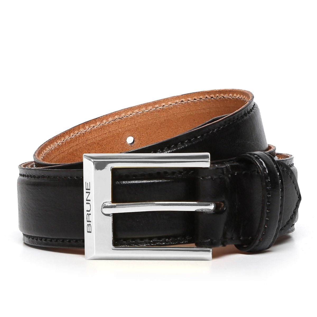 Black With Silver Square Buckle Hand Painted Leather Formal Belt For Men
