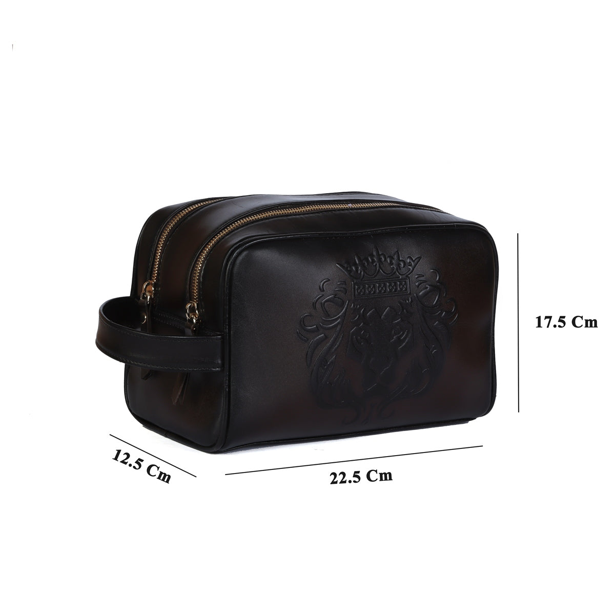 Dark Brown Leather Shaving Kit / Bathroom Kit