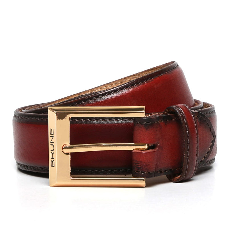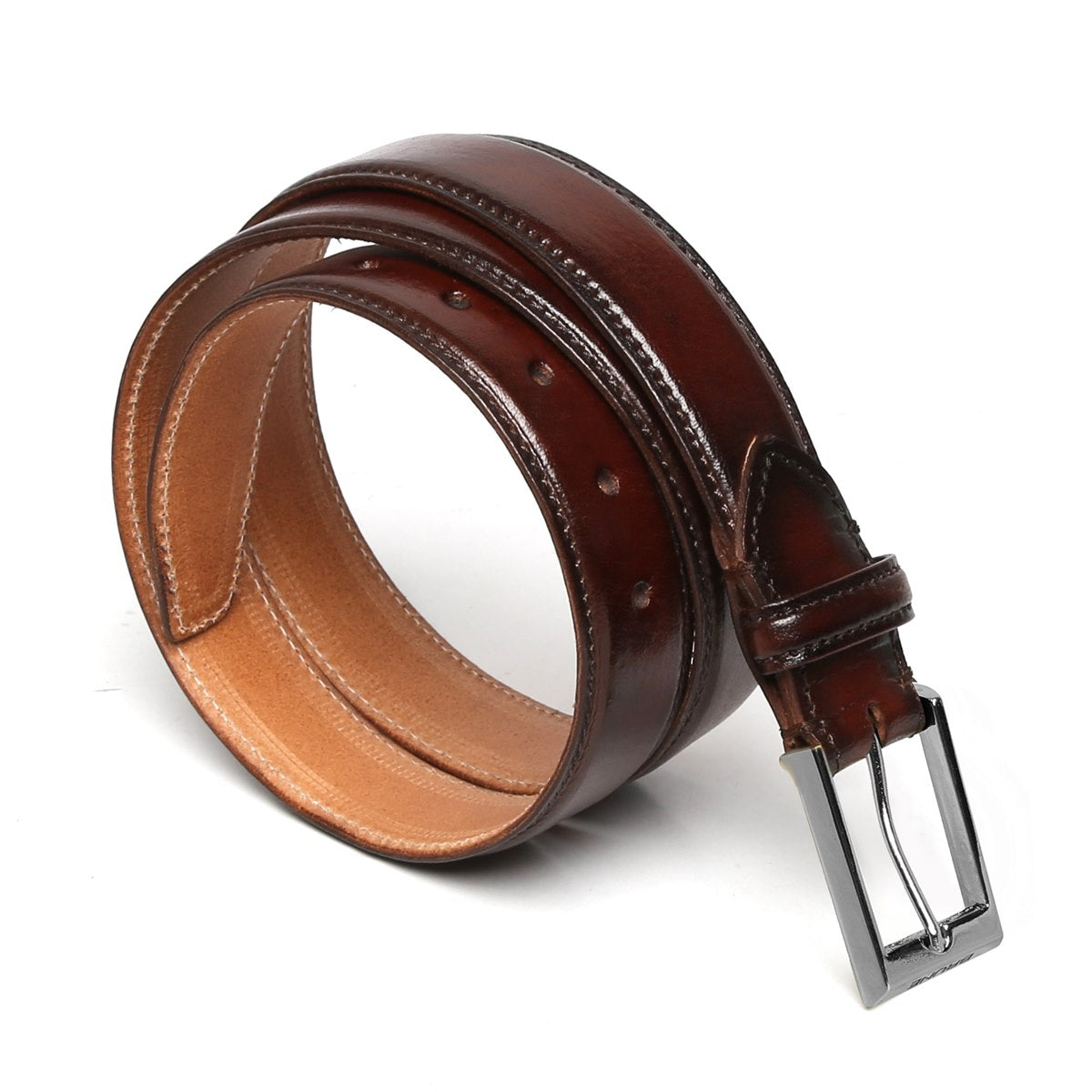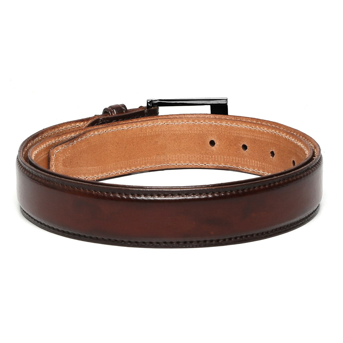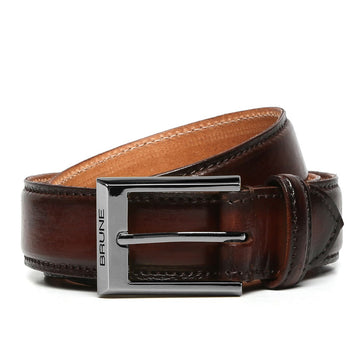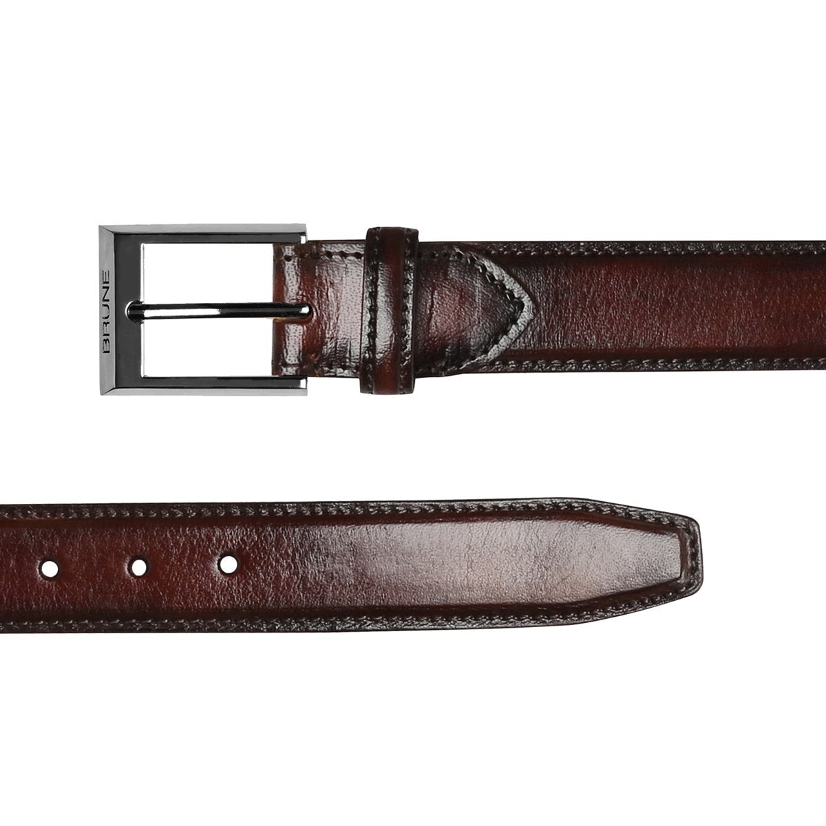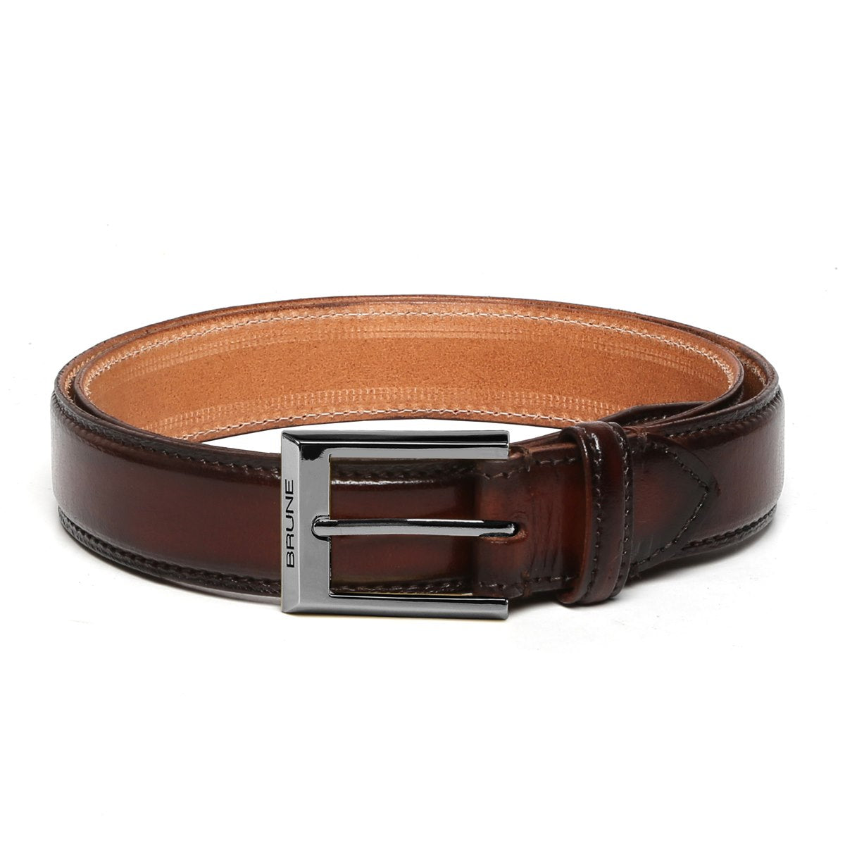 Brune & Bareskin Dark Brown With Gun Metal Buckle Hand Painted Leather Formal Belt For Men