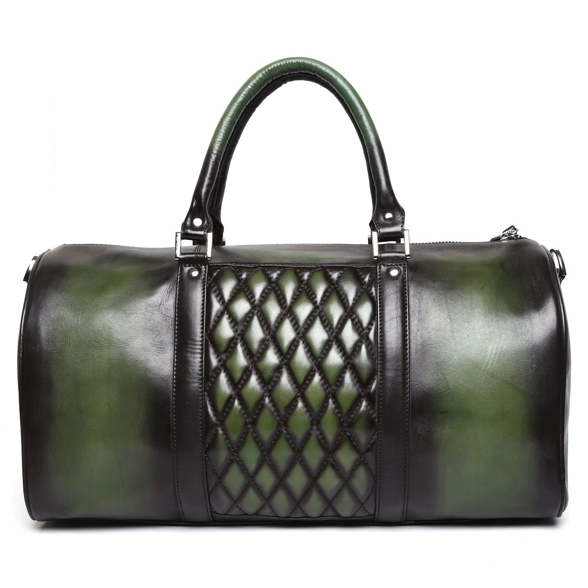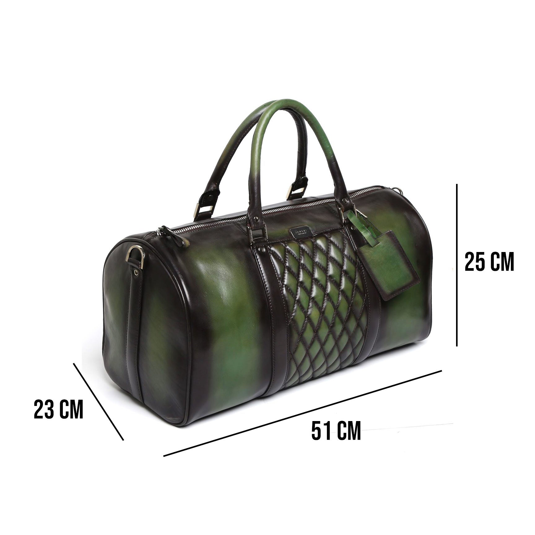 Green color by Patina technique is something different and looks more classy. Diamond Stitched Collection is our Premium Range of Bags which are made using full grain Leather. This is one of the most vogue styling, which was majorly accepted in English Times by the Queens and Kings for there Trunk Travelling! Green color looks fab on leather products, this duffle bag is an amazing buy for the folks who like to travel in luxury and style.