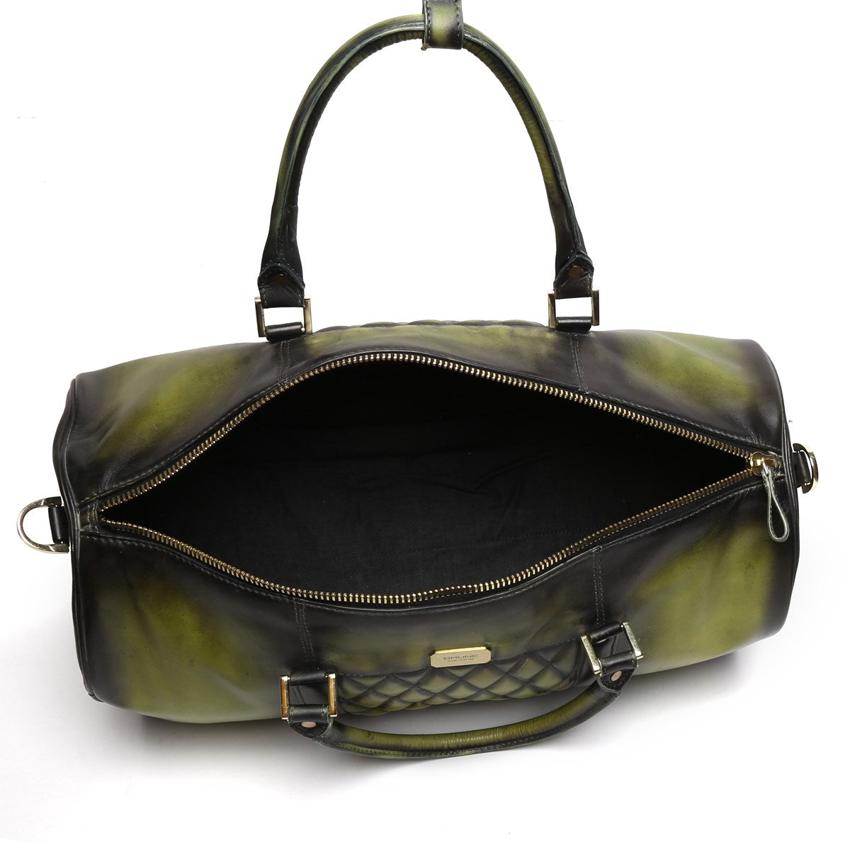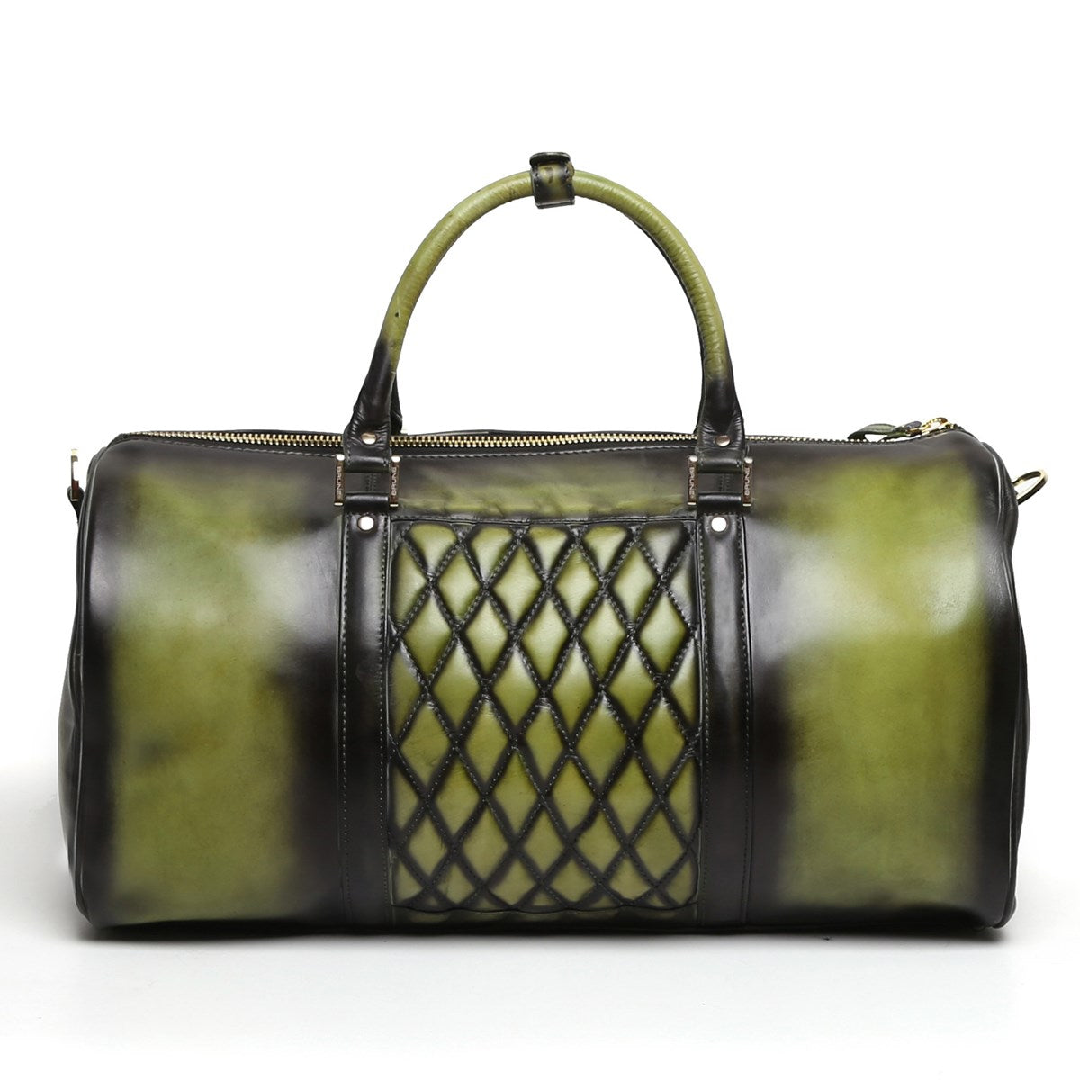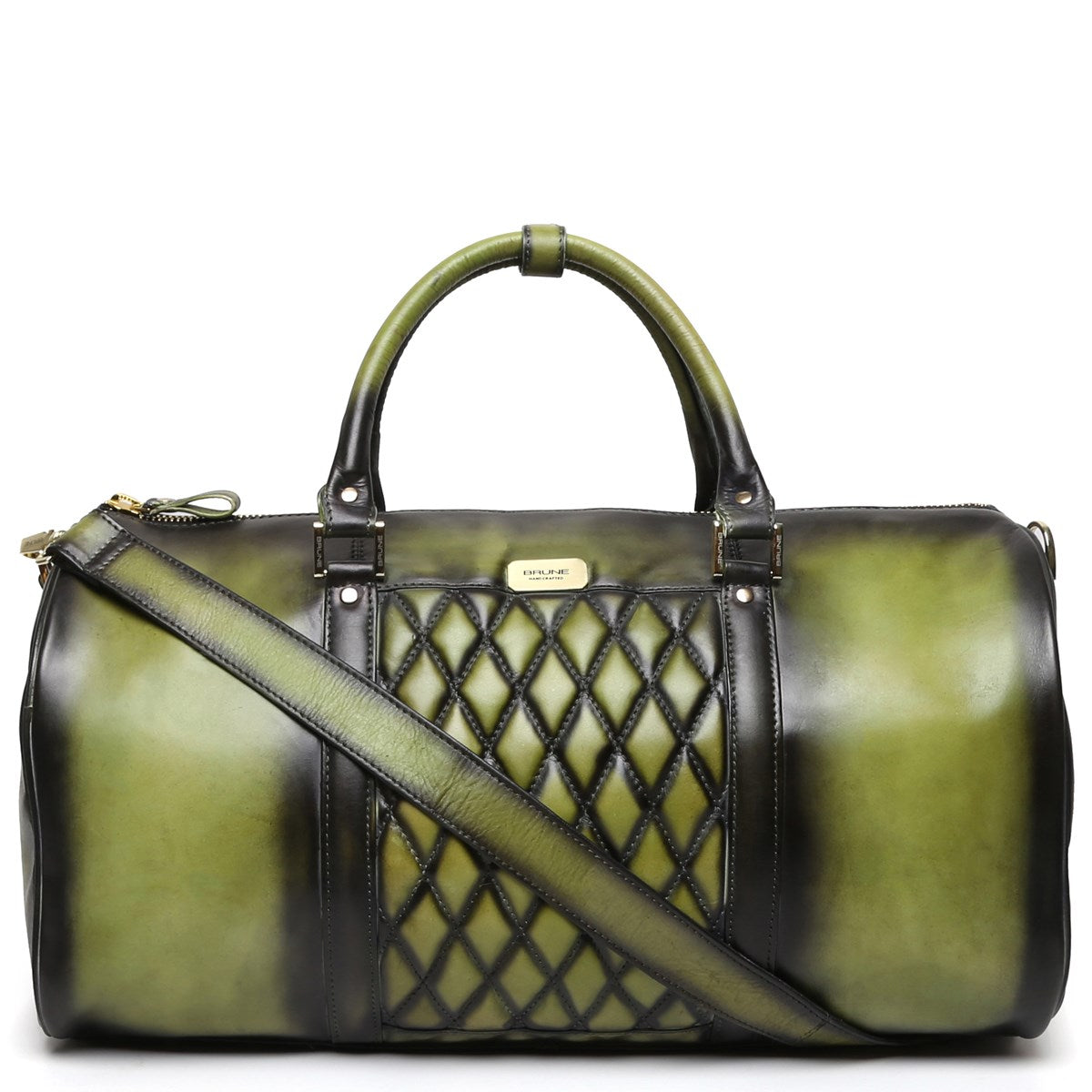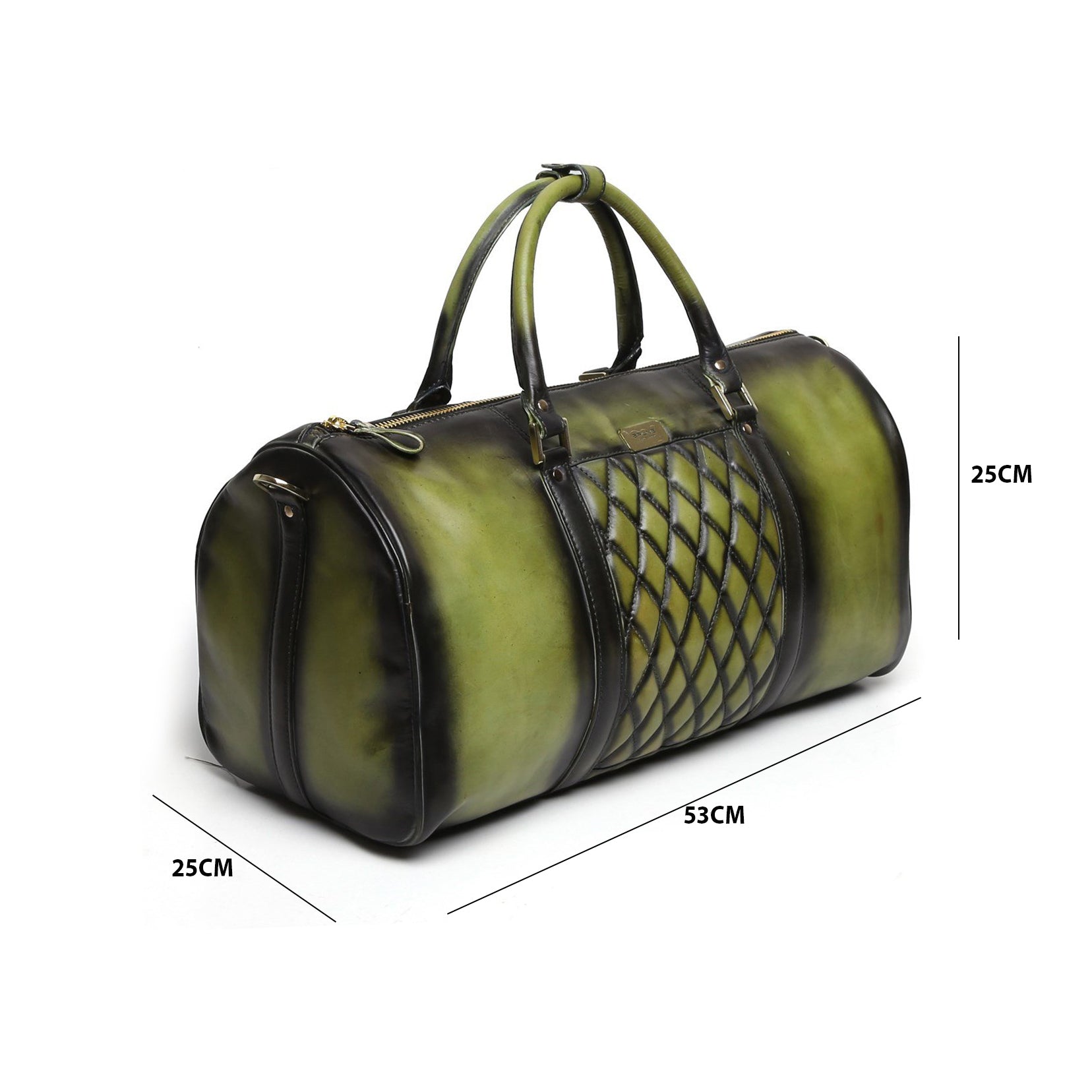 Olive color by Patina technique is something different and looks more classy. Diamond Stitched Collection is our Premium Range of Bags which are made using full grain Leather. This is one of the most vogue styling, which was majorly accepted in English Times by the Queens and Kings for there Trunk Travelling! Olive color looks fab on leather products, this duffle bag is an amazing buy for the folks who like to travel in luxury and style.
