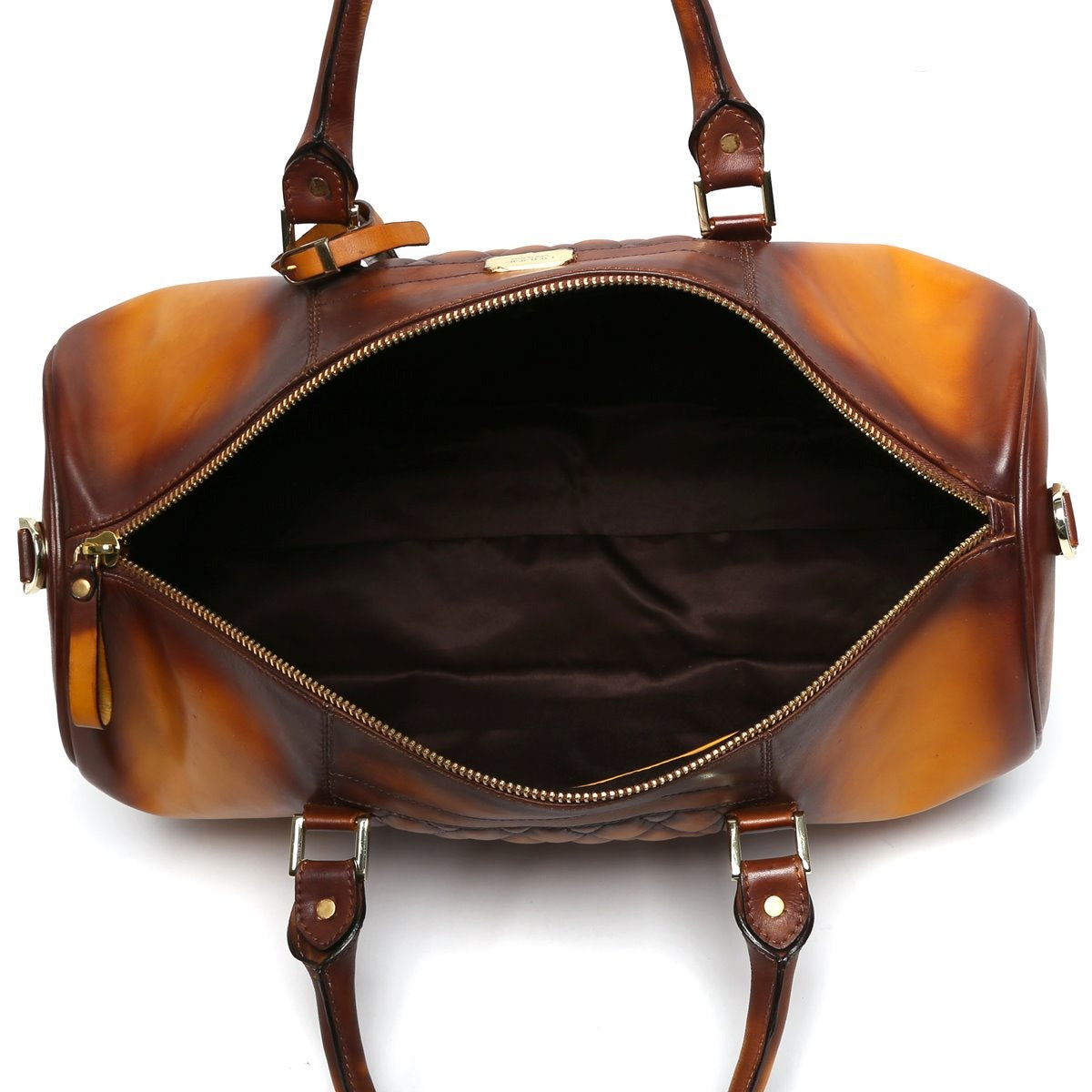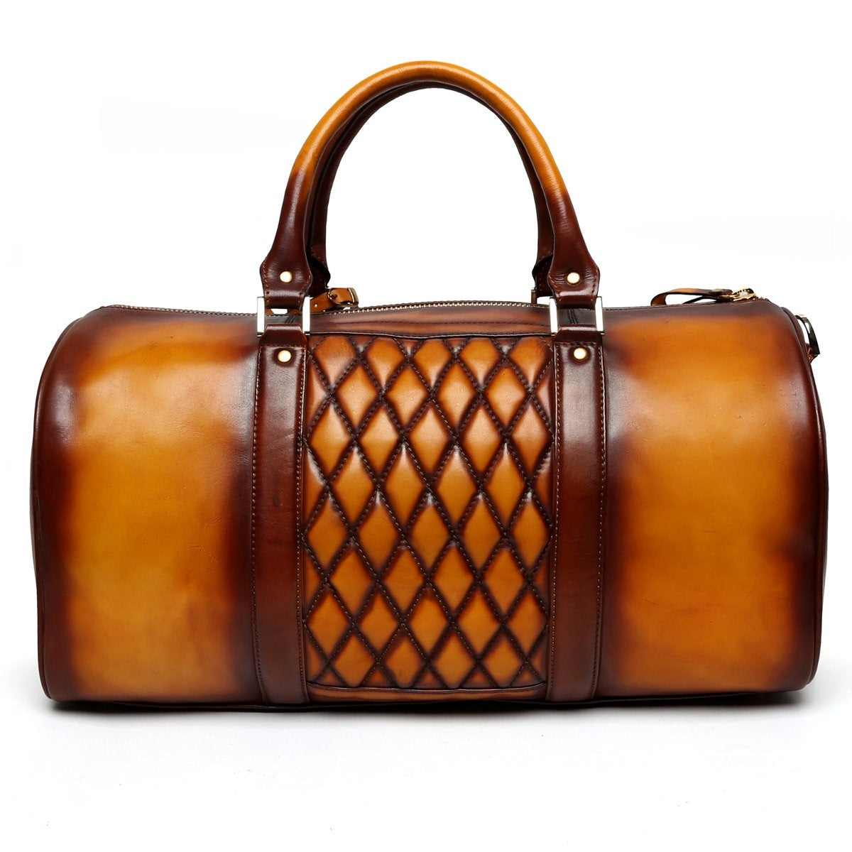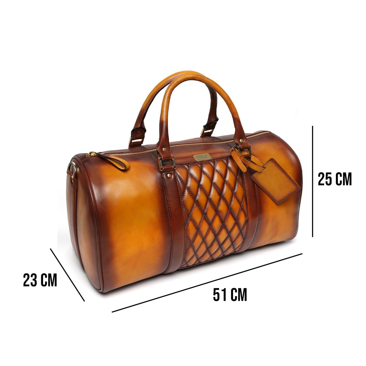 Tan color by Patina technique is something different and looks more classy. Diamond Stitched Collection is our Premium Range of Bags which are made using full grain Leather. This is one of the most vogue styling, which was majorly accepted in English Times by the Queens and Kings for there Trunk Travelling! Tan color looks fab on leather products, this duffle bag is an amazing buy for the folks who like to travel in luxury and style.