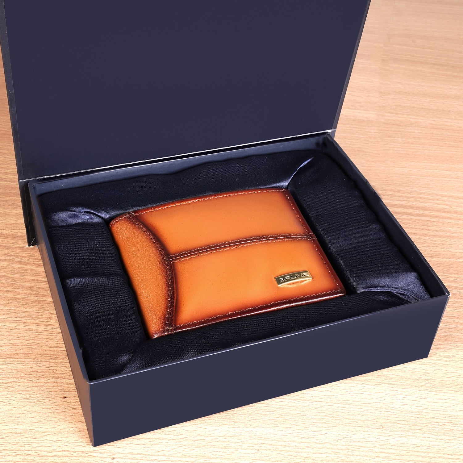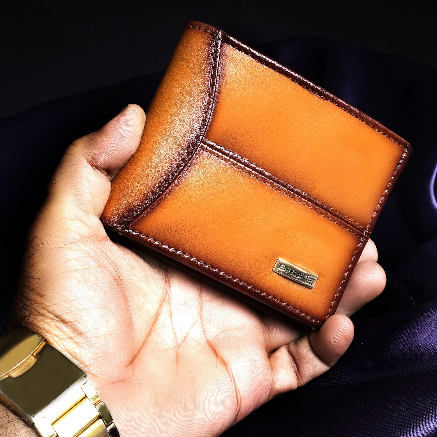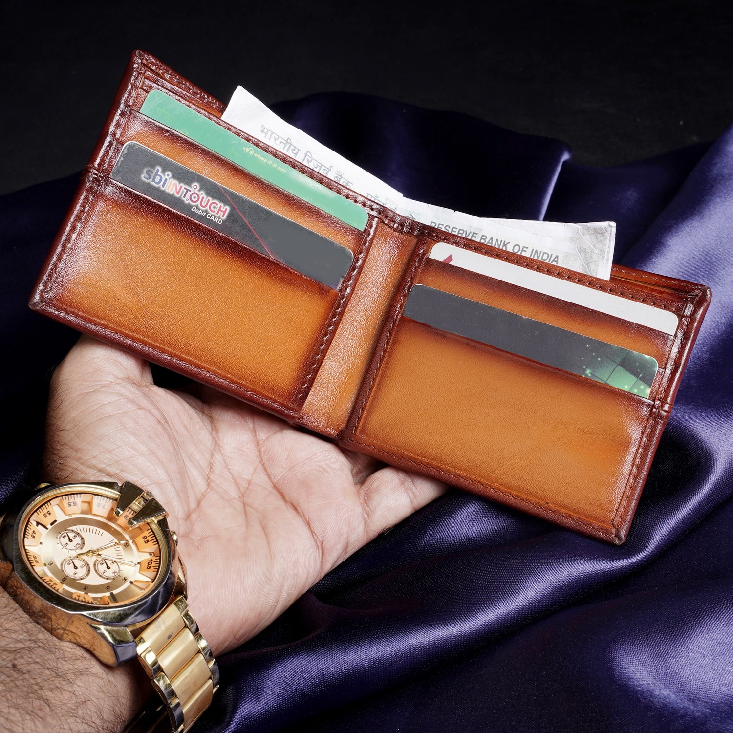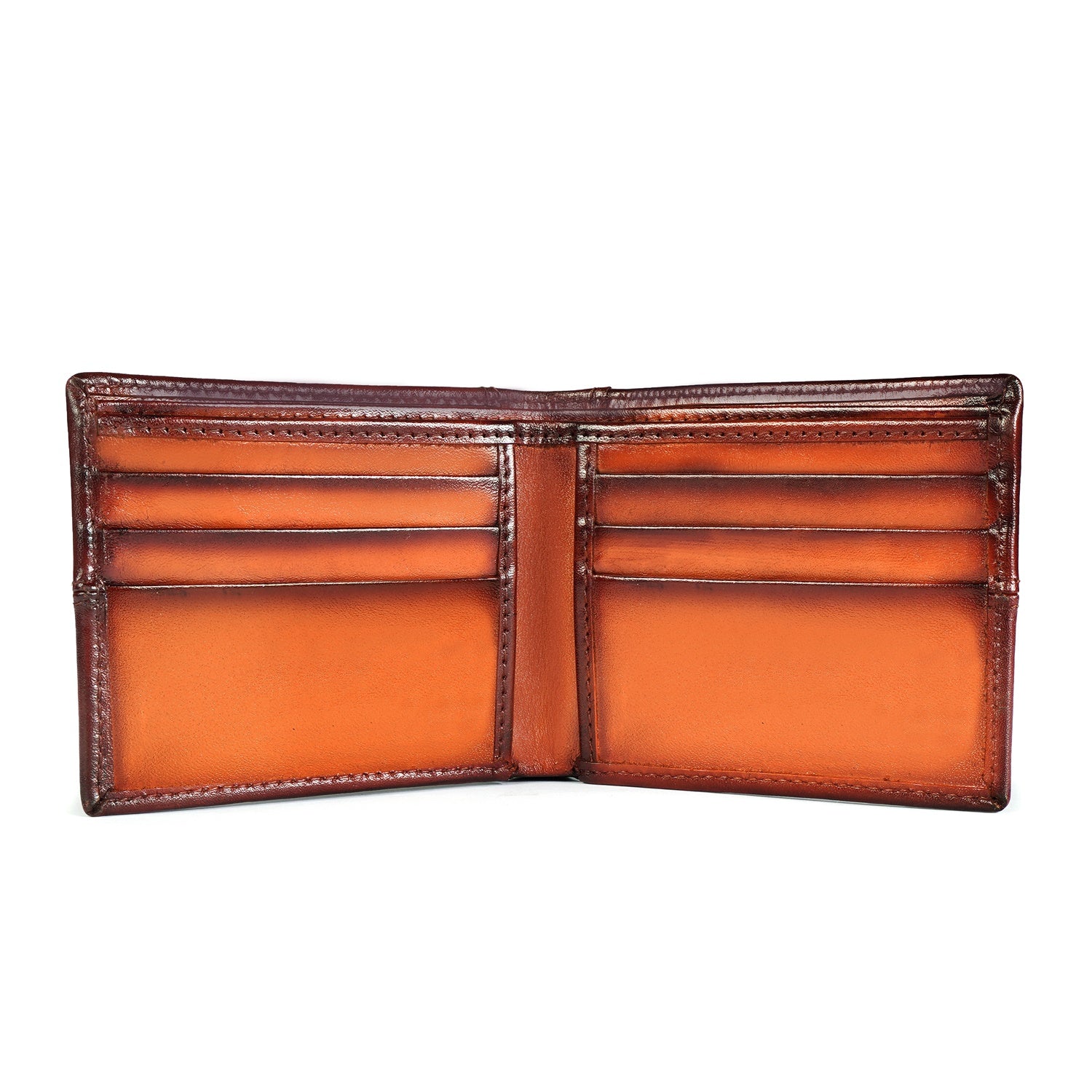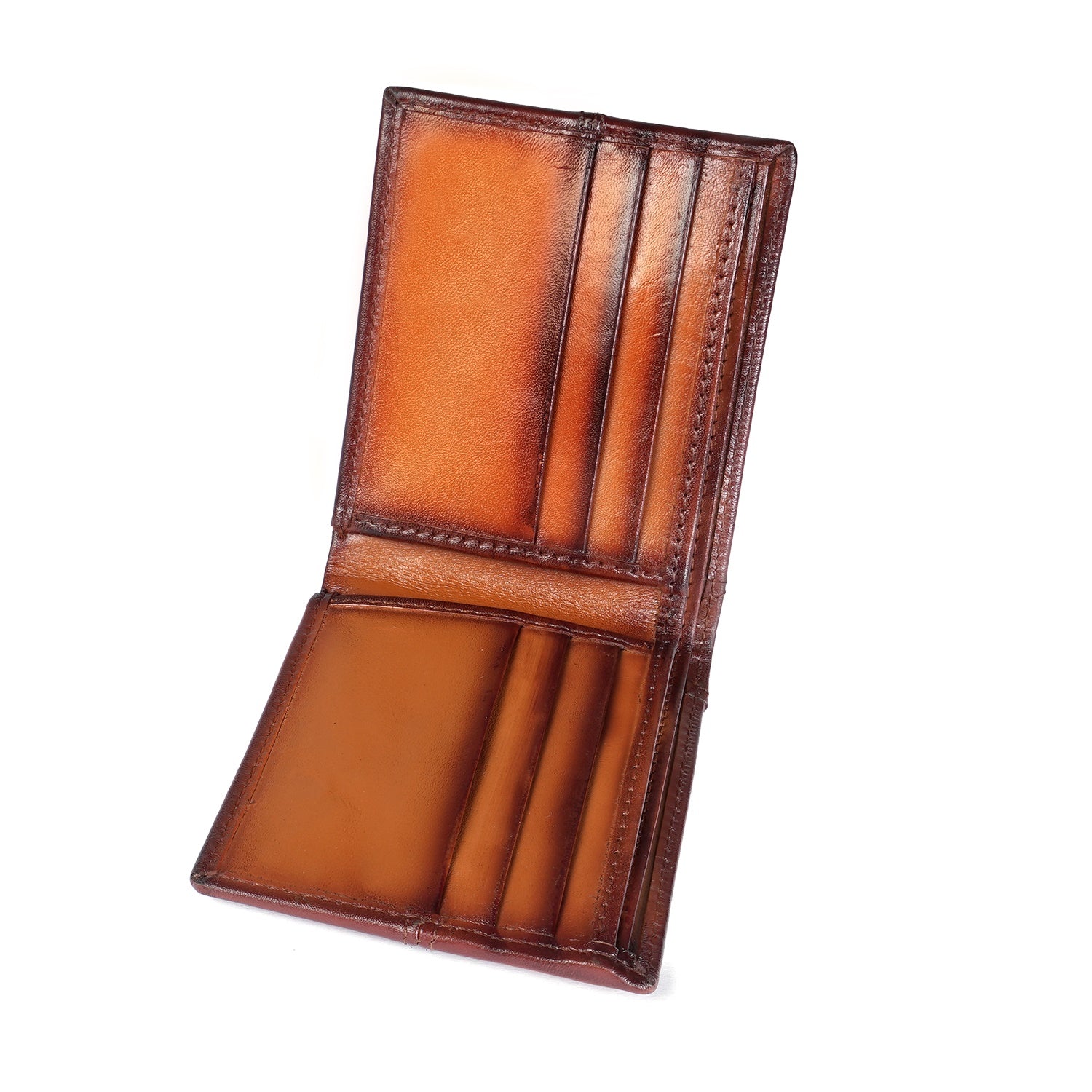 This handsome leather Bi-Fold wallet is handmade from the finest veg. Tanned leather with a polyester lining and features 3 card slot, 2 Sim Slots, and two full length pockets for notes