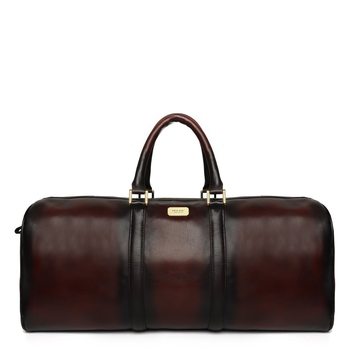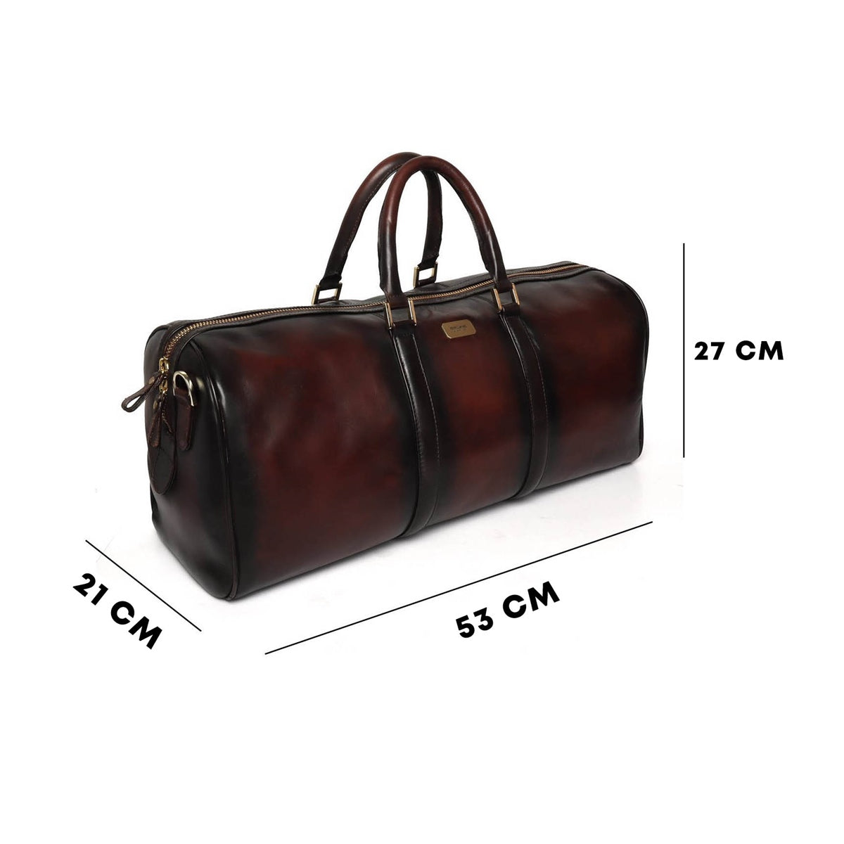 Veg Tanned Duffle Bag Dark Brown Hand Painted Leather With Golden Accent