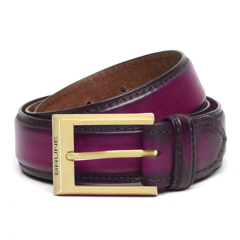 Wine With Golden Buckle Hand Painted Leather Formal Belt For Men