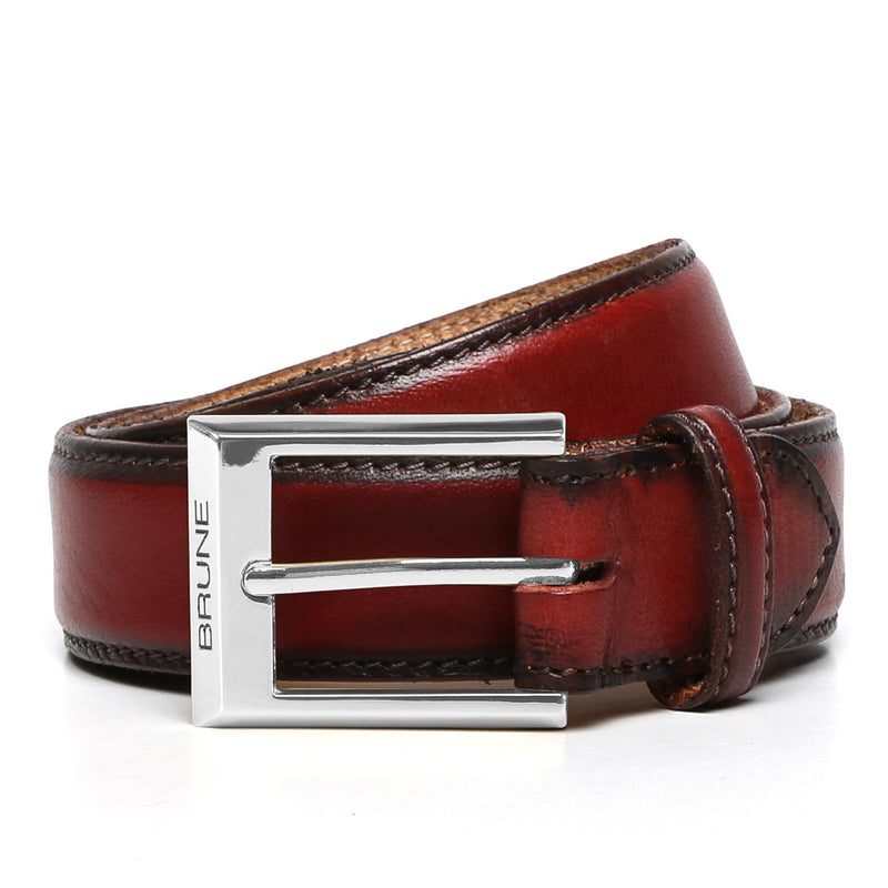 Get ready to look dashing when out on some friendly outing with your besties with this finely designed Wine colored Hand Painted Leather Formal belt for men that is sure to keep you at comfort all day long. This attractive belt ranks high on the latest Formal style to offer you a well deserved popularity. It can easily be teamed up with any tee and chinos for a carefree macho look. The renowned brand of Brune & Bareskin is widely trusted by men all over India for their wide range of premium quality leather belts that rank high on durability and style factors.