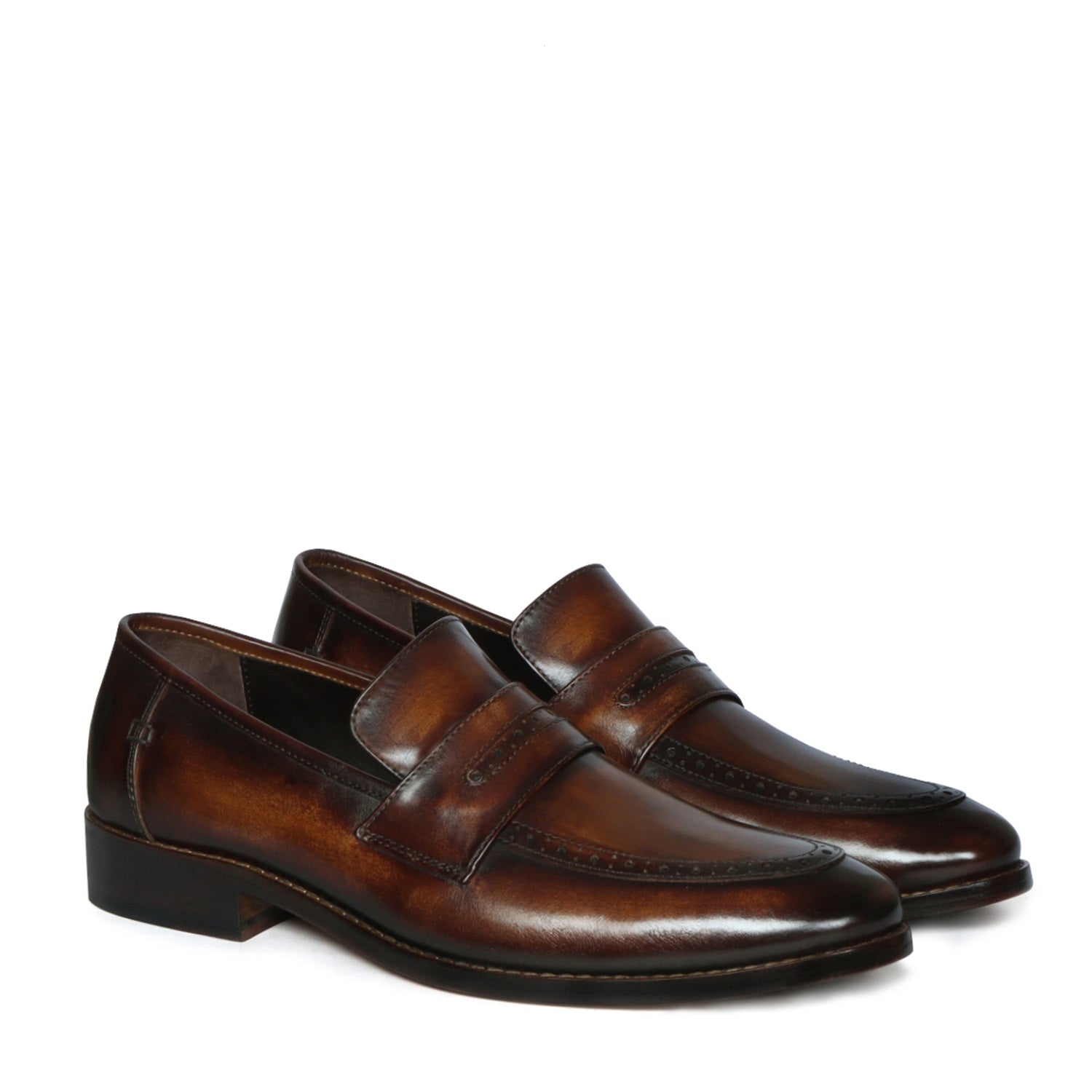 Patina Finish Leather Loafer with Brush Stroke Punching Apron Toe