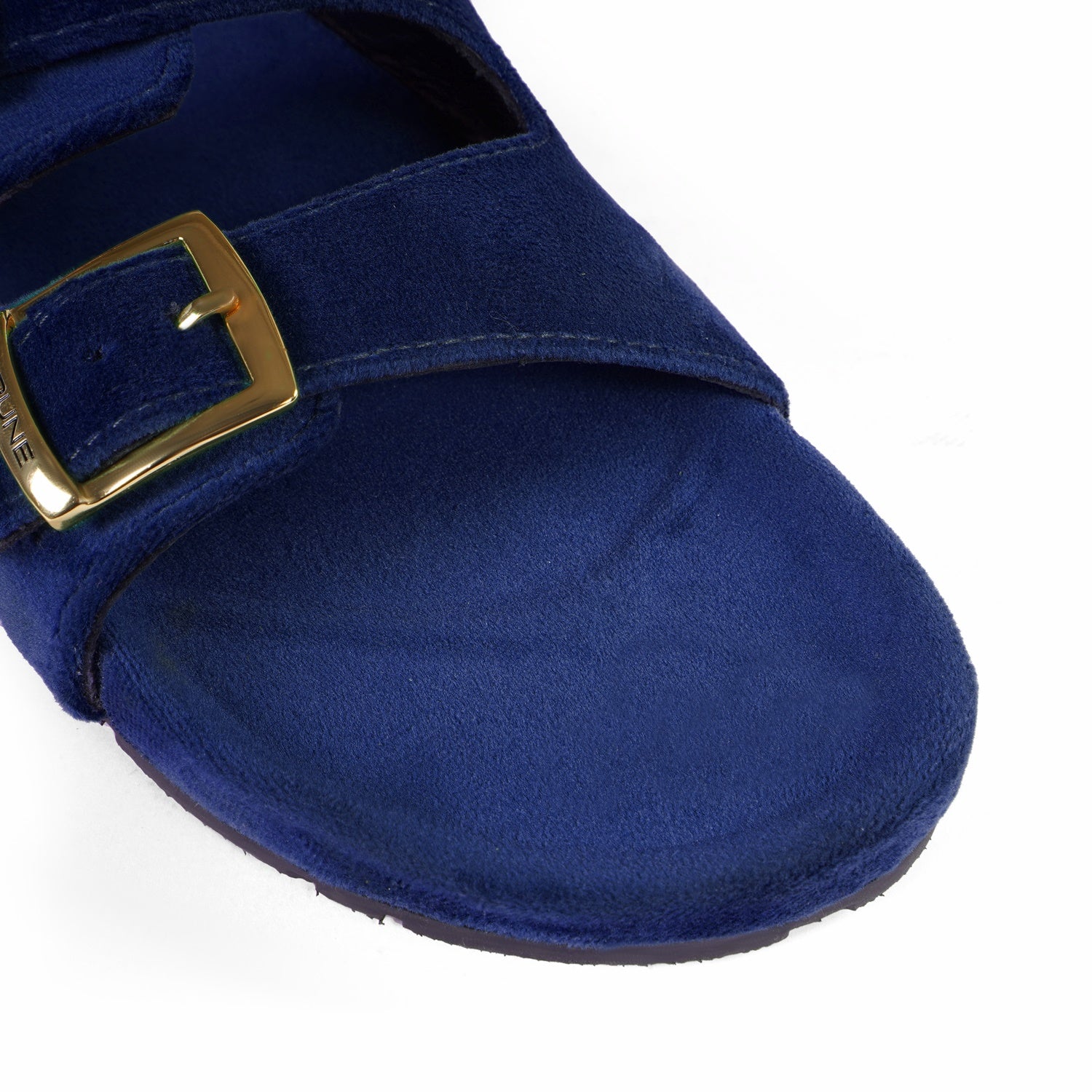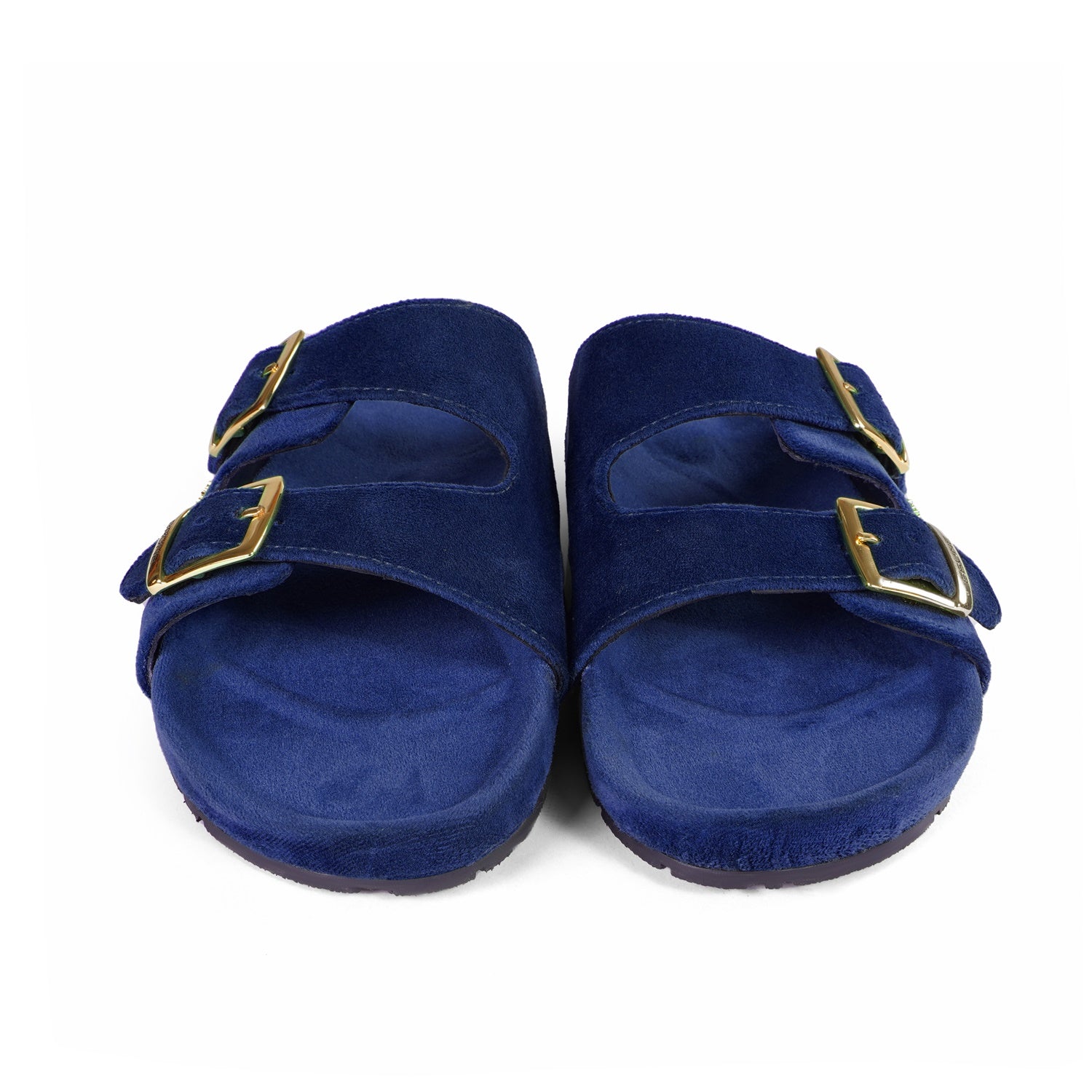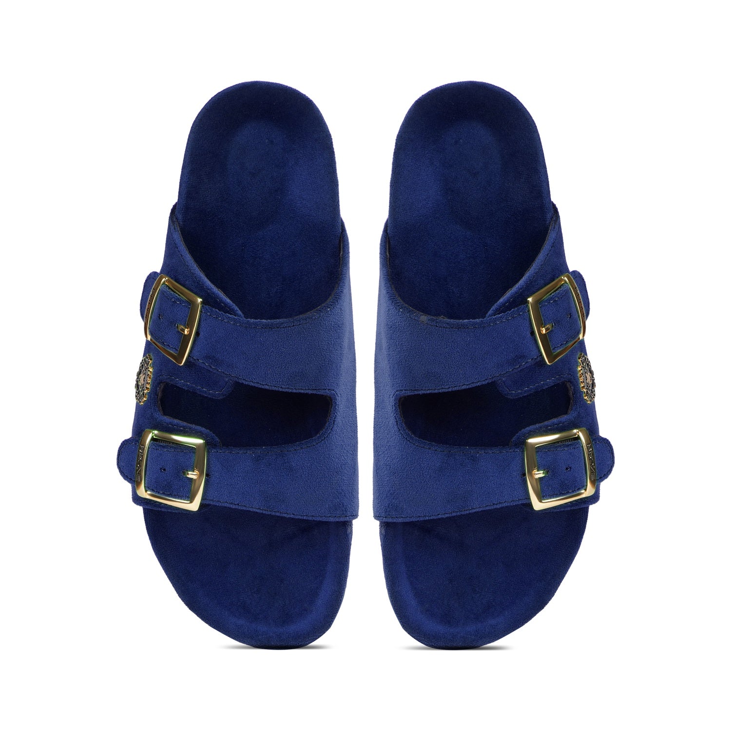 Buckled Slide-in Slippers in Blue Italian Velvet Material