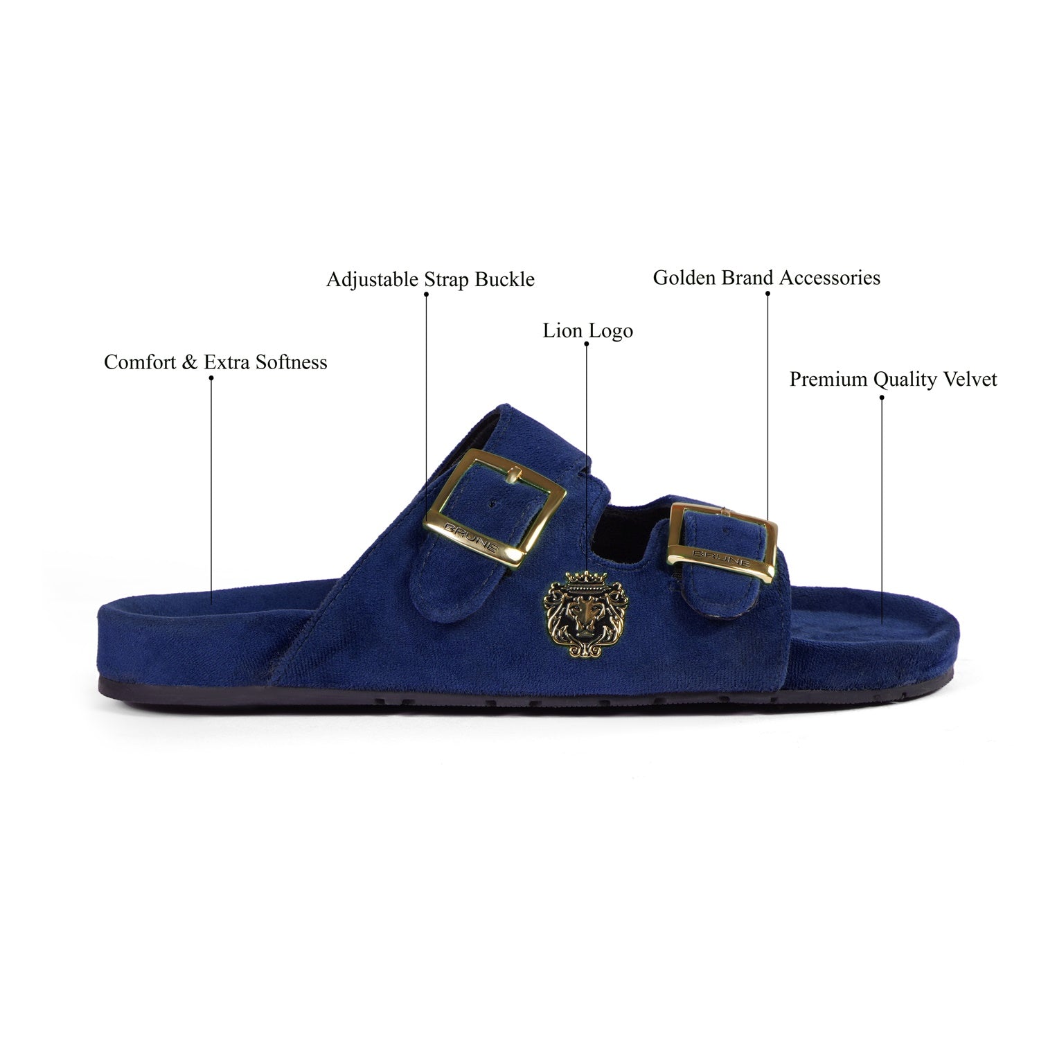 When it comes to Slippers, comfortability is the highest priority. These Italian Velvet Slippers are the luxurious piece of beauty from Brune & Bareskin. These super soft velvet base slippers are a must-have of the season. Adjustable buckle on strap spells freedom and the casual lifestyle. The gel injected memory foam base is designed to provide you comfort while walking. We use special layering techniques to keep the base cozy and retain its shape. Adjustable buckled strap endows the extra room for every foot. The wider straps Design with BRUNE & BARESKIN Lion Logo enhance the elegance further. Carry these with Jeans, Shorts, Capris, and other casual wear to be a style leader.