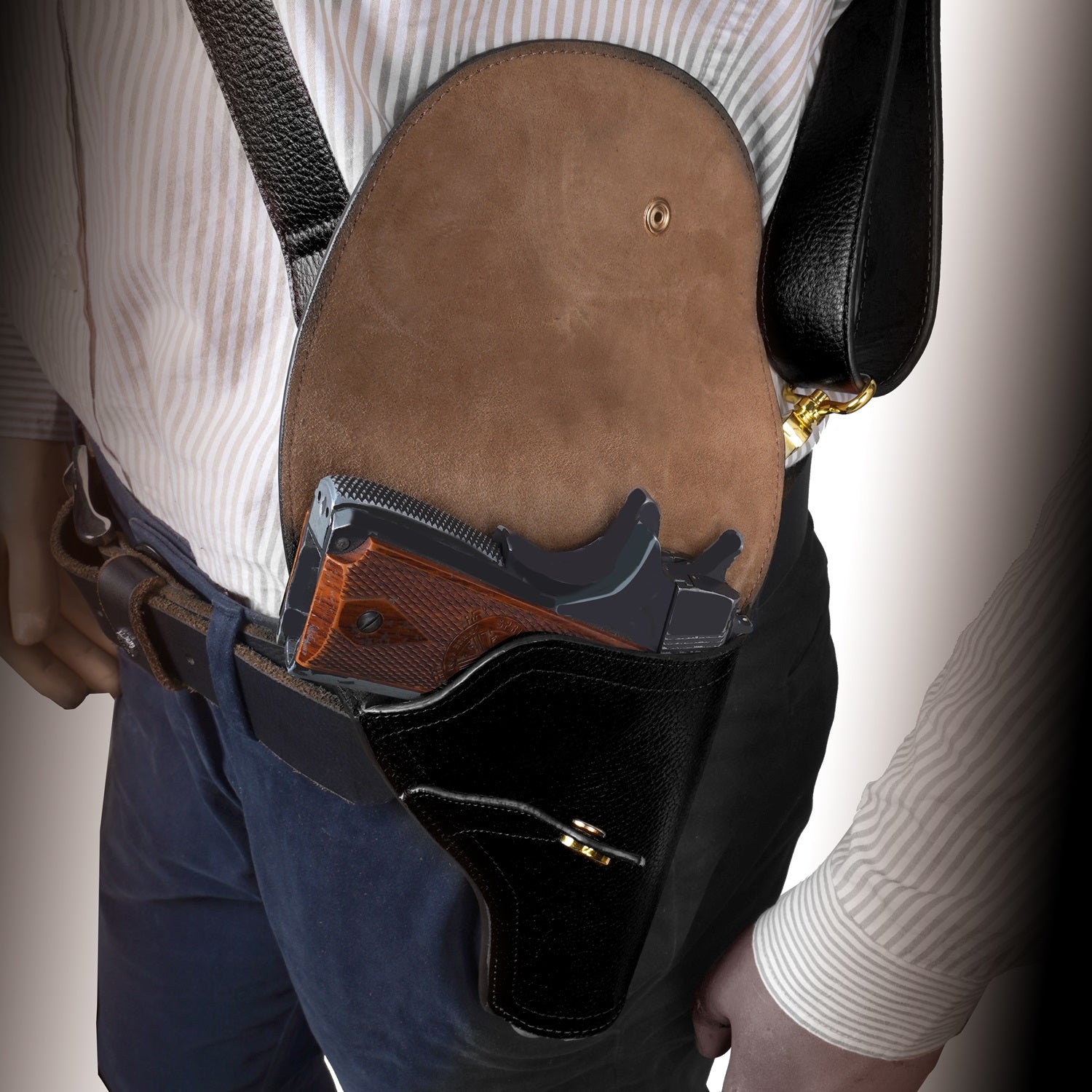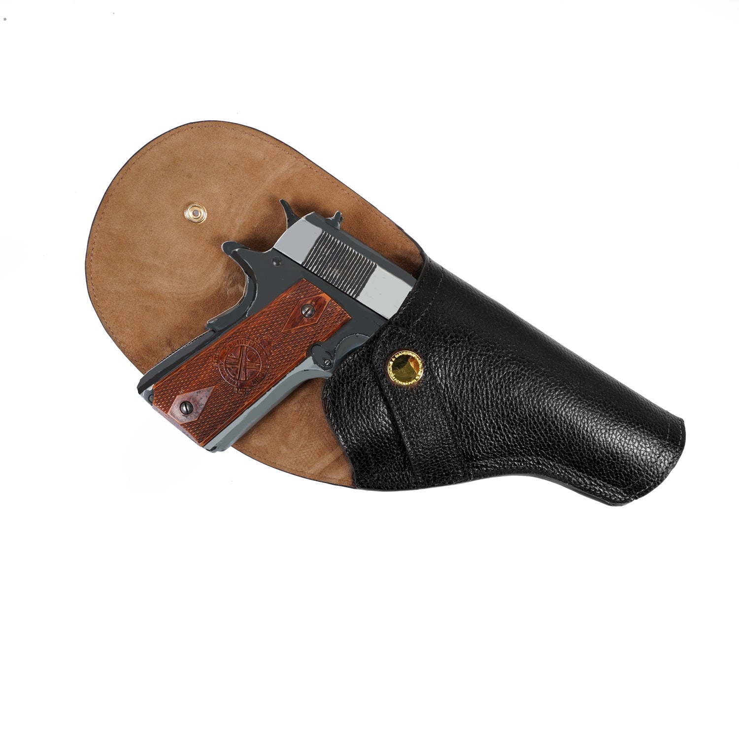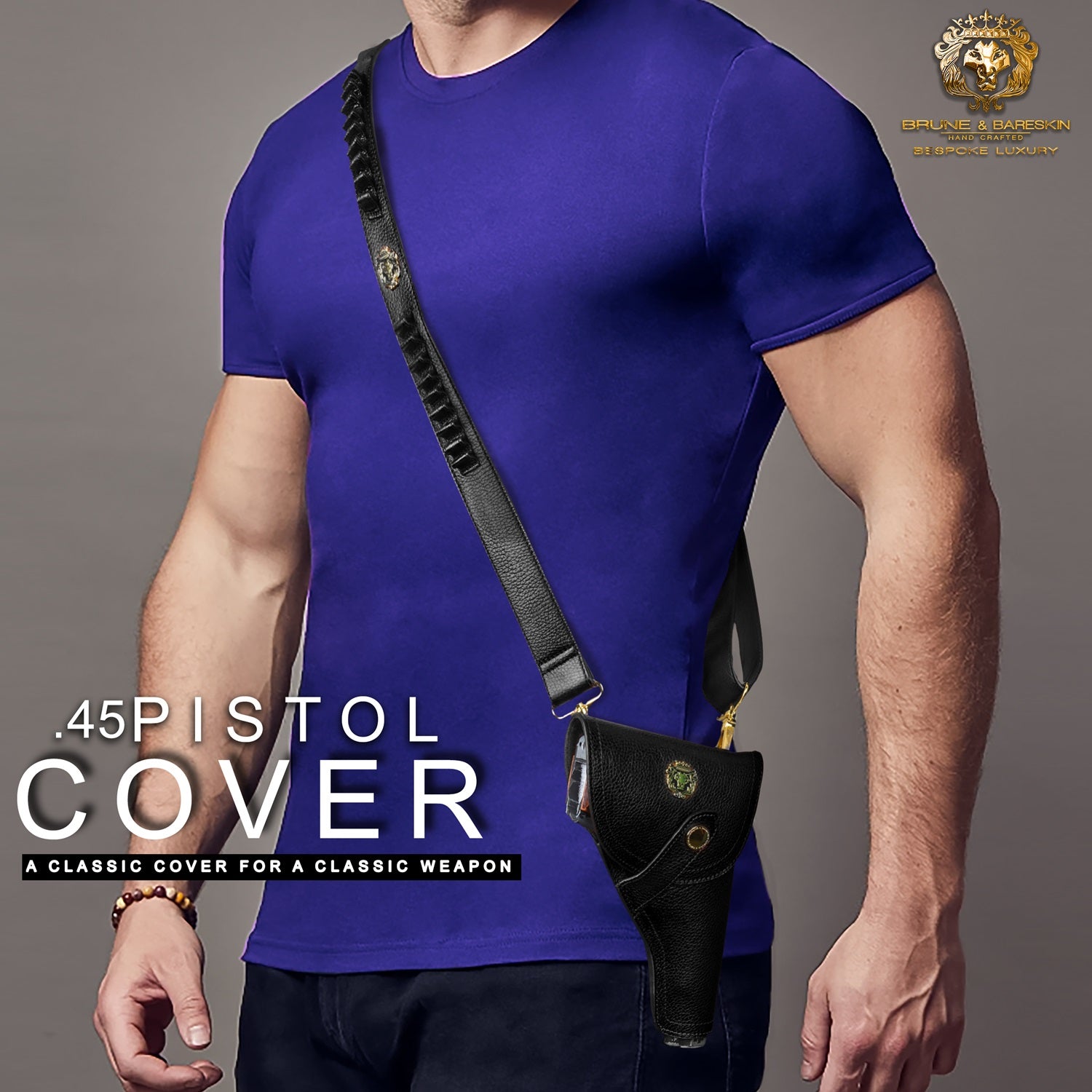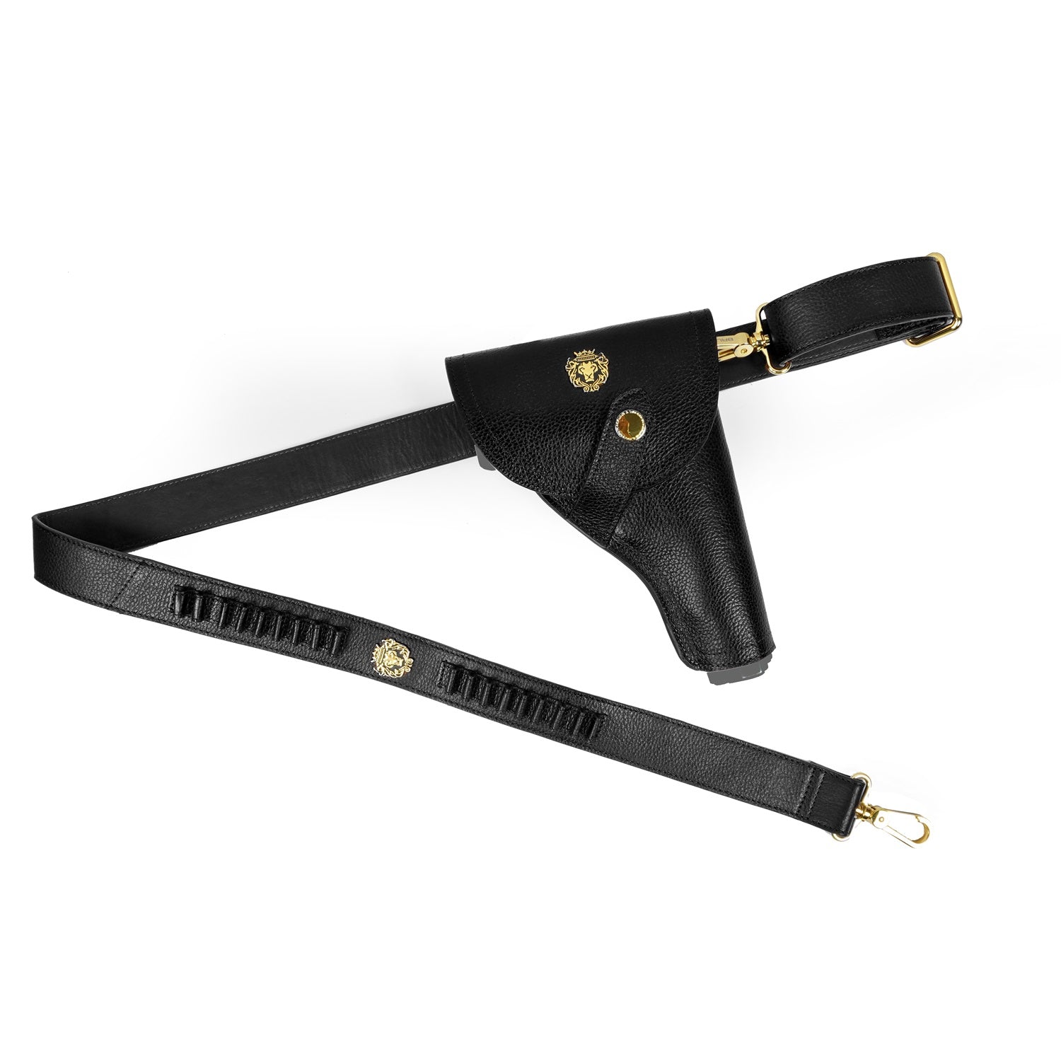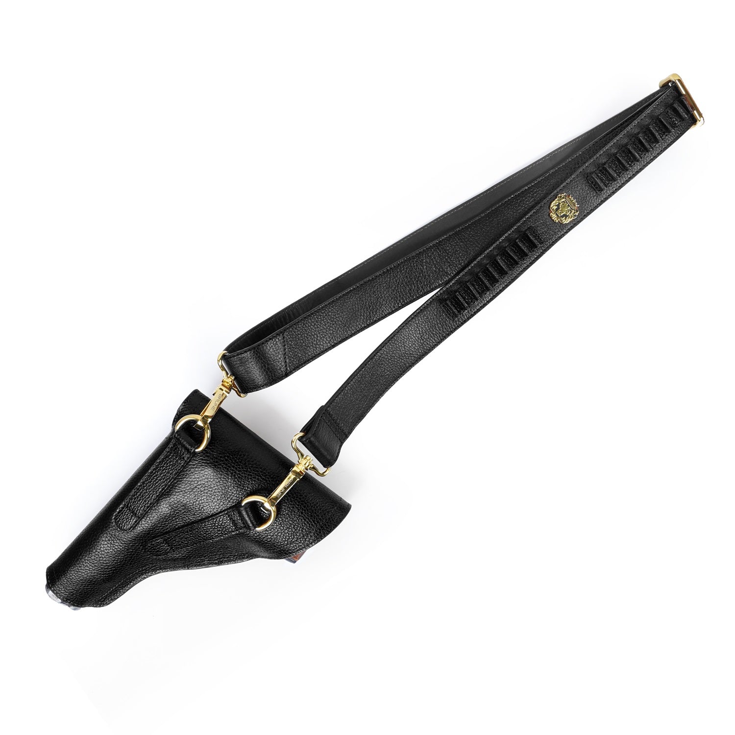 Bullets Holder Gun Cover & Buckle Strap Black Textured Leather (MTO)