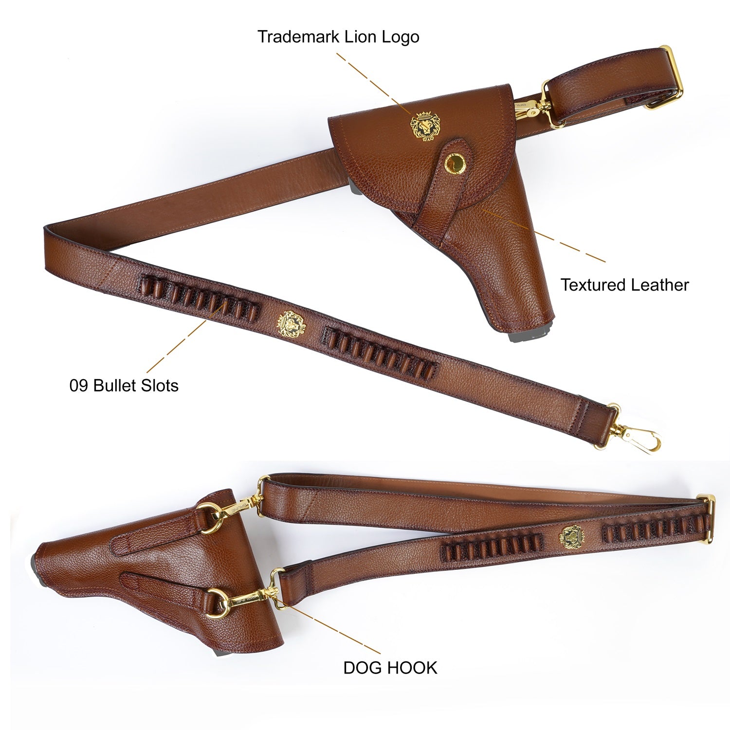 Strong & wide adjustable Strap is attached to maintain its durability & comfort to wear on your chest. It has Gold metal buckles in strap to adjust its length & lion logo is placed at the Centre of the strap and on gun cover. It gives classy look to a person when some one holds it.