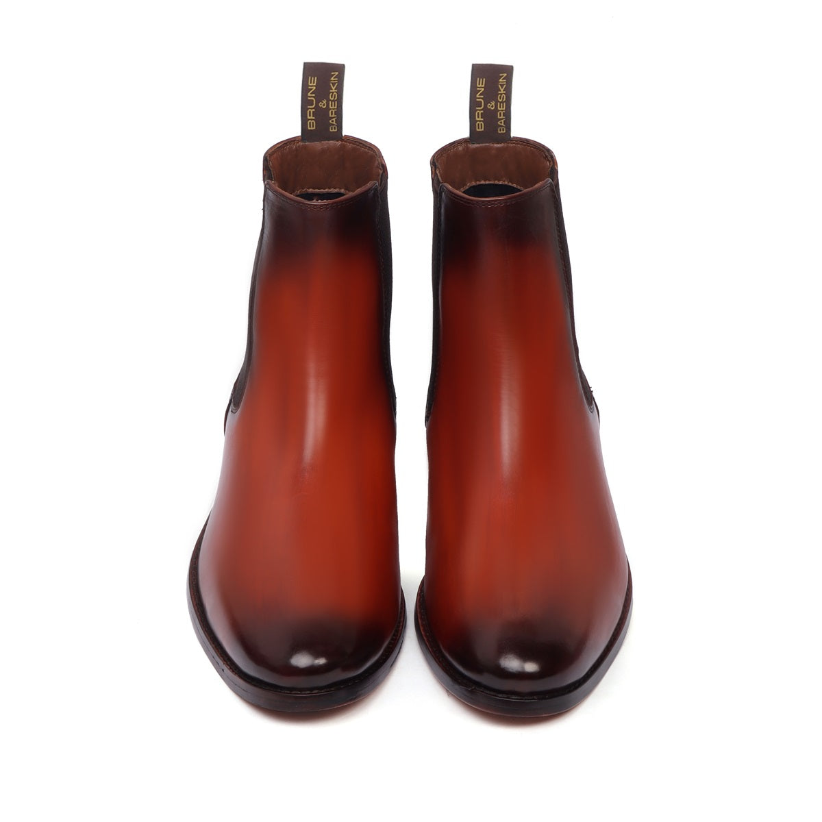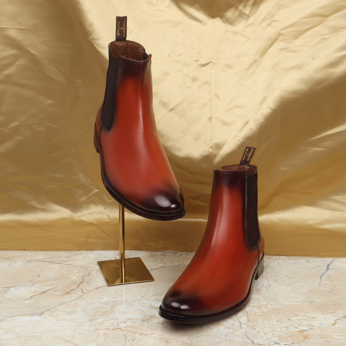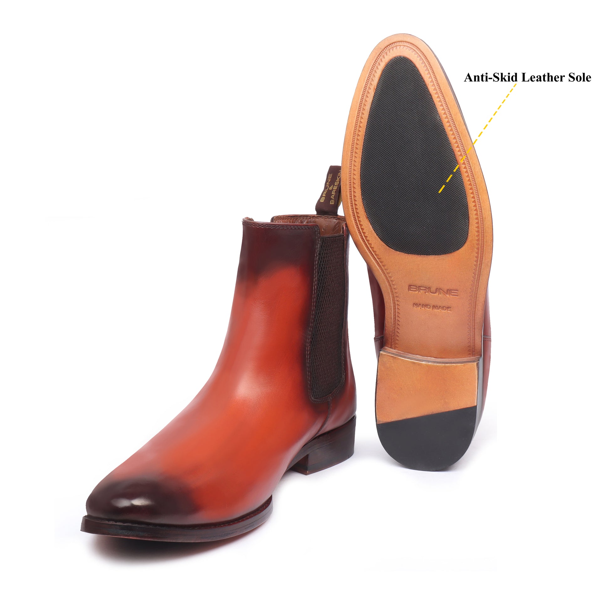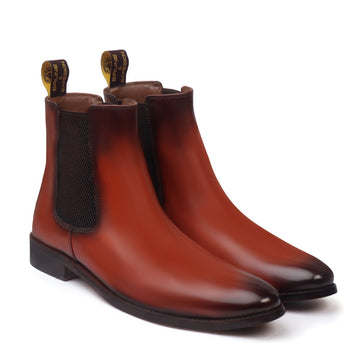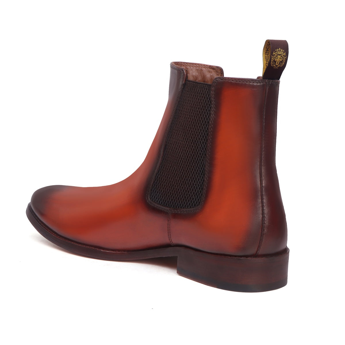 Burnished Chelsea Boots In Tan Leather with Leather Sole