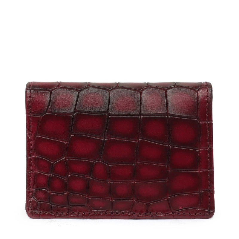 Burnished Deep Cut Tan Croco Leather Card Holder