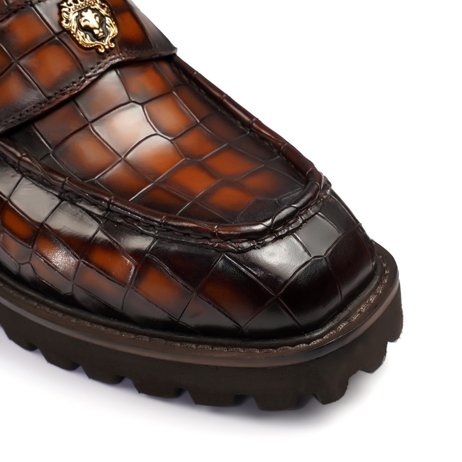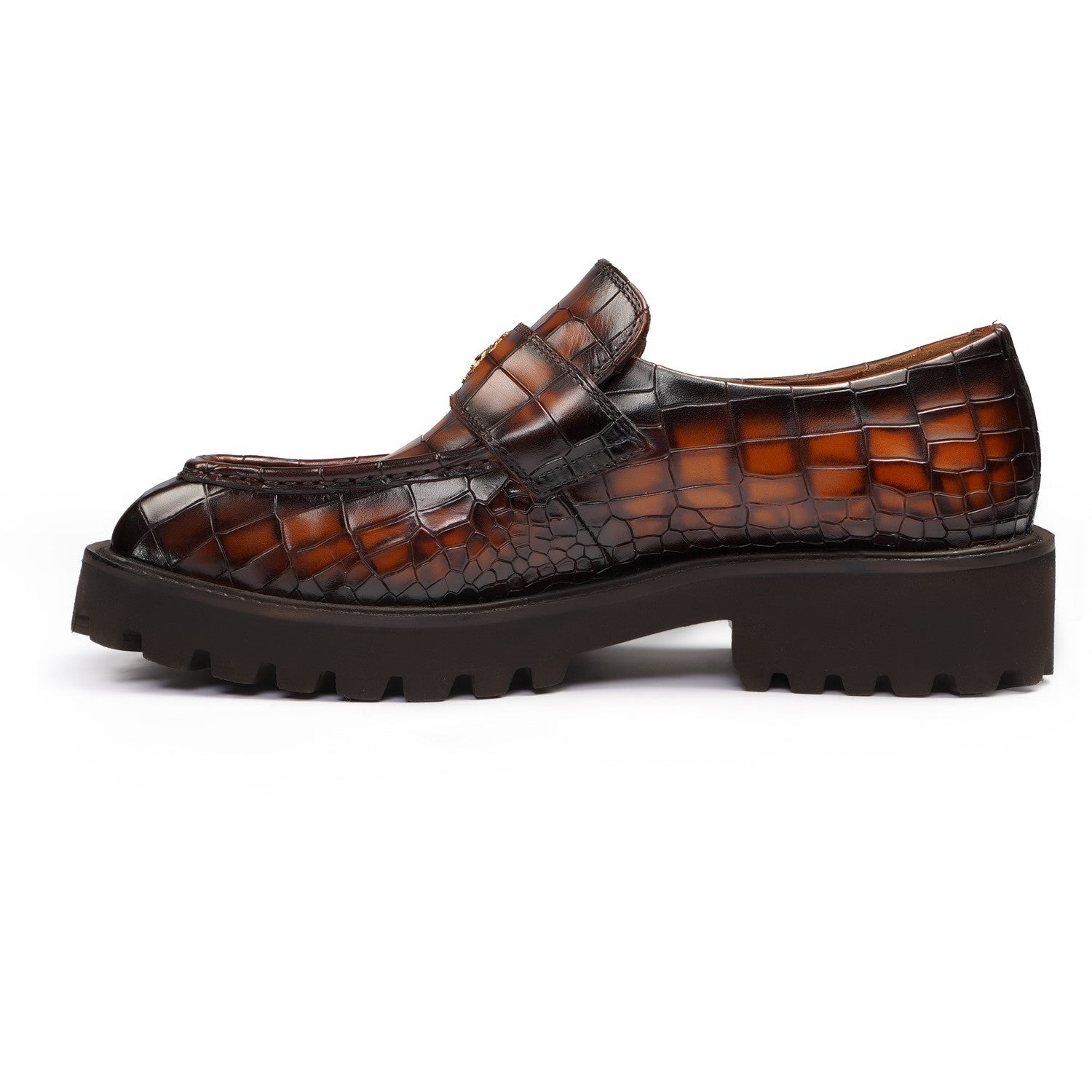Burnished Tan Embossed Full-Grain Leather Chunky Loafers