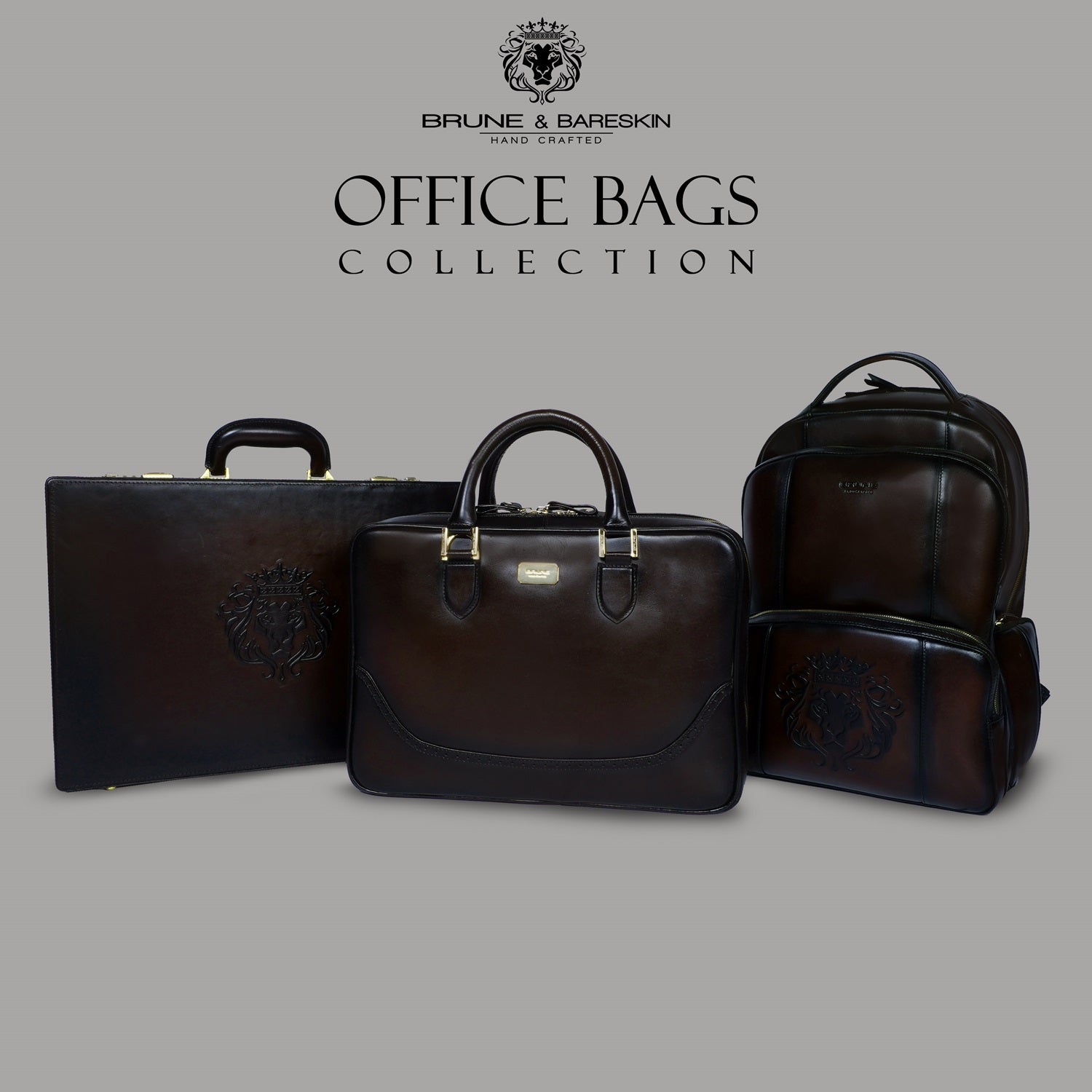 Introducing the Business/Office Combo Bag In Dark Brown Genuine Leather by Brune & Bareskin. Crafted from genuine leather for a luxuriously soft and sophisticated experience, this men's bag combo offers the perfect blend of business and office travel, with a combination of laptop briefcase, office briefcase, and backpack. Its dark brown hue adds a sartorial touch, ideal for business professionals who appreciate a distinguished look.