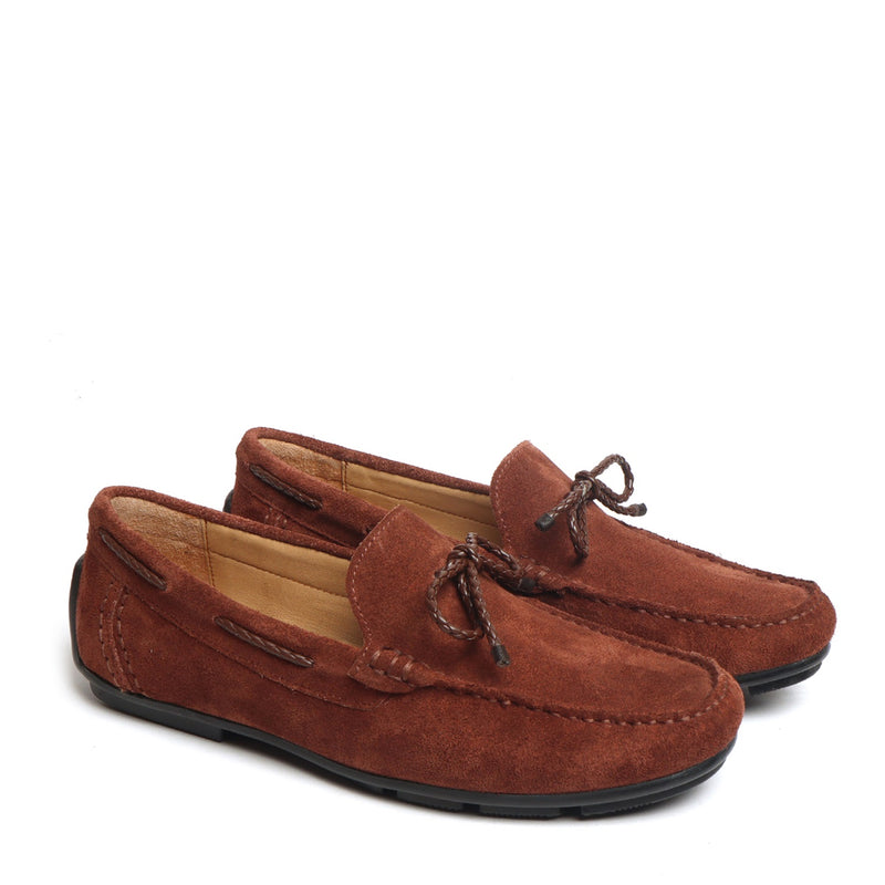 Tassel Bow Loafers in Tan Suede Leather