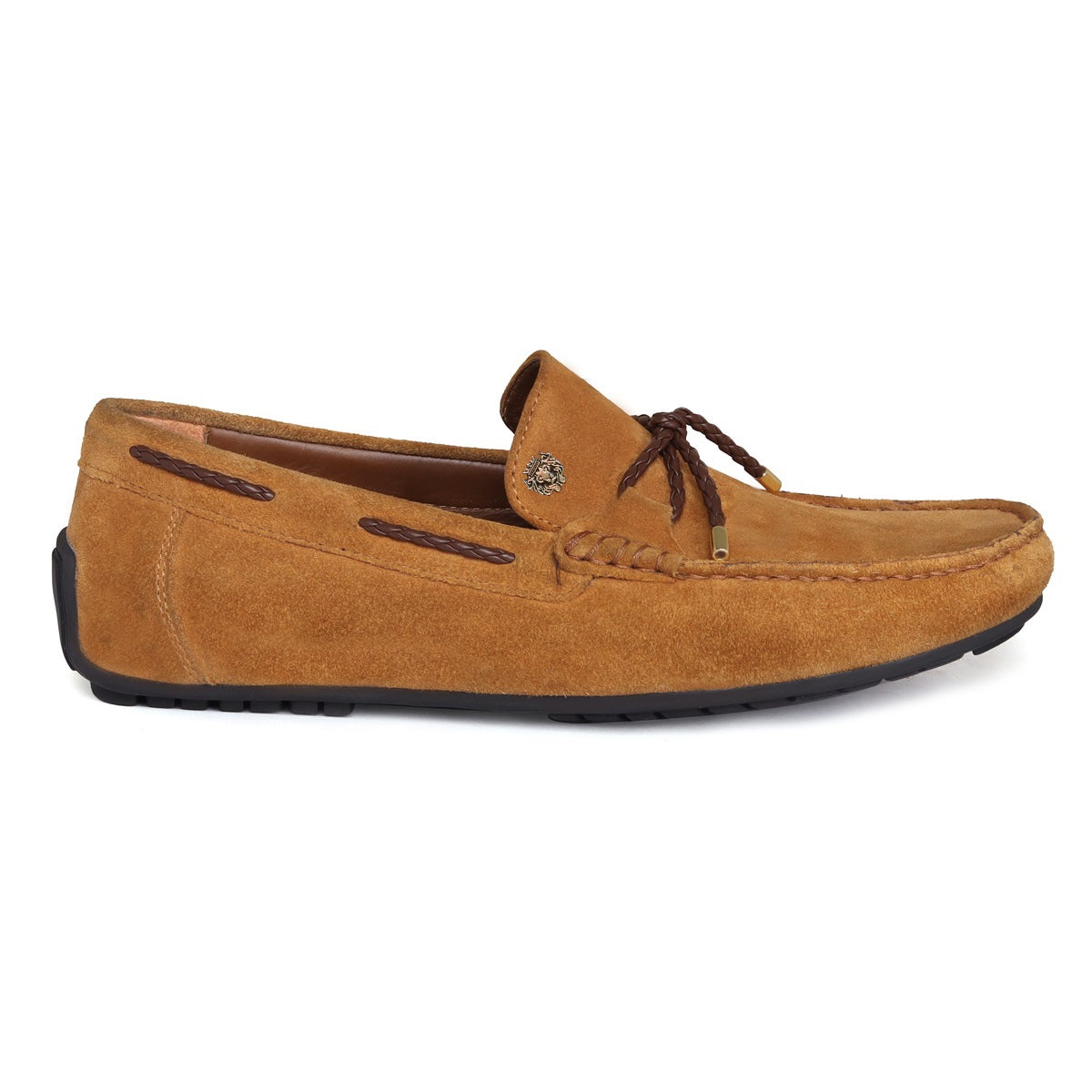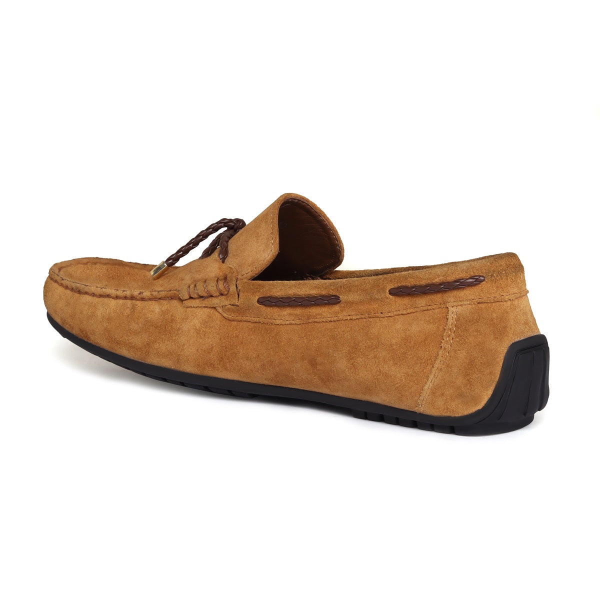 A modern twist on the classic loafers shoe is style thing to admire. For Genuine Suede Leather shoes, with style, choose to wear this pair of hand crafted leather shoes by Brune & Bareskin. The trendy weaved leather bow is one-of-a-kind design and indicates your style preference. The Tassel Bow on the Camel Suede leather enhances the chic style further. Camel color goes with every color combinations & contrast. These hand-crafted shoes have the memory foam insole to provide you the all day long comfort.