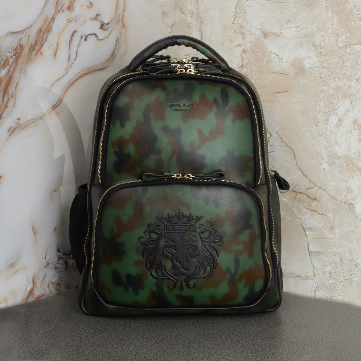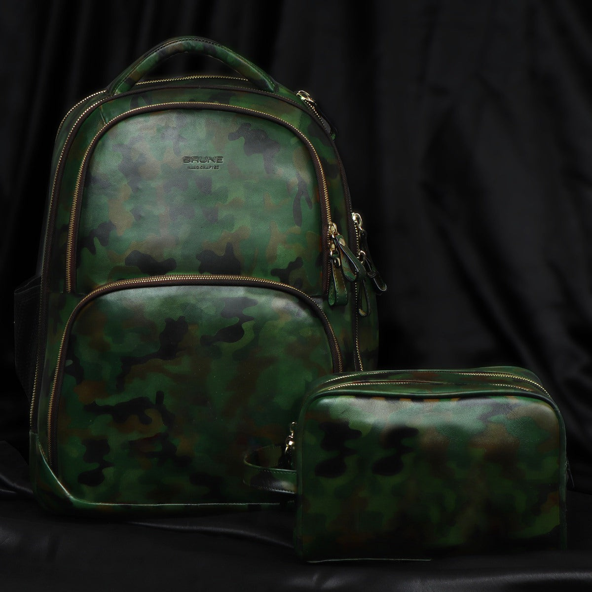 The backpack is a choice of every age to carry the things comfortably. We try to make impossible things possible. Colors in Leathers are rare to see, but we are here to ask "What is your choice of color in Leather?" It's a Camo Leather unisex Backpack. 2 large zip compartments including a laptop pocket & a suitcase opening to carry clothes and 2 small pockets to carry documents or any other your necessity. This amazing travel leather backpack is crafted with genuine leather by generations-long craftsmen. Its elegant look ensures to keep every eye on you. This is a perfect accessory for a perfect airport look. You can write your name Initials on the products too with coloring technique. its unique color is enhancing the royalty of the product. The precisely created size makes it easy to go on flights as a check-in luggage bag. Padded straps and back make it very comfortable while carrying on shoulders. You can customize this bag further by choosing your favorite color. This dashing bag is a perfect travel partner.