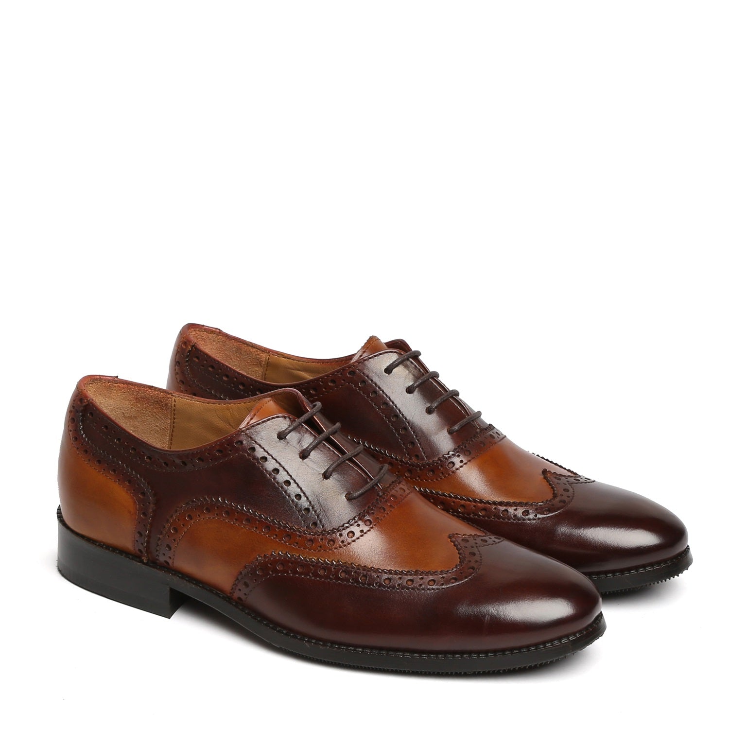 Tan-Brown Leather Shoe with Punching Brogue Oxford Lace-Up Closure