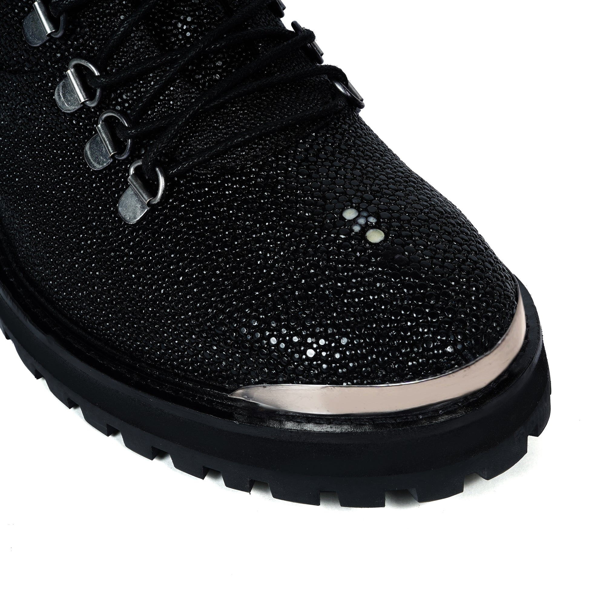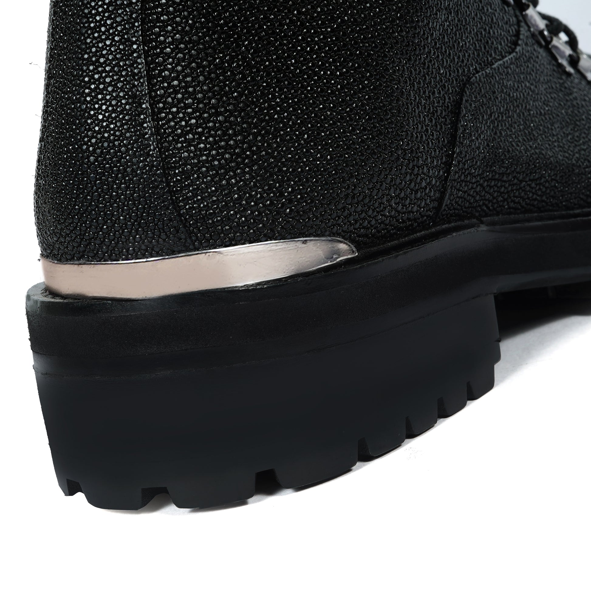 Chunky Boot With Exotic Black Caviar Stingray Fish Leather