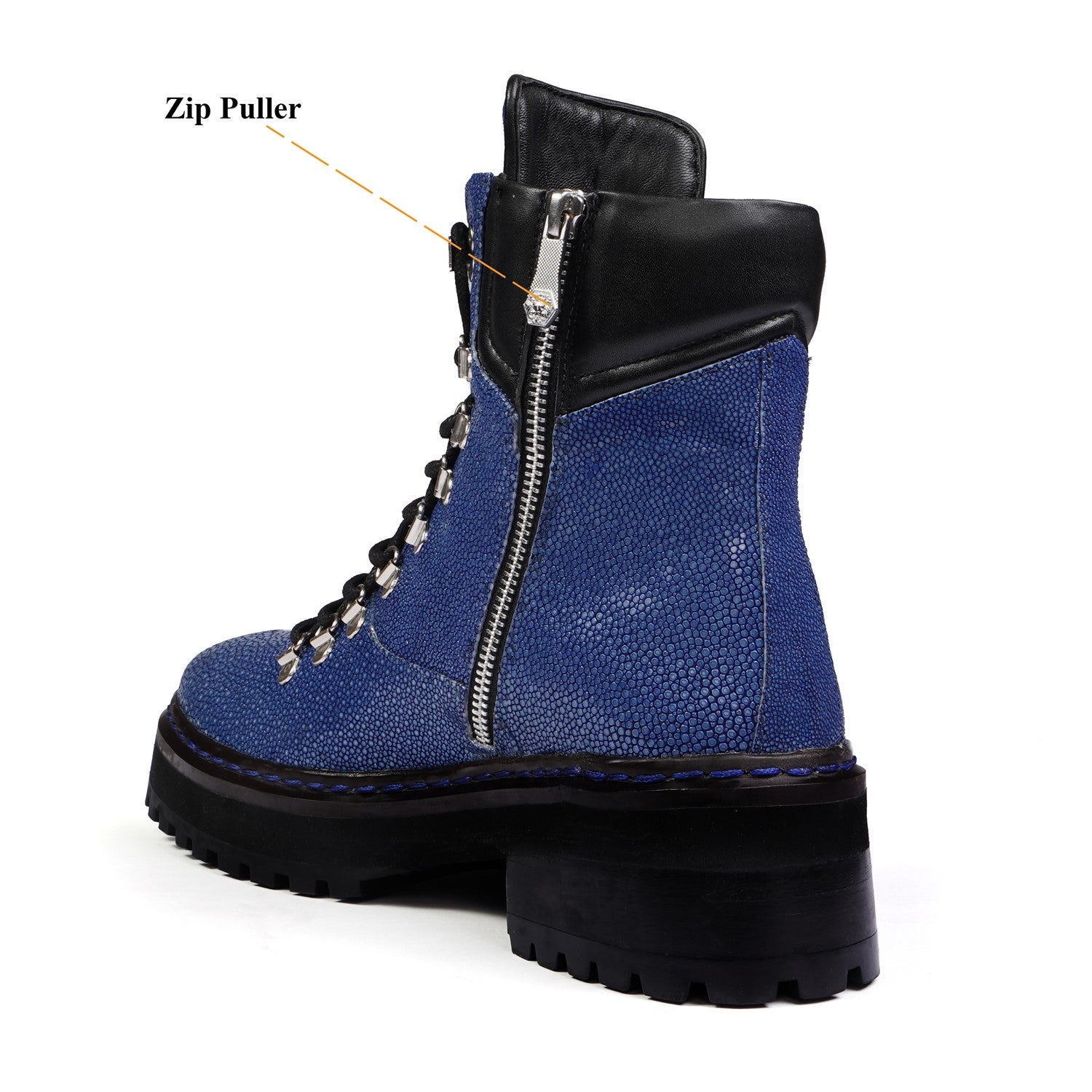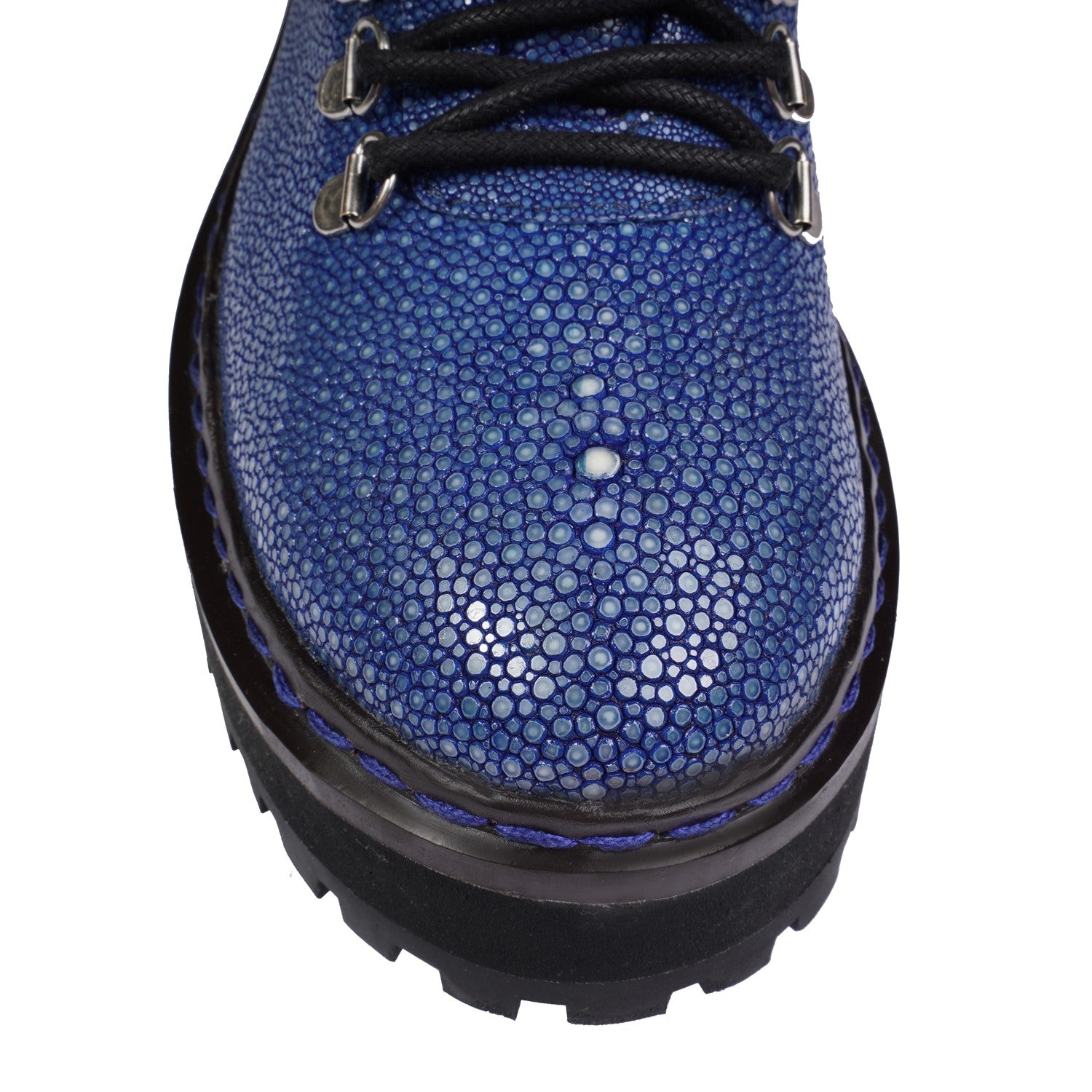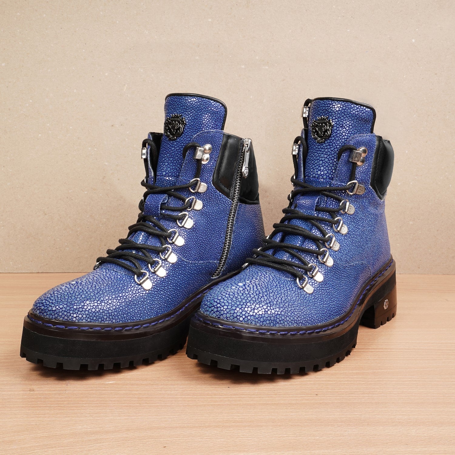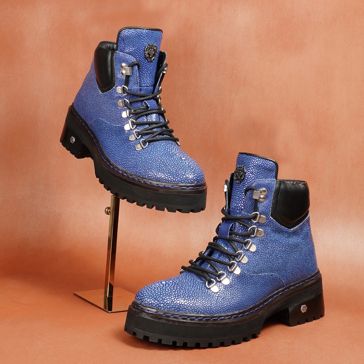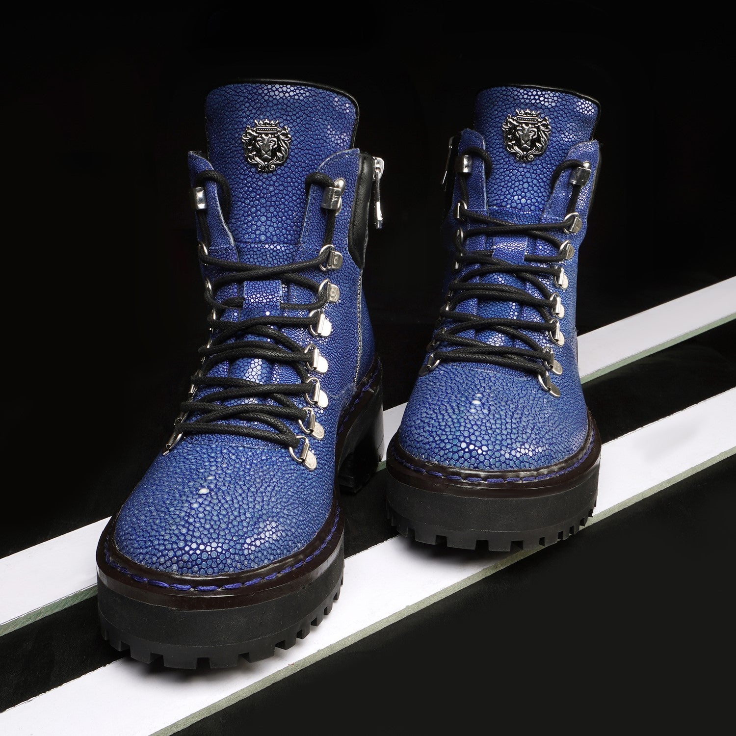 Chunky Boot With Stingray Fish Exotic Blue Leather
