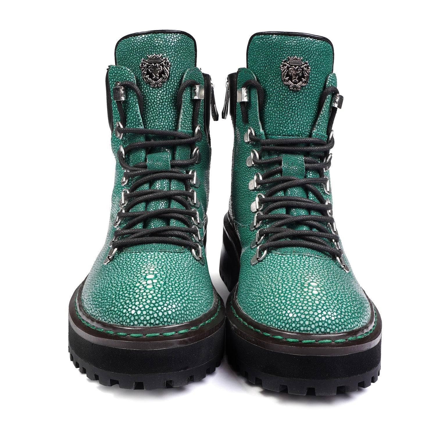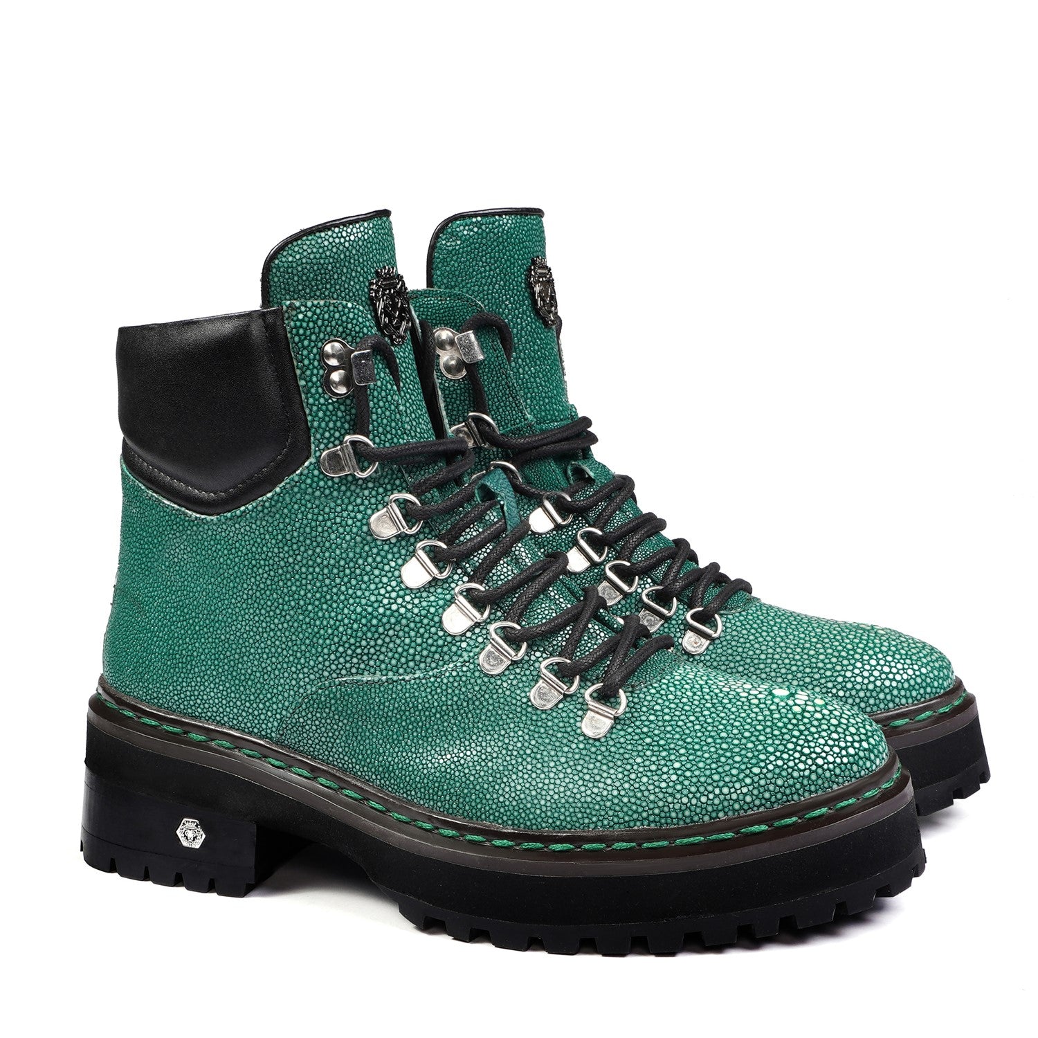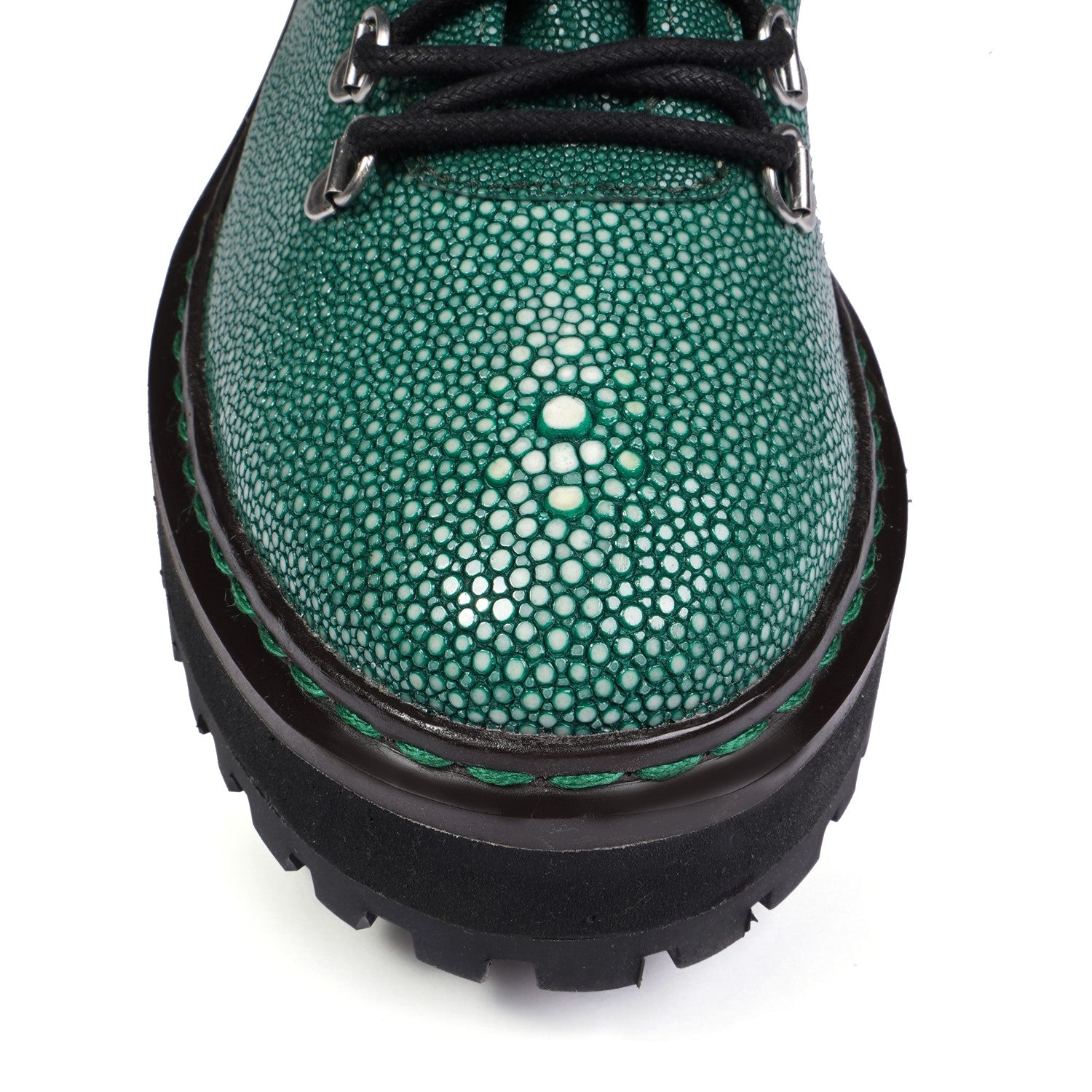 Chunky Boot With Stingray Fish Exotic Green Leather
