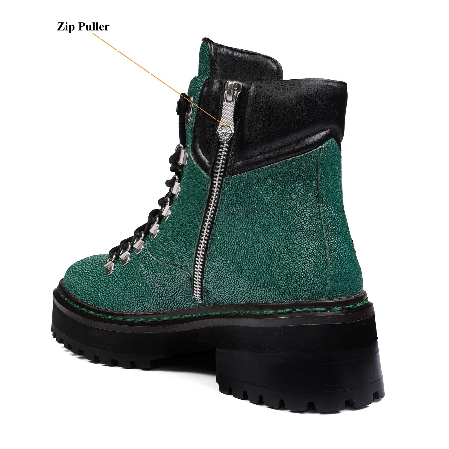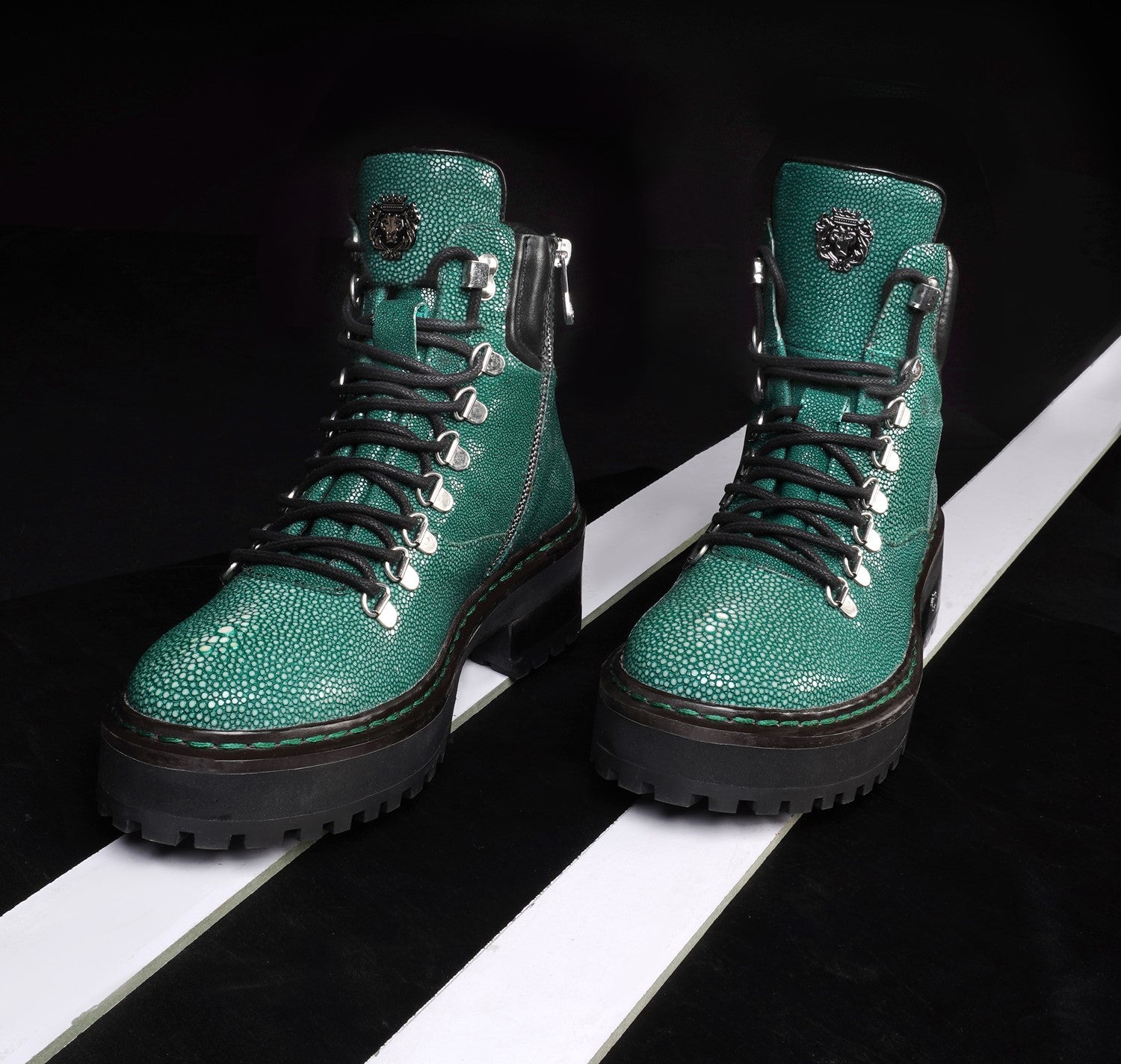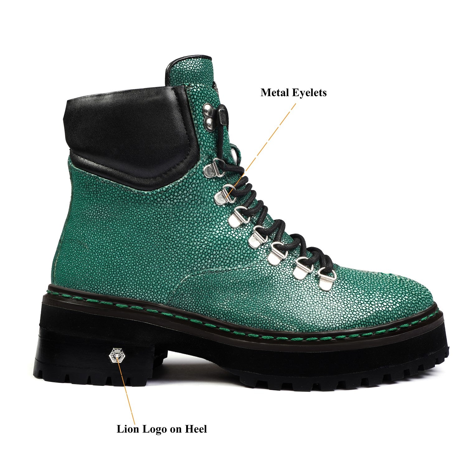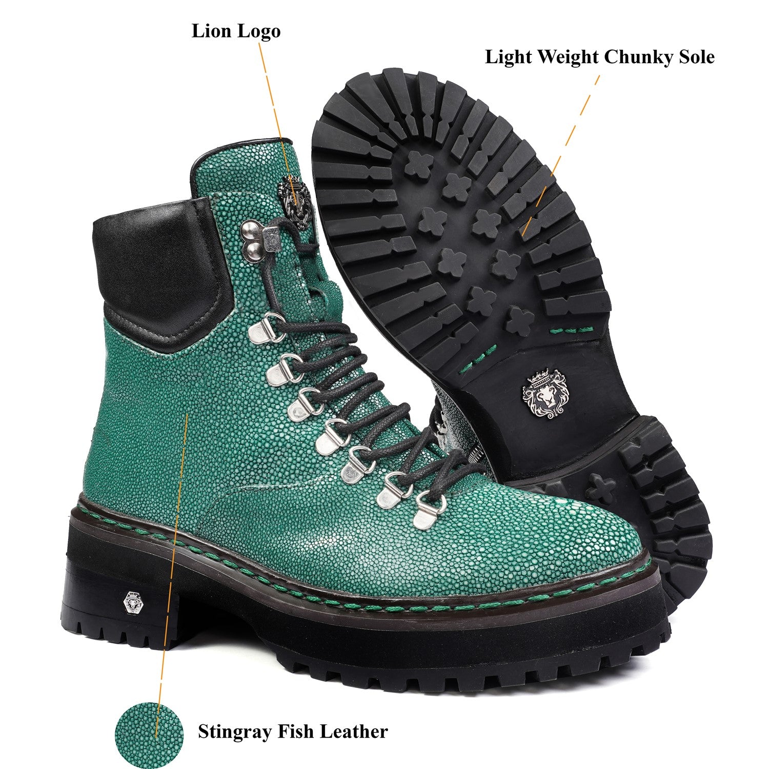 Chunky Boot With Stingray Fish Exotic Green Leather