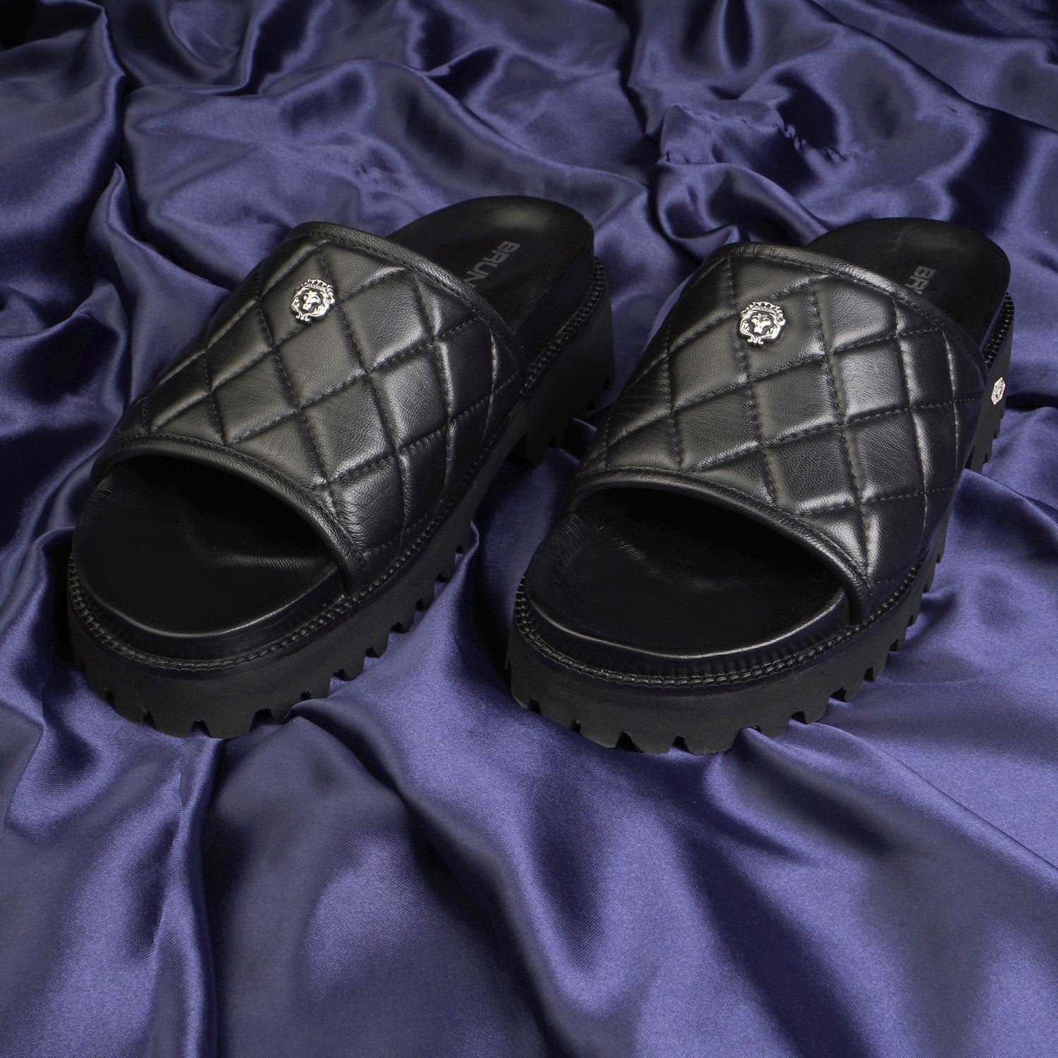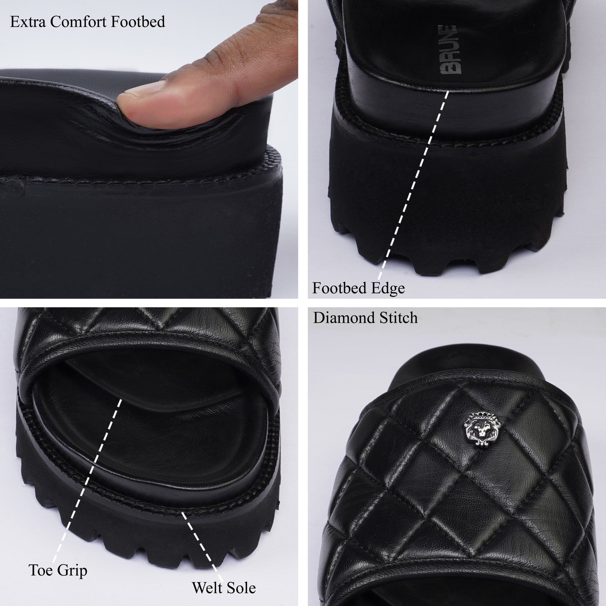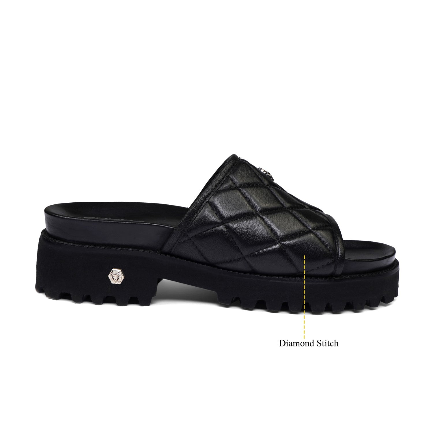 Black Diamond Stitched Super Chunky Slippers By Brune & Bareskin