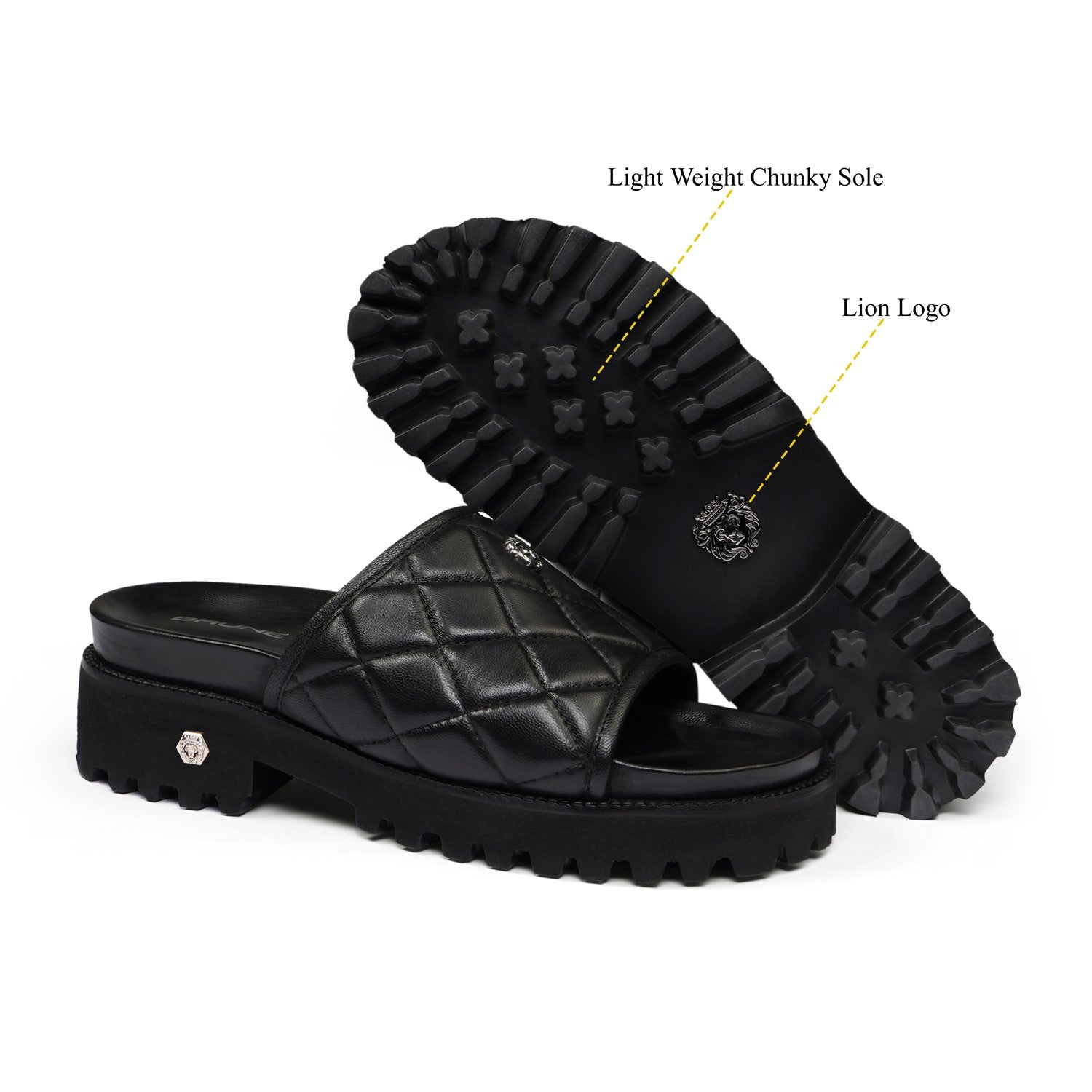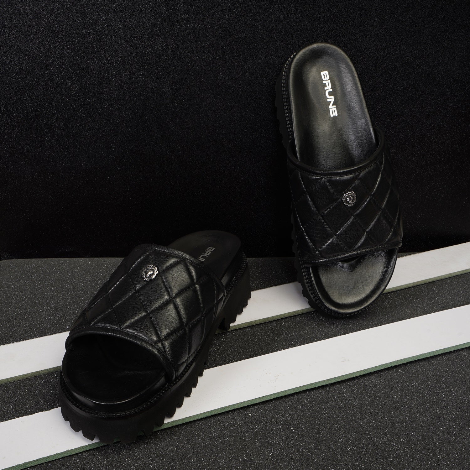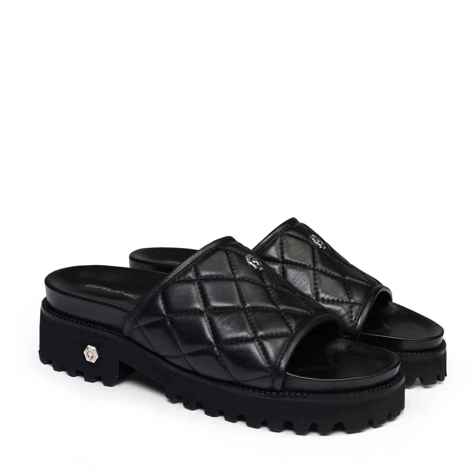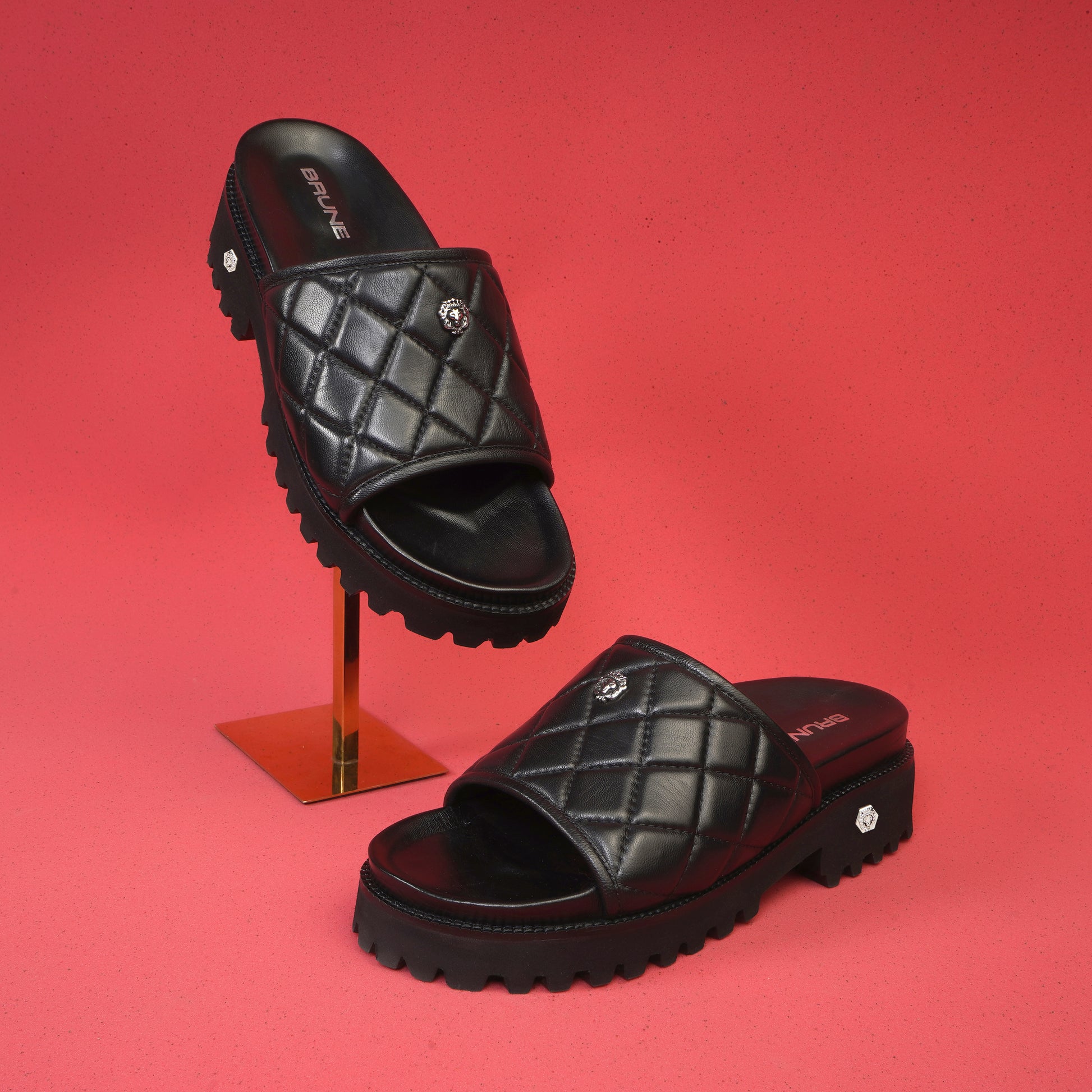 Black Diamond Stitched Super Chunky Slippers By Brune & Bareskin
