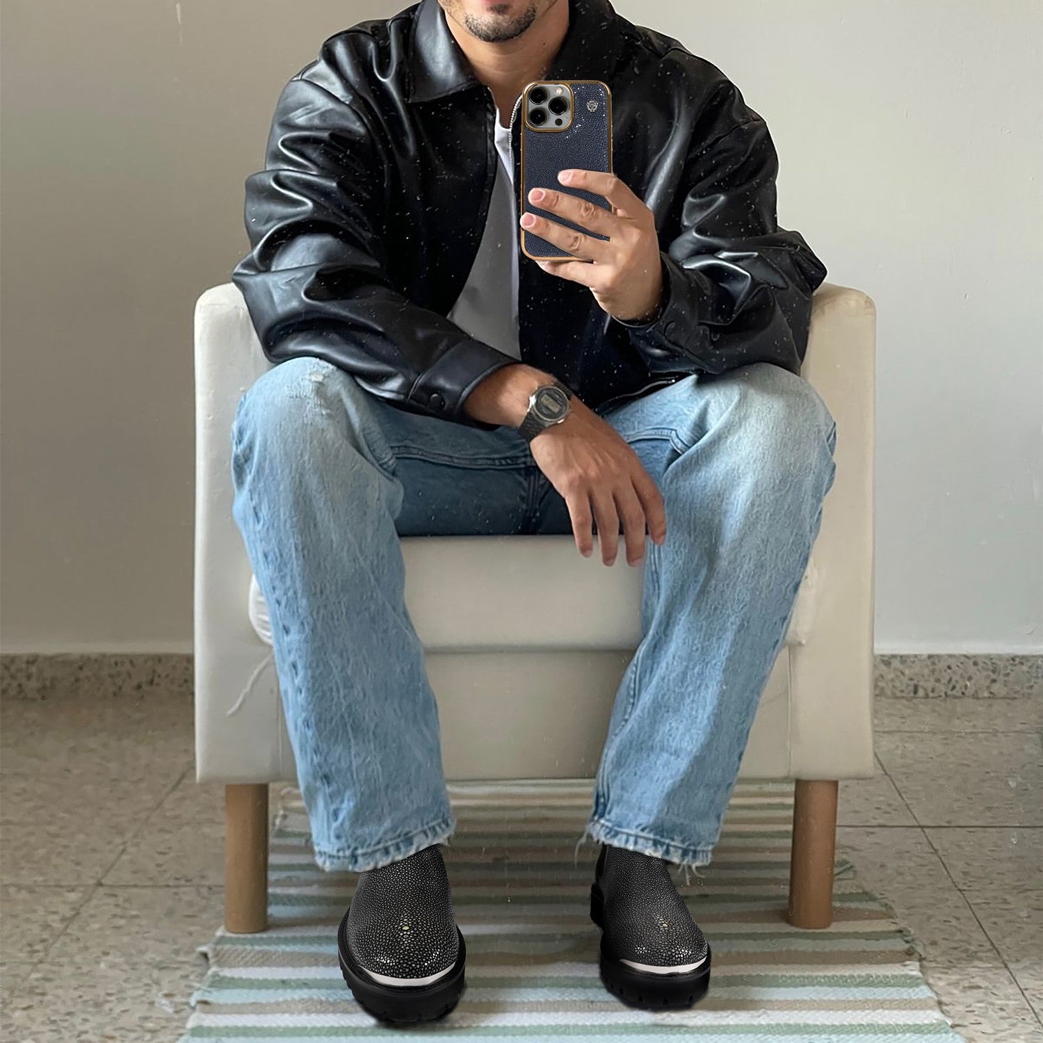 Versatility: Whether you're attending a formal event or dressing up for a special occasion, these stingray fish leather boots are the perfect choice. The classic metal plate design and attention to detail make them versatile enough to complement various outfits, adding a touch of luxury to your overall look.