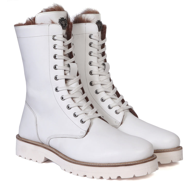 Perfect for all your outings, these Chunky Sole High Ankle Boots in black leather from Brune & Bareskin are the epitome of streetwear style. With a luxurious patina finish, genuine leather construction, and elegant lace-up fit, these high ankle length shoes are both premium quality and stylish. The rubberized white chunky outer sole and gun metal lion logo add a quirky touch. They are easy to team with casual trousers as they blend well with the classic fabrics as well as the modern blended denim pants, slacks and trousers.