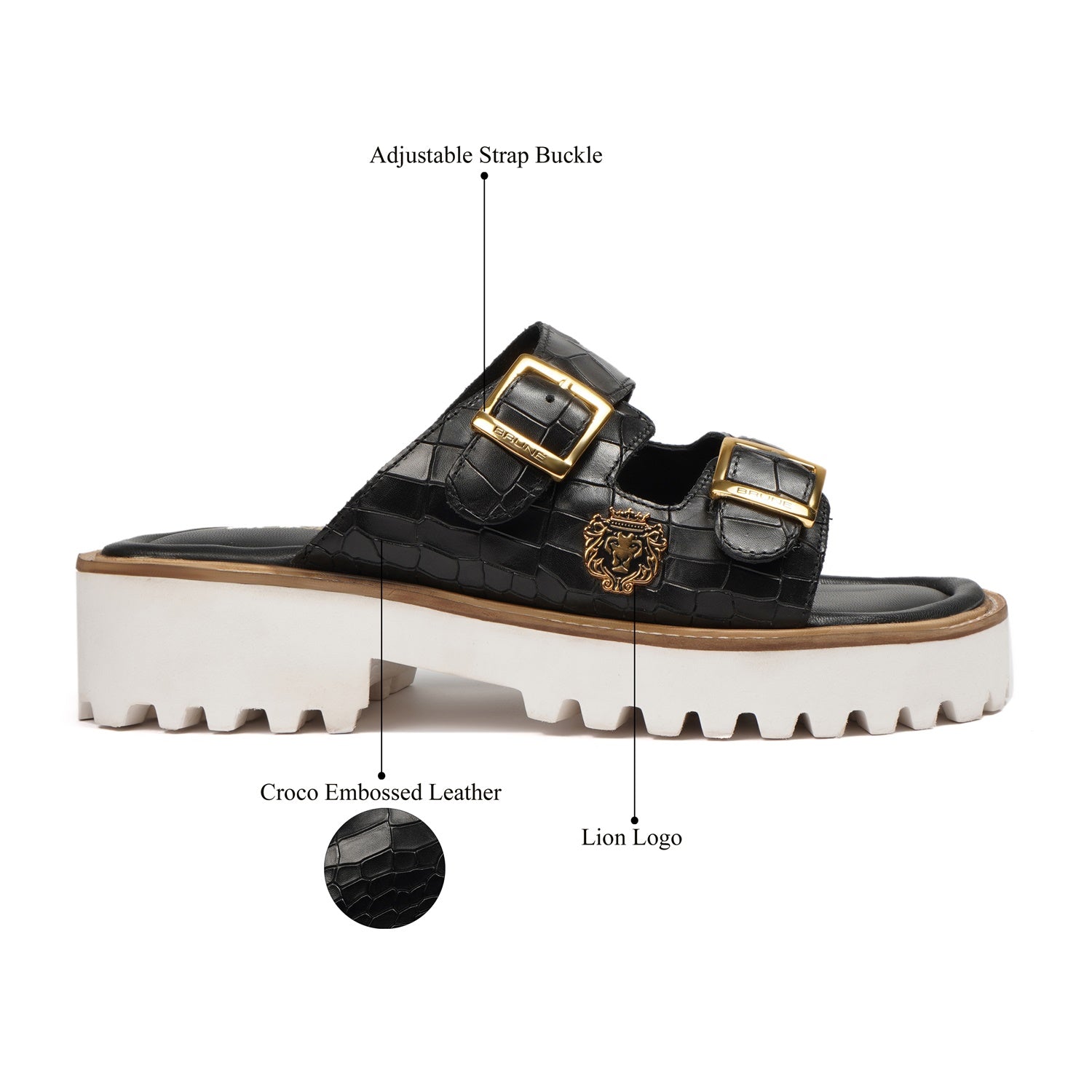 The wider straps Design with BRUNE & BARESKIN Lion Logo enhance the elegance further. Anti-Skid Rubber outer sole ensures the perfect walking grip. The ultra-lightweight Lug sole makes it ideal footwear for all-day-long wearability and the thick high lightweight sole complements the comprehensive look.