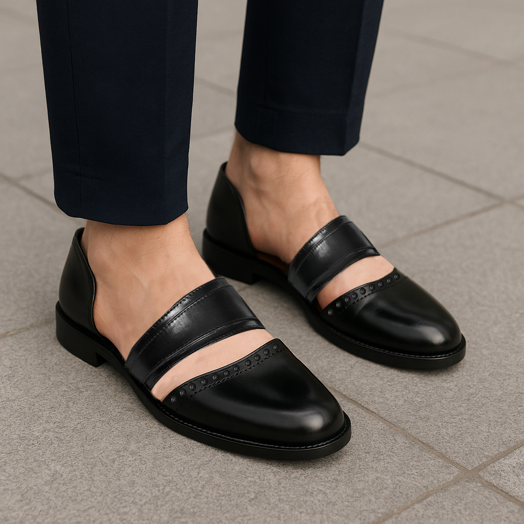 Experience comfort and style with our Classic Black Peshawari Sandals. Hand crafted with premium quality genuine leather, these sandals feature a cushioned inner sole and durable patterned outer leather sole for long-lasting support with every step. Whether worn with traditional attire or smart casuals, these stylish and comfortable peshawari sandals from Brune & Bareskin will add a unique classic look to your outfit.
