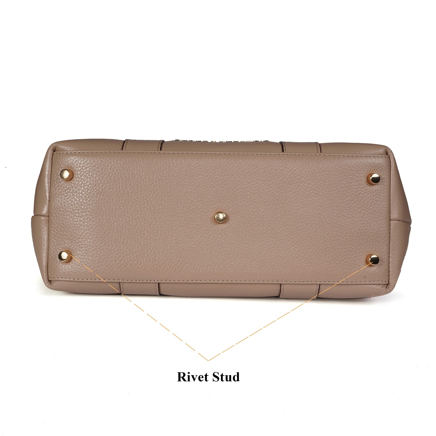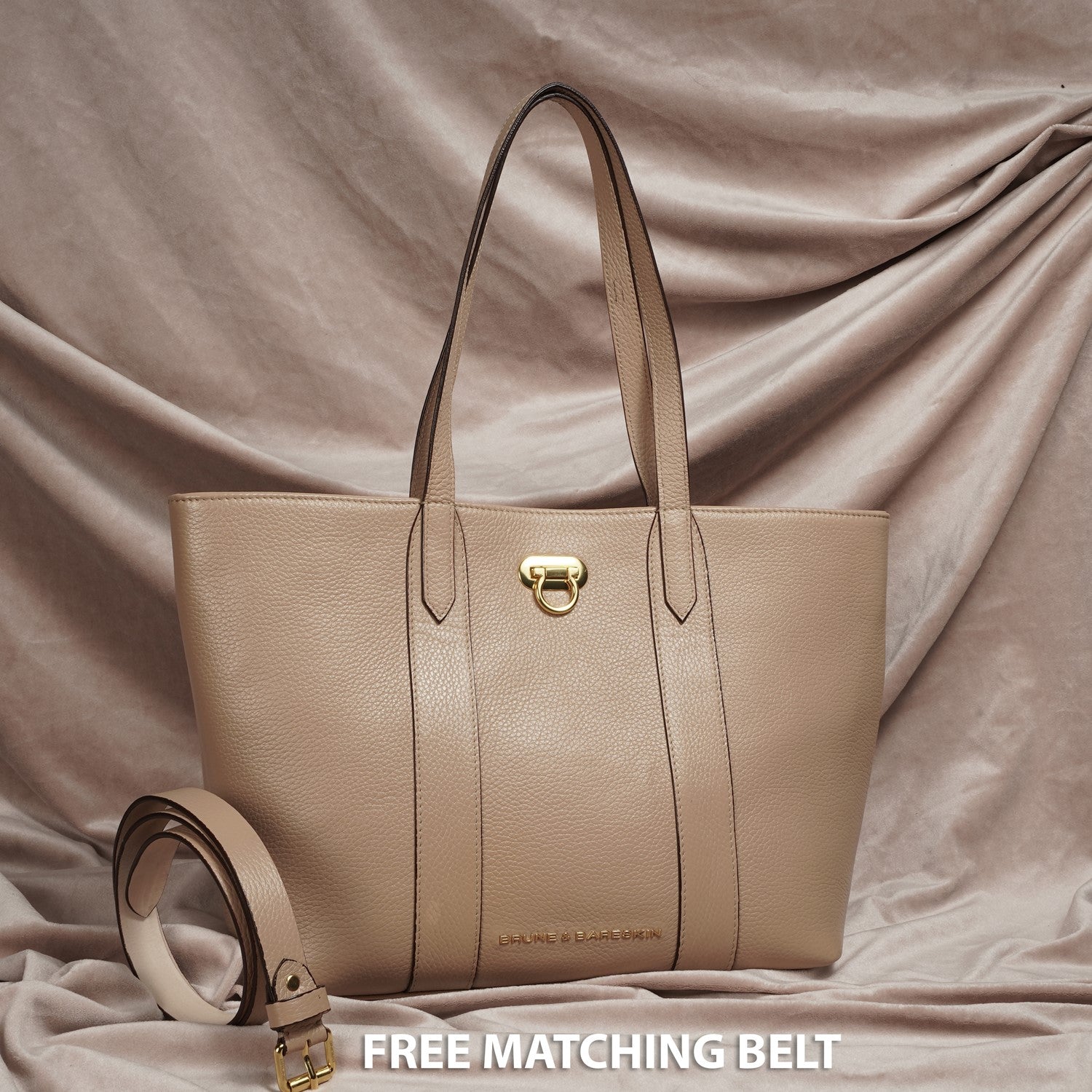 Classic Charm Beige Leather Handbag with Clasp Turn-Lock Closure (Free Matching Belt)
